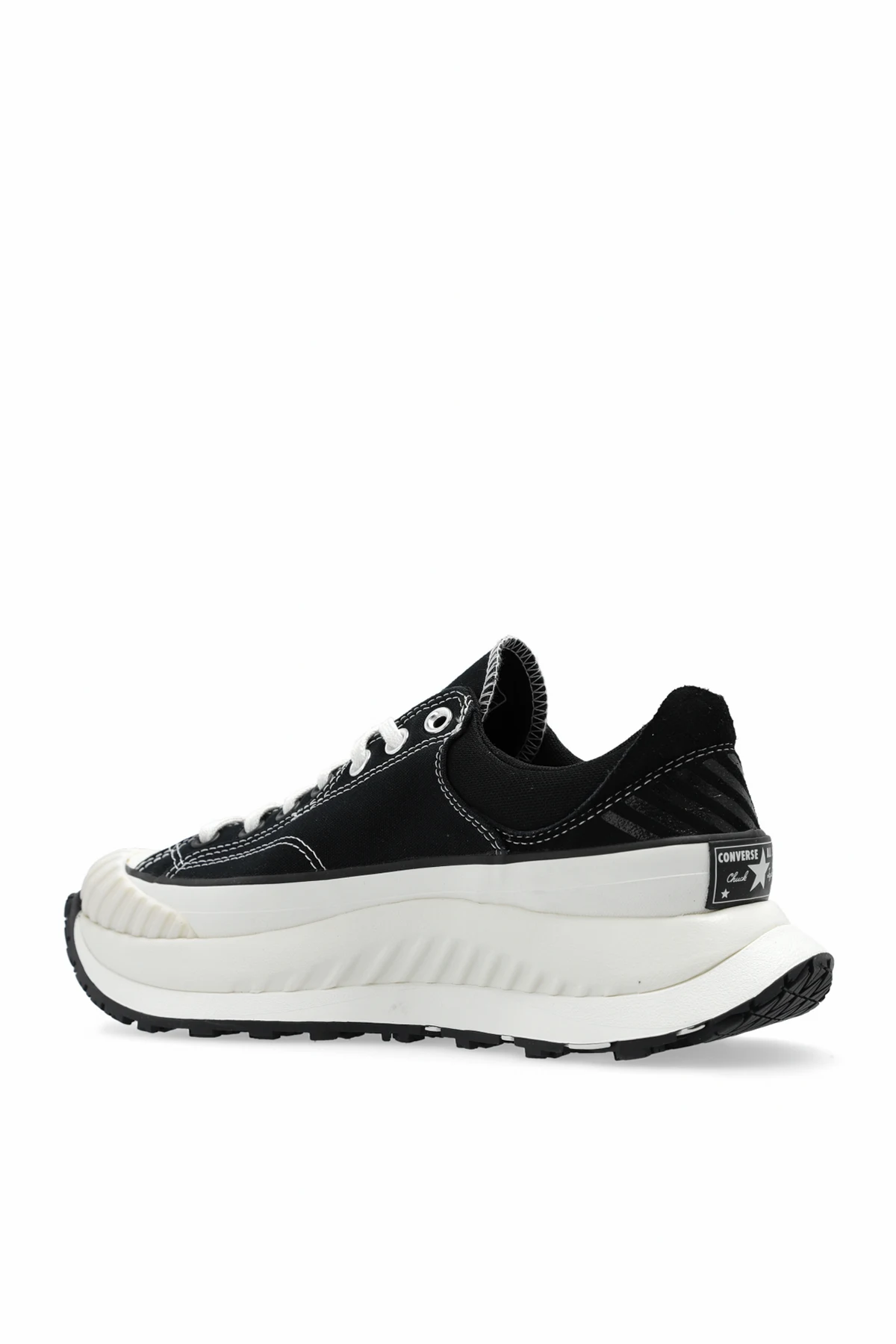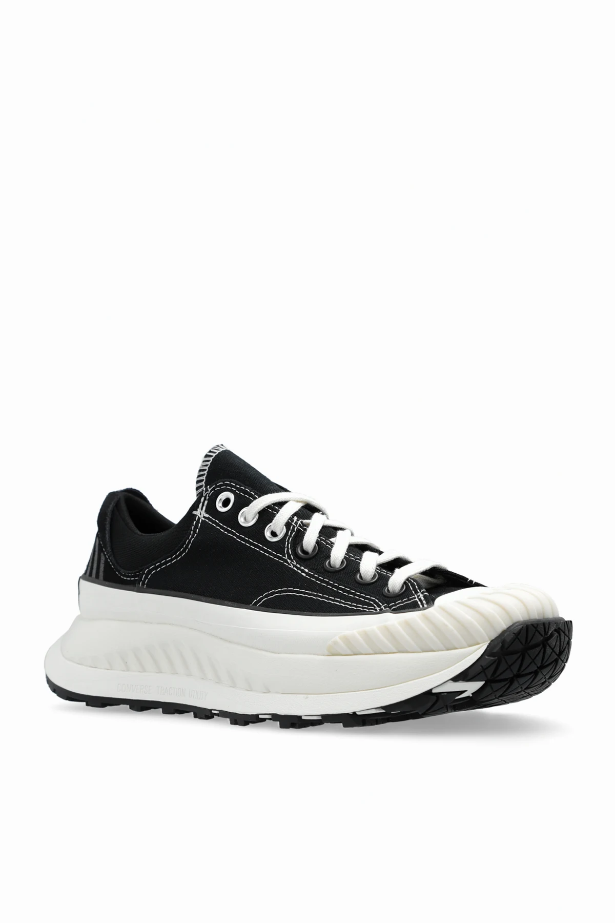 Black and white ‘Chuck 70 AT-CX’ lace-up sneakers from Converse. Made from leather and fabric. The upper and tongue made of 50% recycled cotton are connected with a high, thickened CX foam midsole and recycled insole to provide comfort. Classic Chuck 70 elements like the ankle star patch and cotton laces give the model an iconic look, while the massive black outsole with a diamond pattern ensures traction.