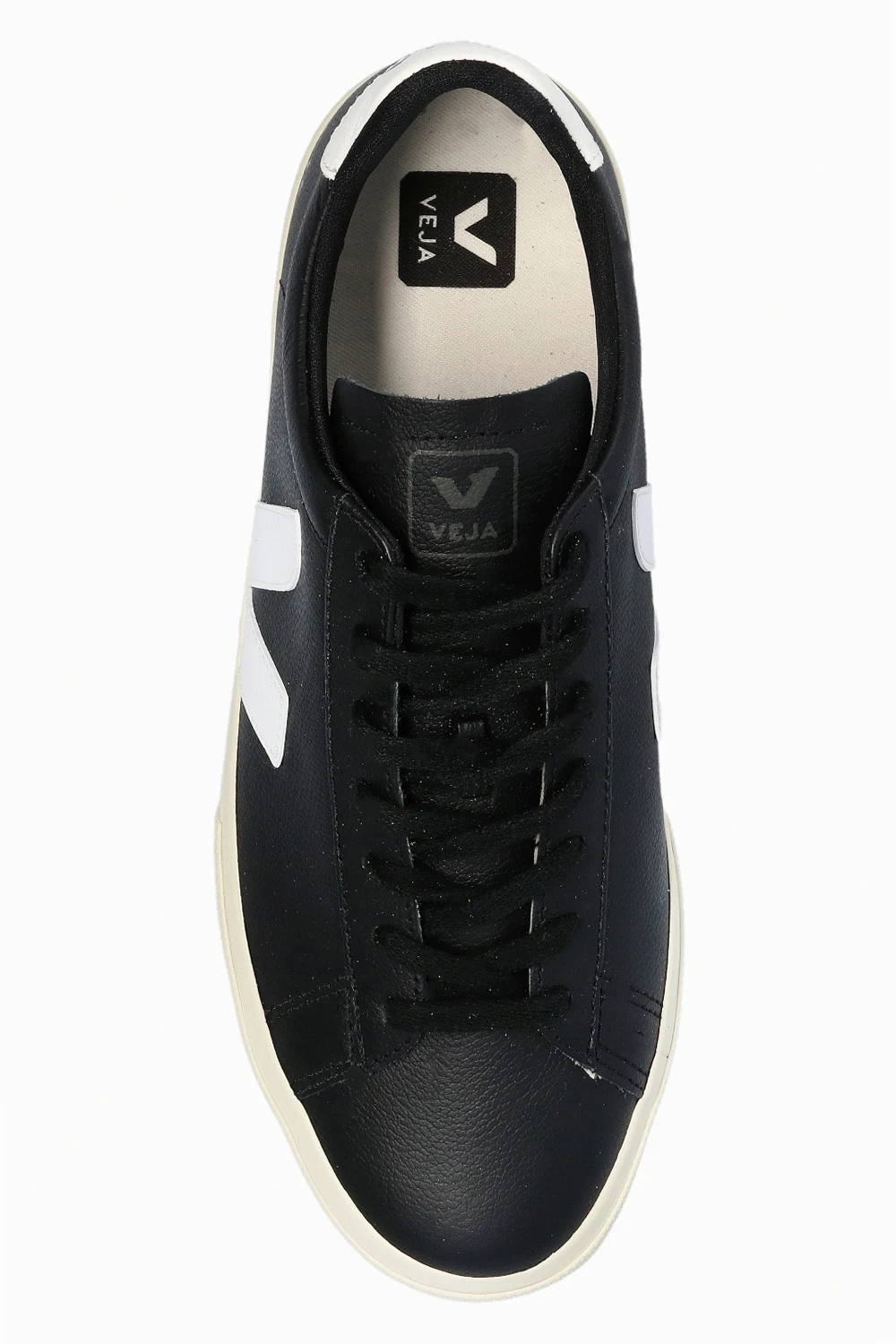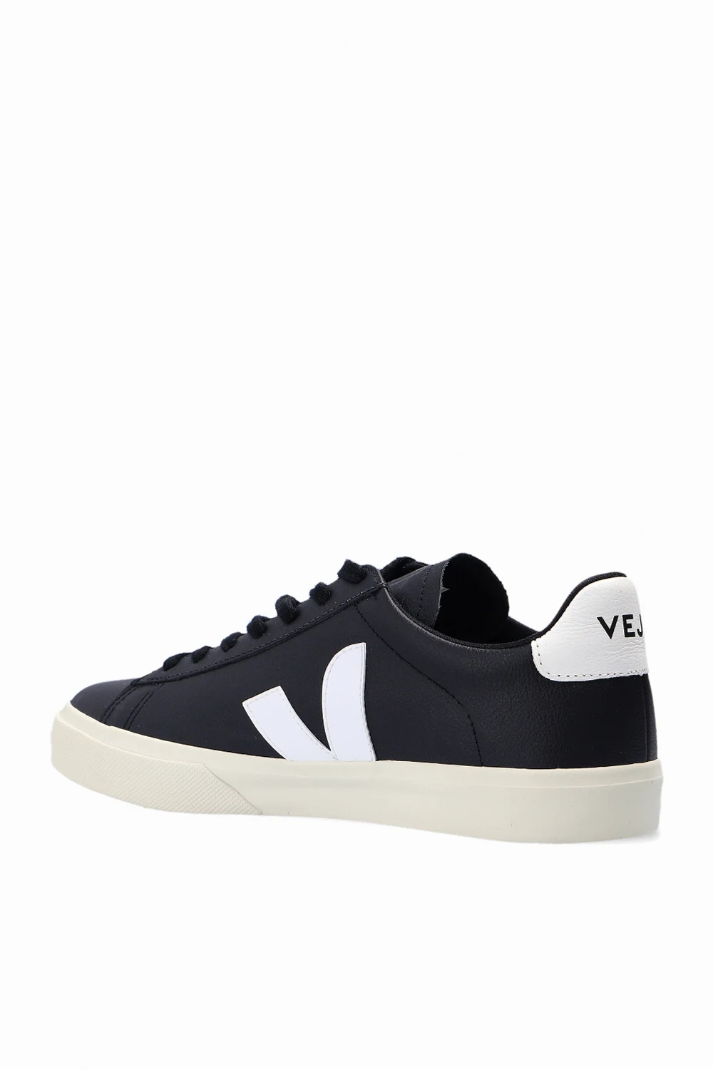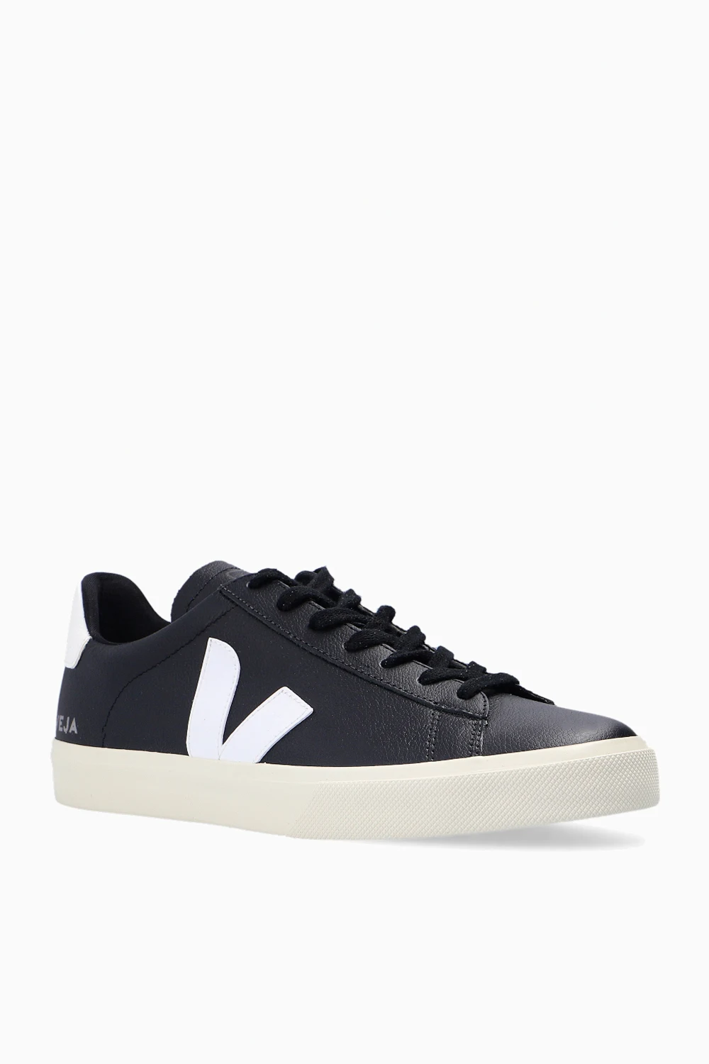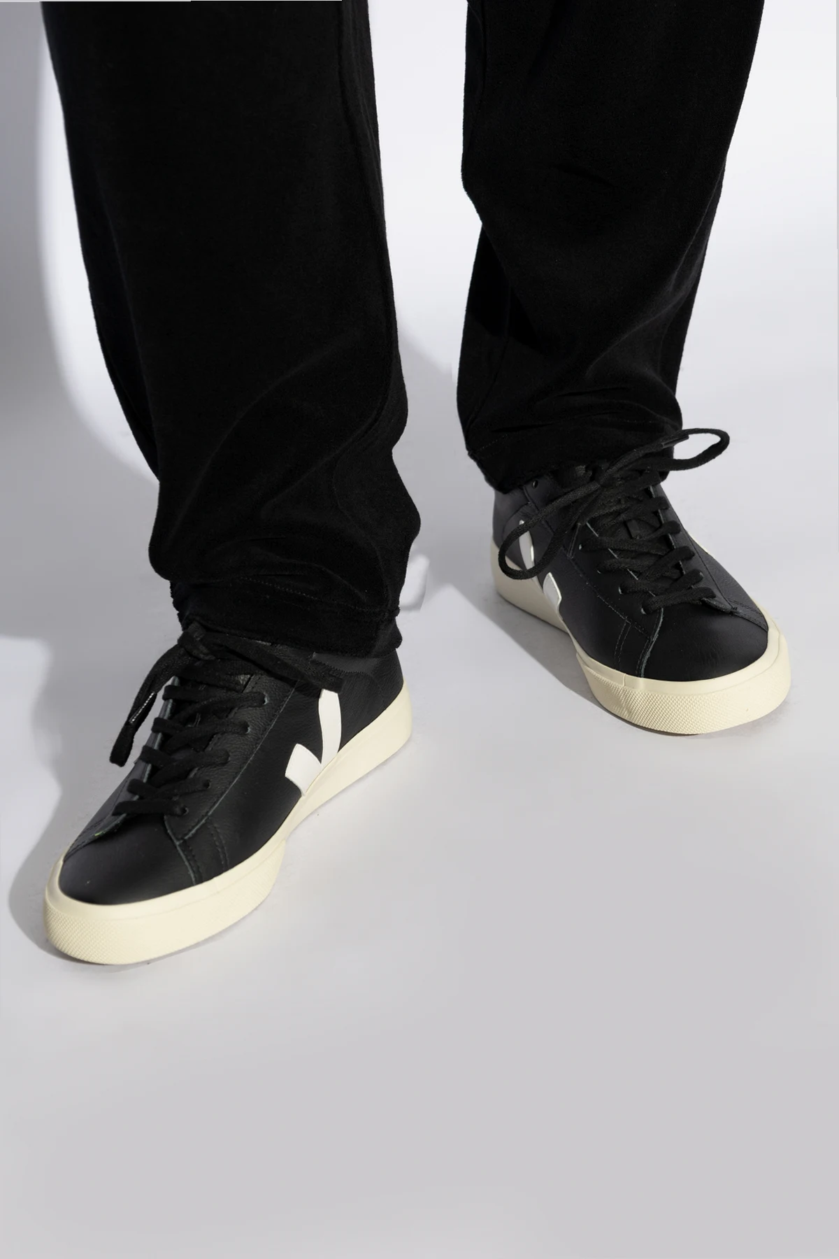 Black ‘Campo’ sneakers from Veja. Crafted from chrome-free leather, this lace-up design features rubber logo patch in white and a cream rubber sole.