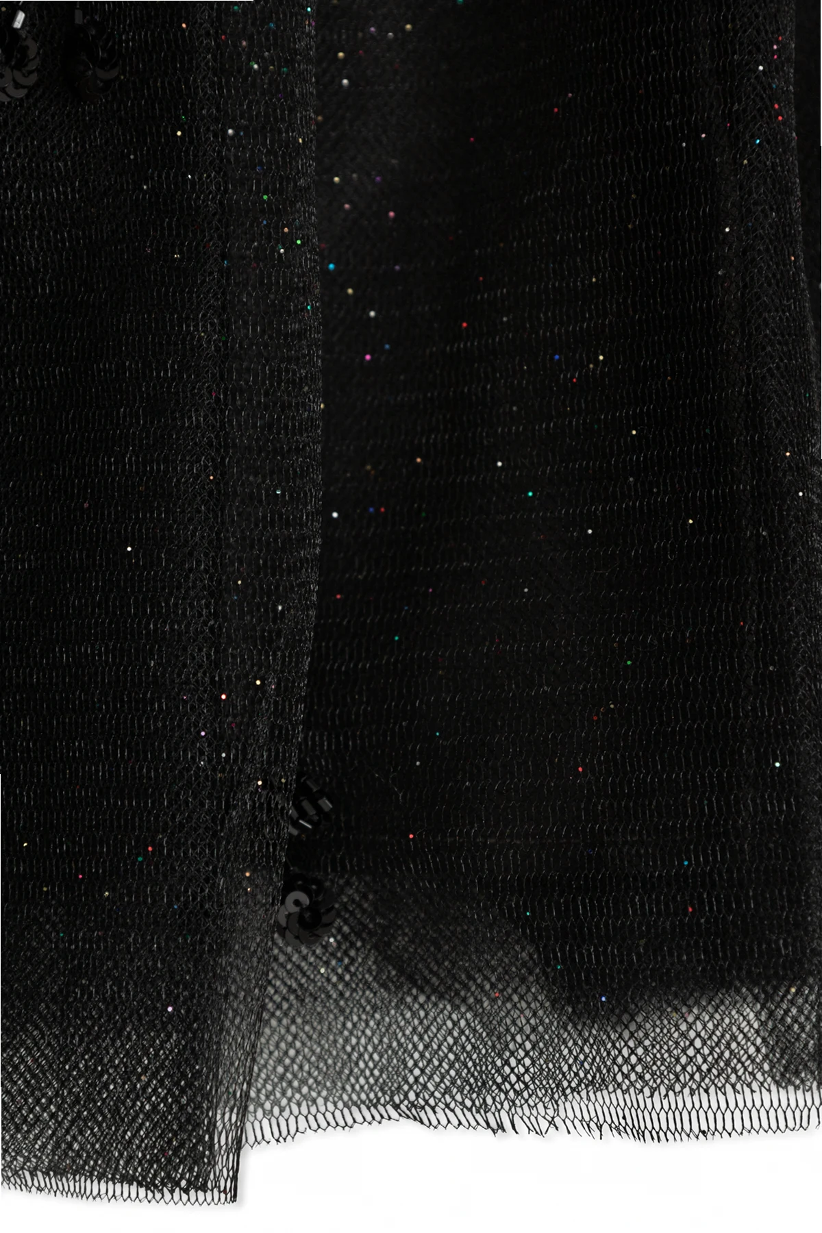 Die ausgestellte Form verleiht ihm Volumen, und der mehrschichtige Tüll schafft ein Gefühl von Leichtigkeit und Zartheit. Einzigartige, glänzende Elemente auf dem Material in Form von kleinen Pailletten oder Glitzer fügen Glanz hinzu und ziehen mit ihrem effektvollen Funkeln die Blicke auf sich.