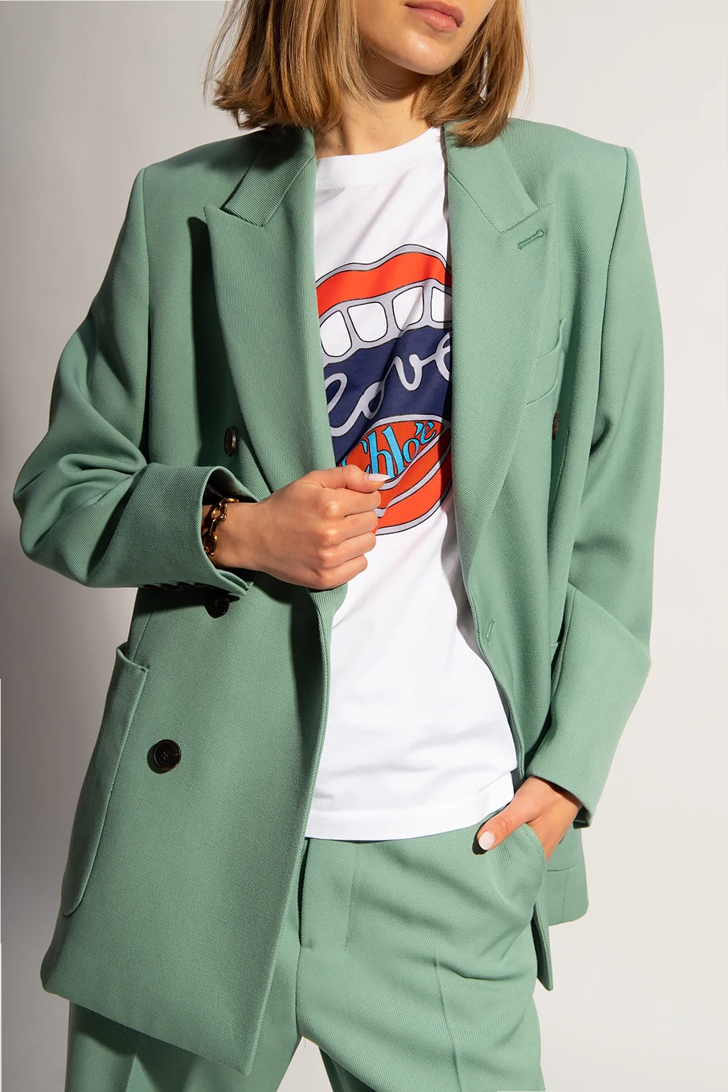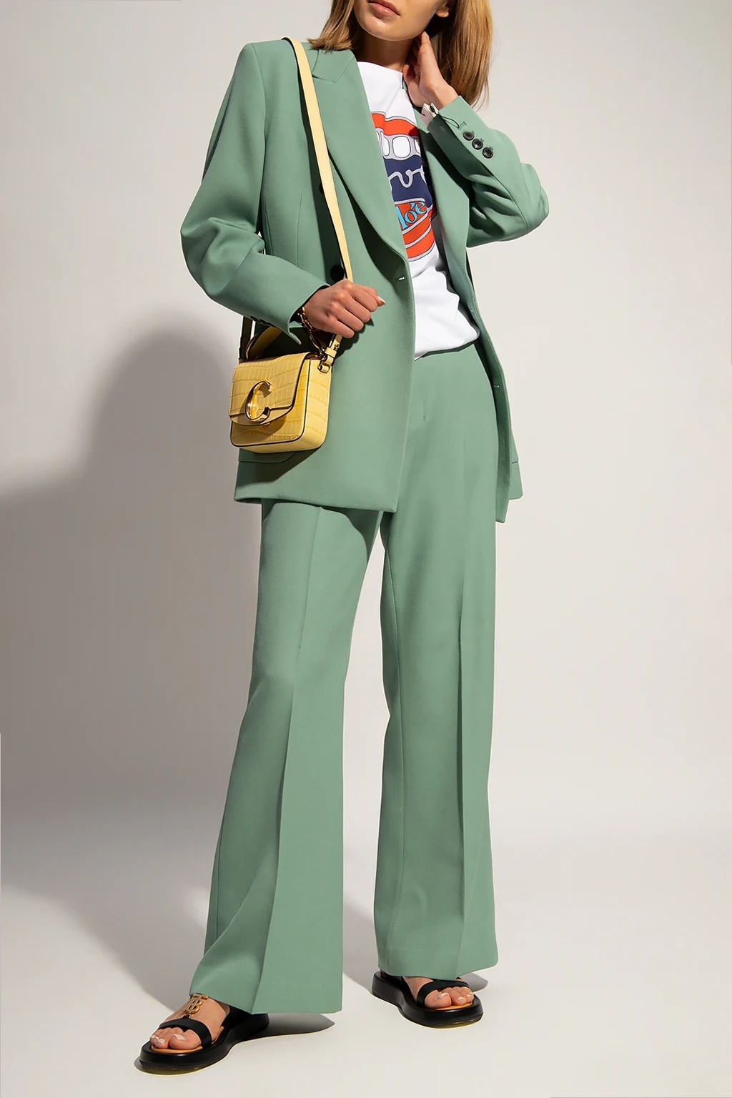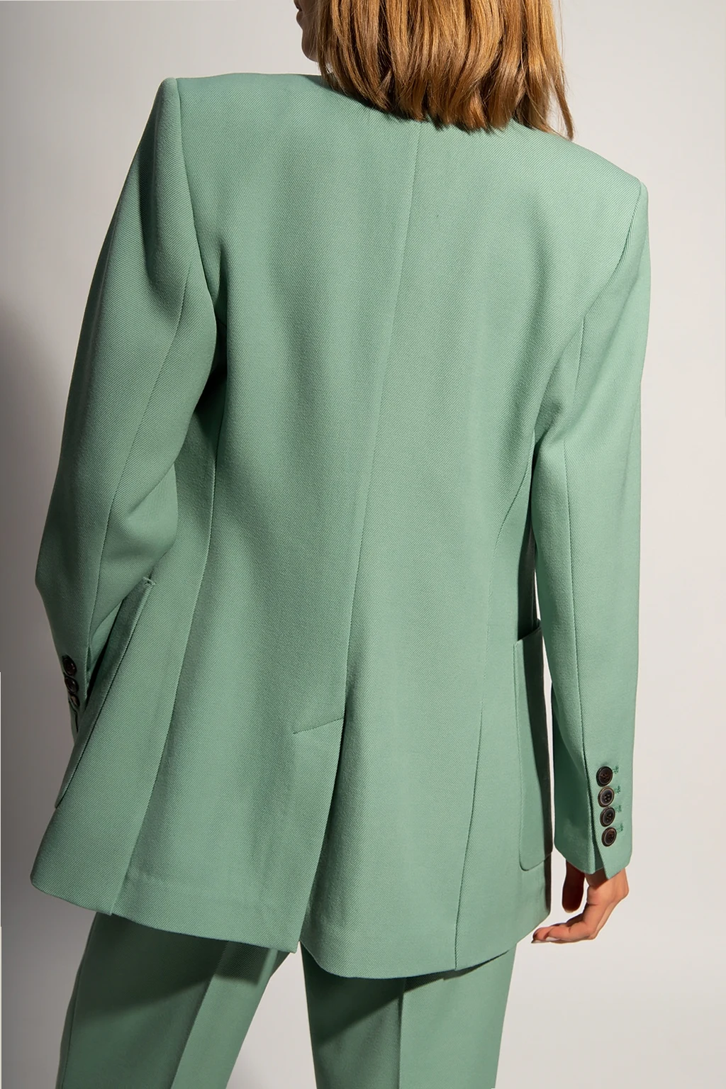 Green blazer from Ami Alexandre Mattiussi. Crafted from wool, this item fastens via buttons and features notched lapels, three welt pockets on the front and a single vent on the back.