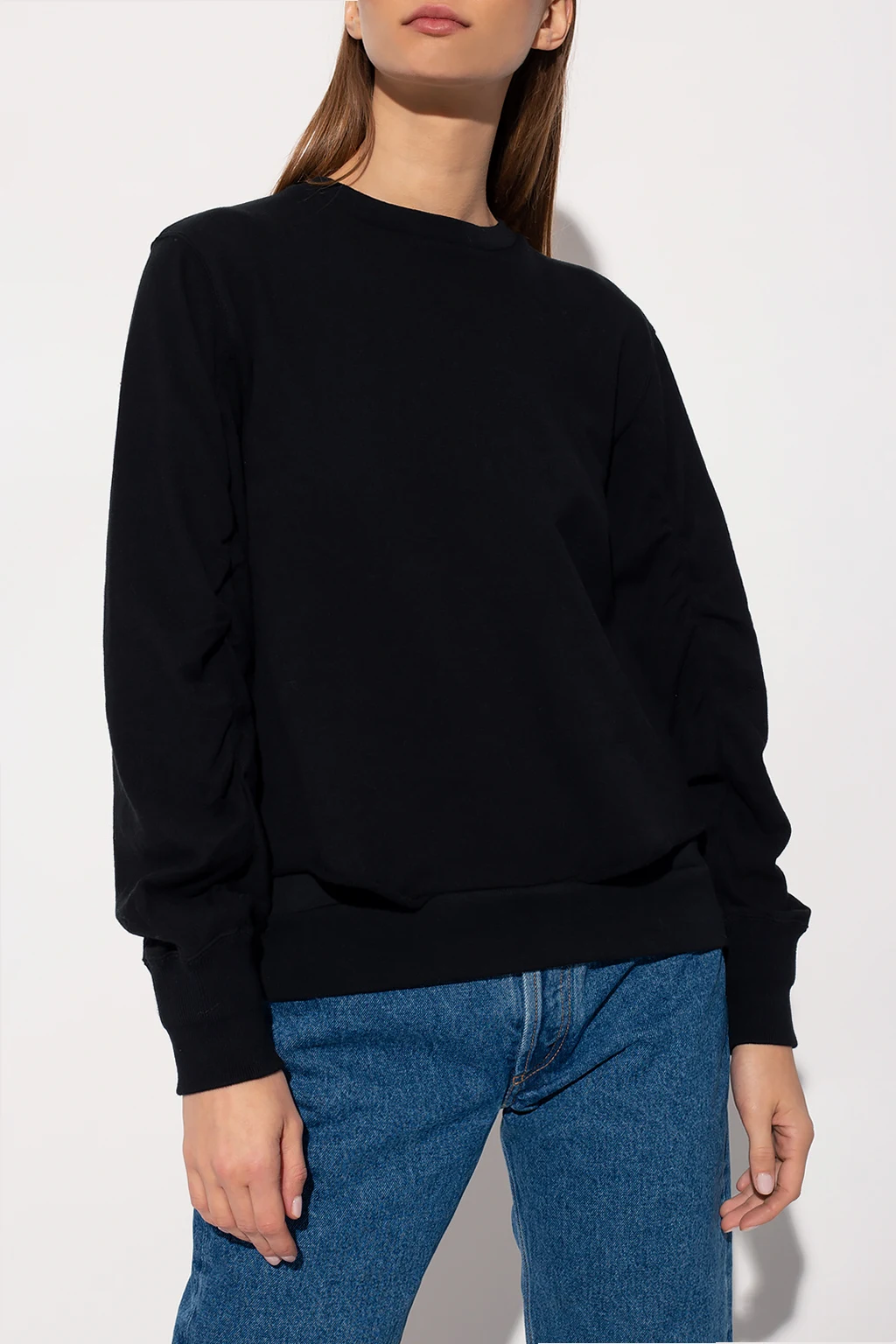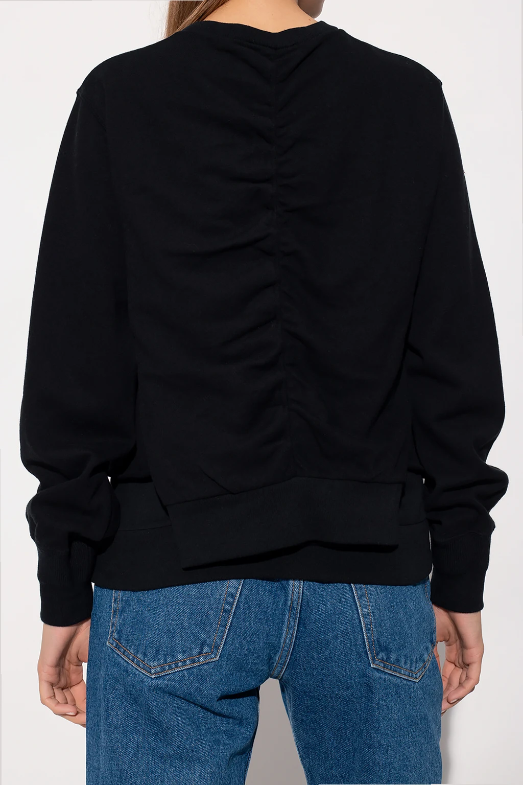 Black crewneck sweatshirt from Undercover. Made of cotton, this garment is enriched by a crease effect, stitching details and ribbed trims at the neck, hem and cuffs.