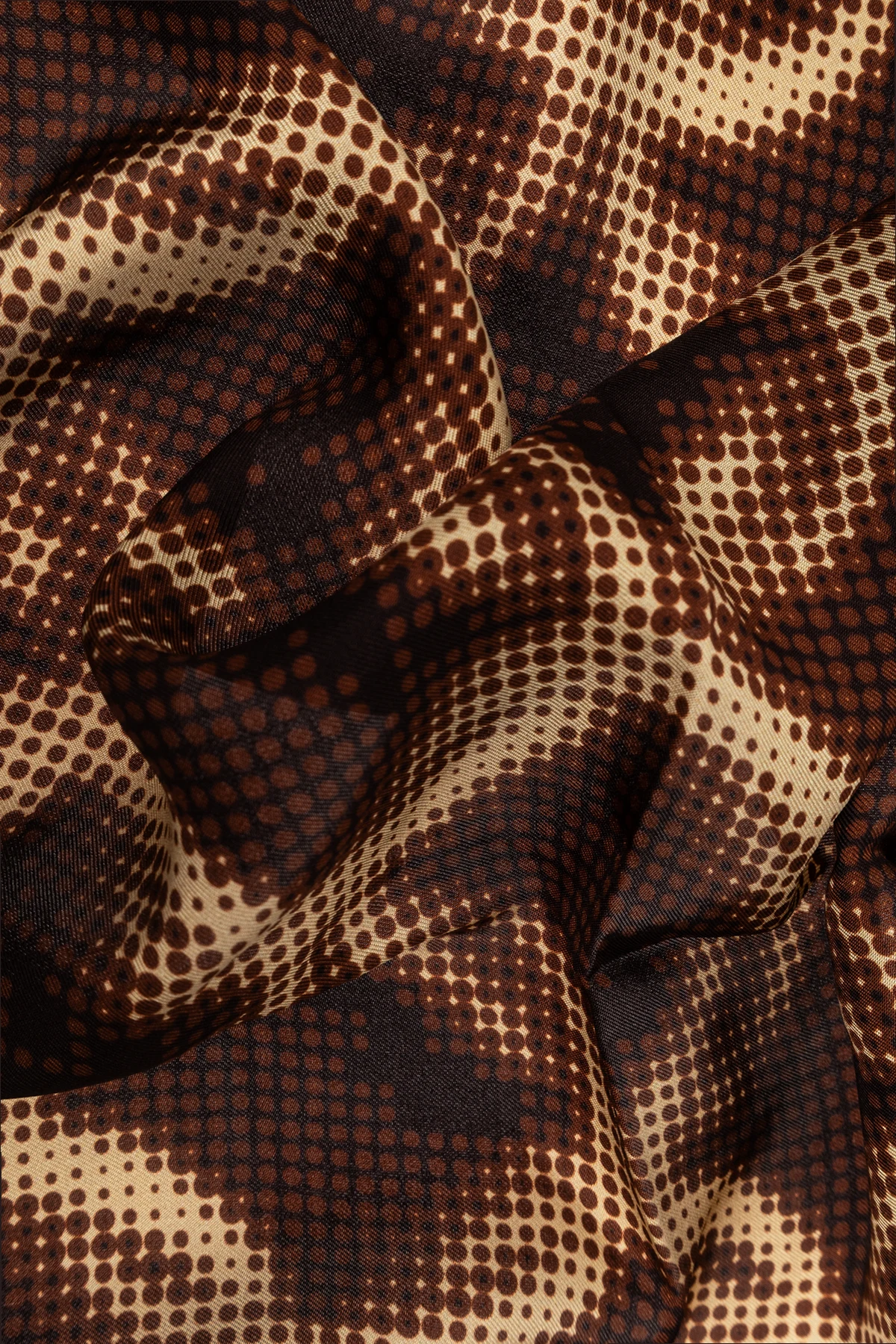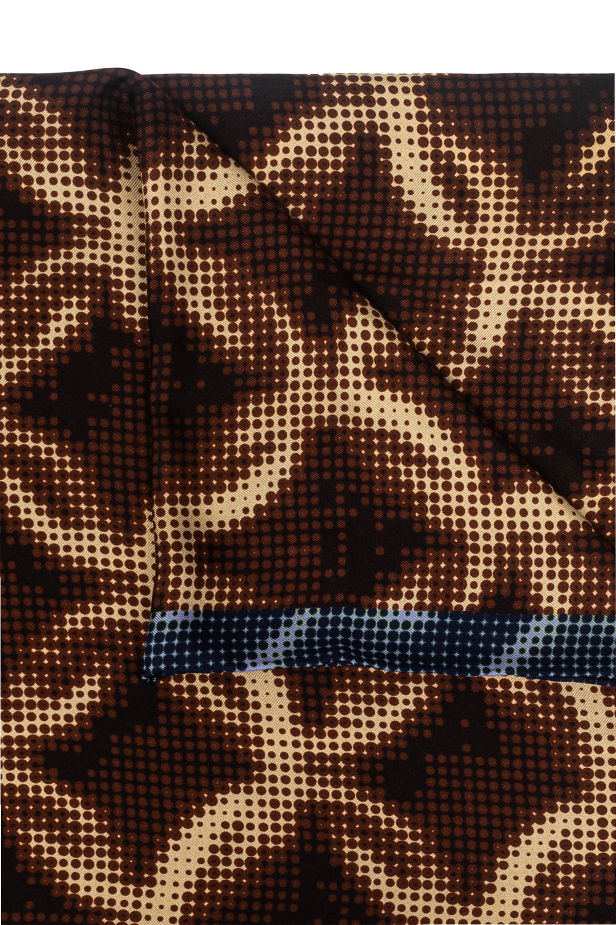 Wir präsentieren das seidene Tuch von Dries Van Noten , einem der führenden Designer der zeitgenössischen Mode und Mitglied der renommierten Antwerp Six. Dieses exklusive Tuch vereint eine klassische, quadratische Form mit einem raffinierten Muster und einer eleganten Farbgestaltung.