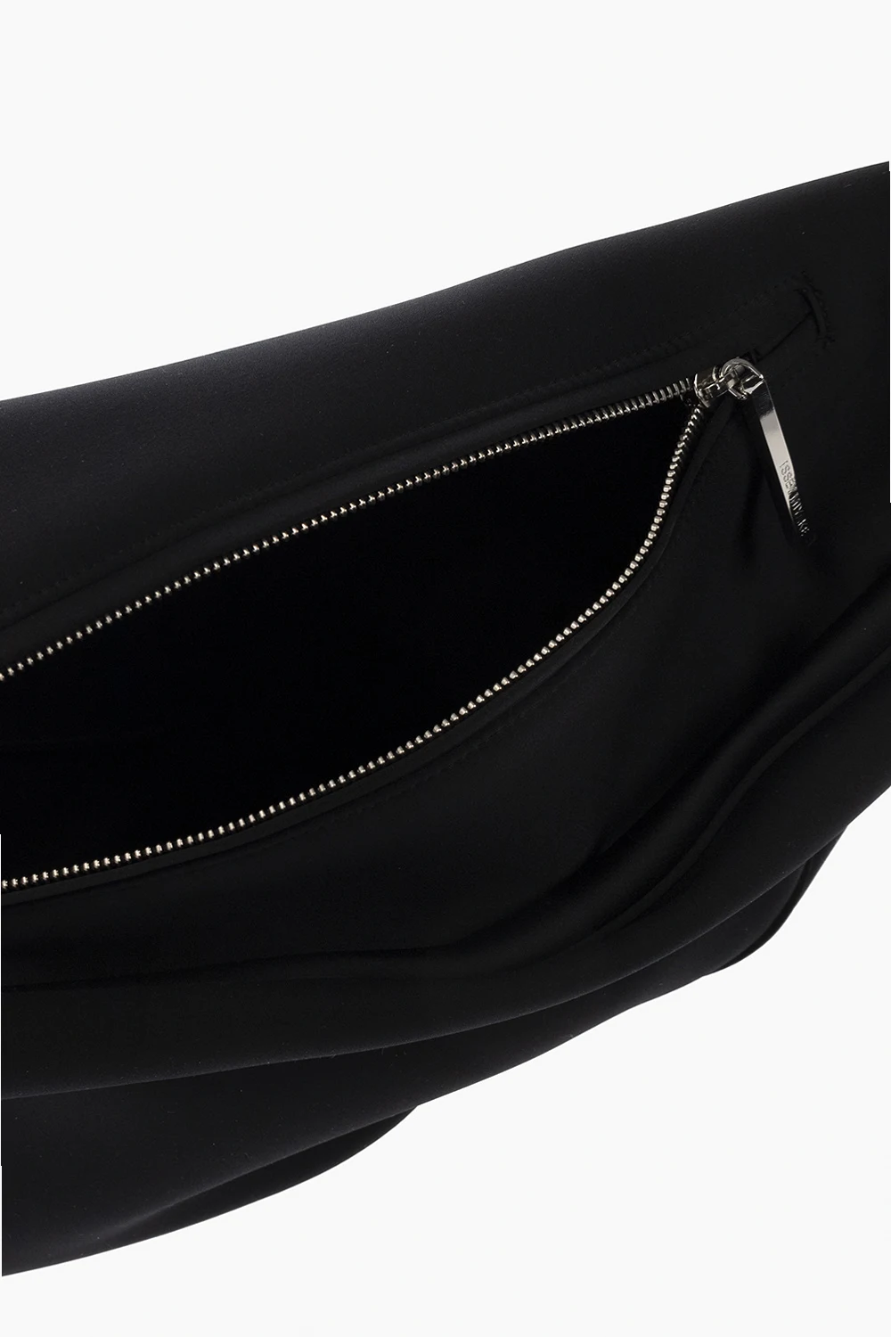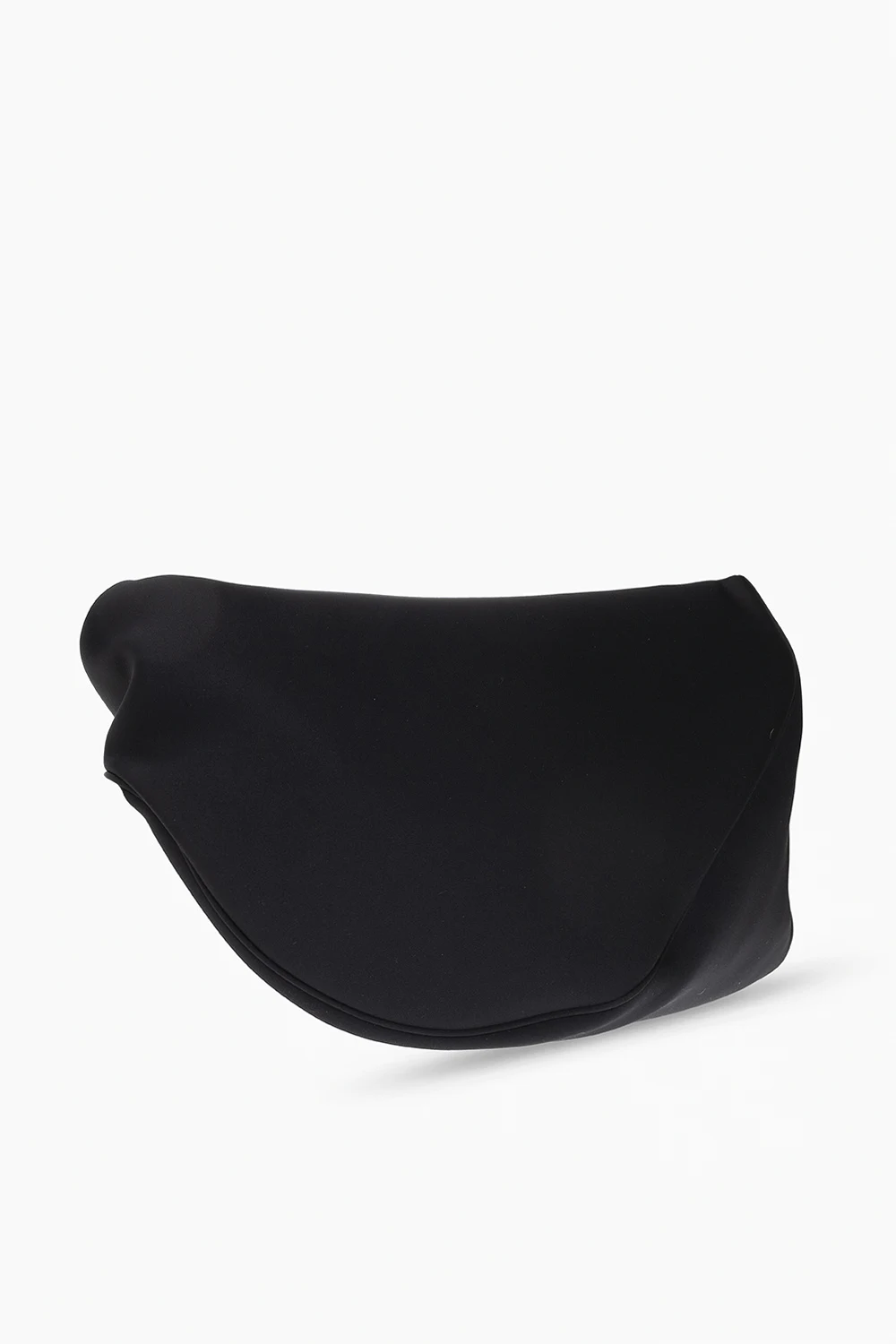 Black ‘Torso’ shoulder bag from Issey Miyake. Crafted from satin fabric, this design fastens with a zipper and features an adjustable strap, silver-tone metal hardware and one internal compartment with a zip pocket.