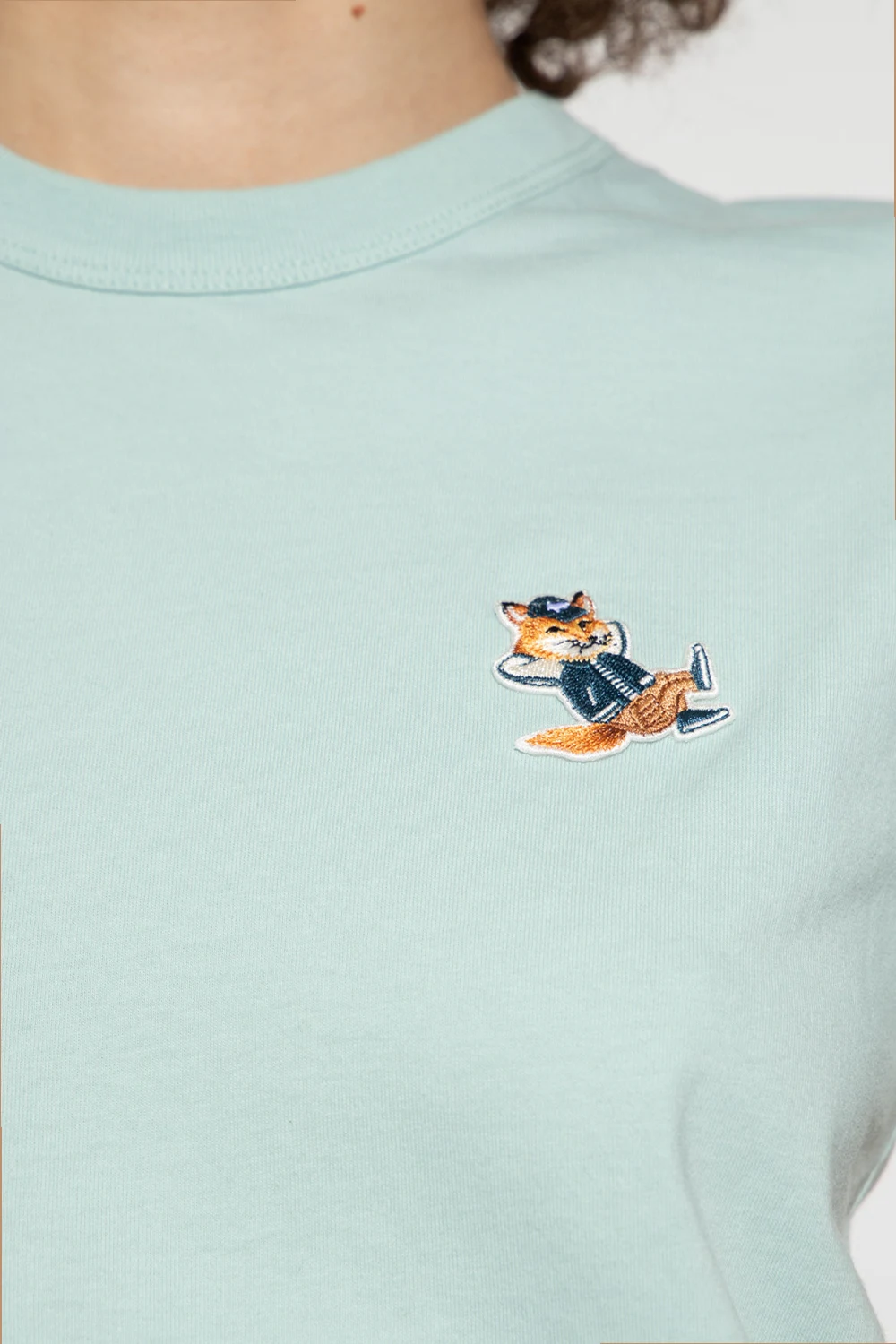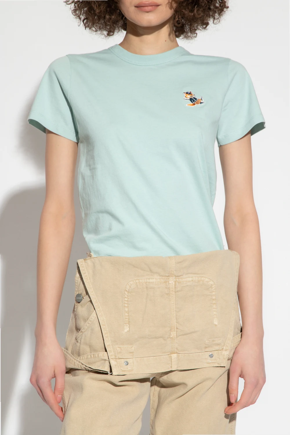 Blue crewneck T-shirt from Maison Kitsune. Crafted from cotton, this style features short sleeves, an elasticated collar and a logo patch for brand recognition.