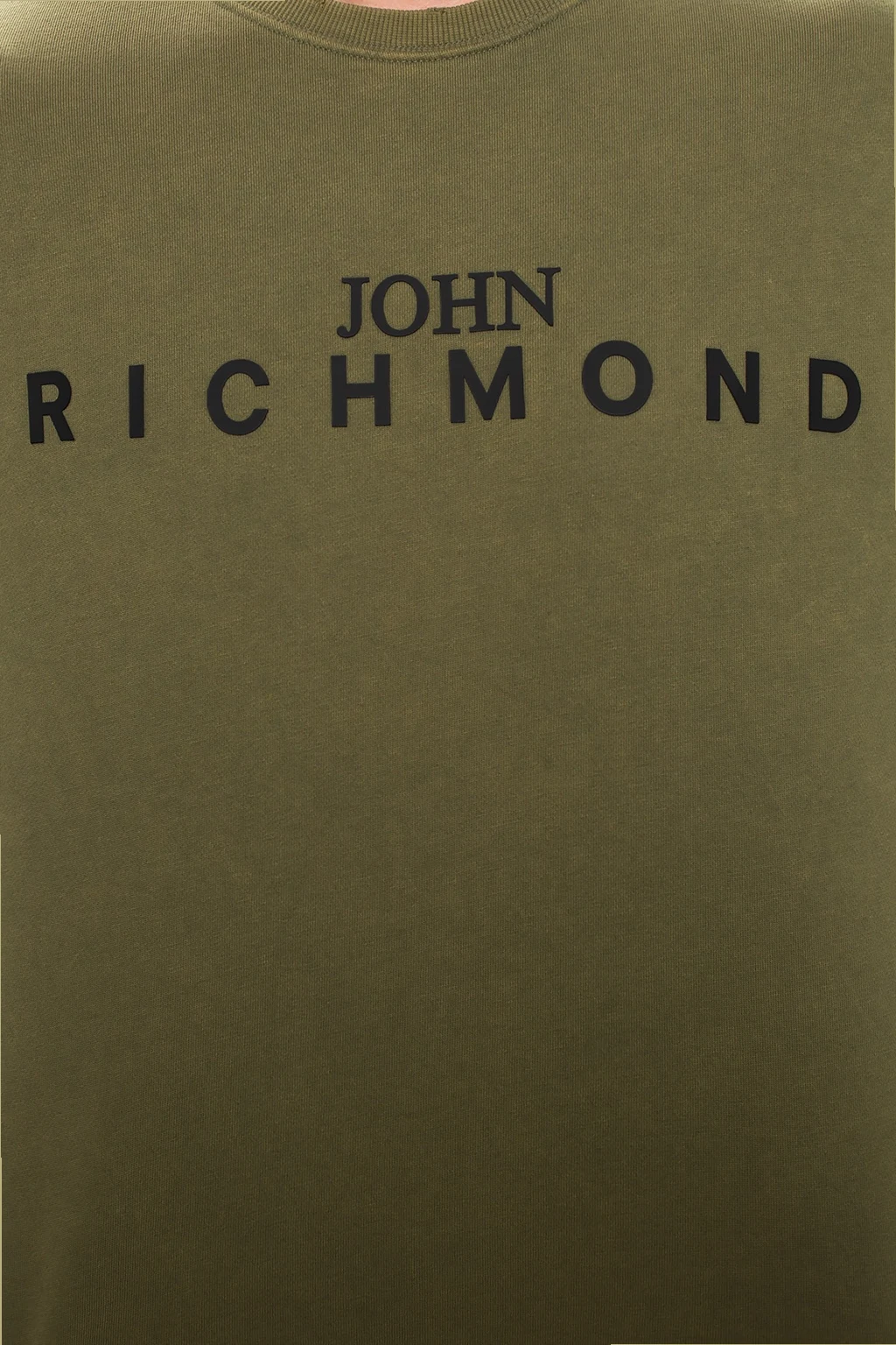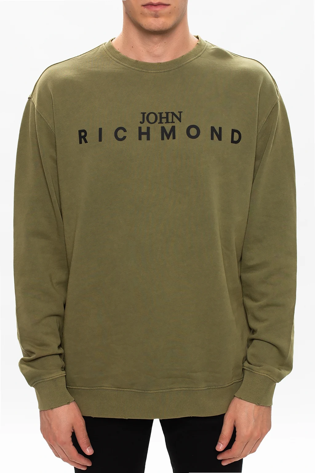 Green crewneck sweatshirt from John Richmond. Cut from distressed cotton jersey in regular fit, this style comes with a black rubberised logo appliqué and rib trims.