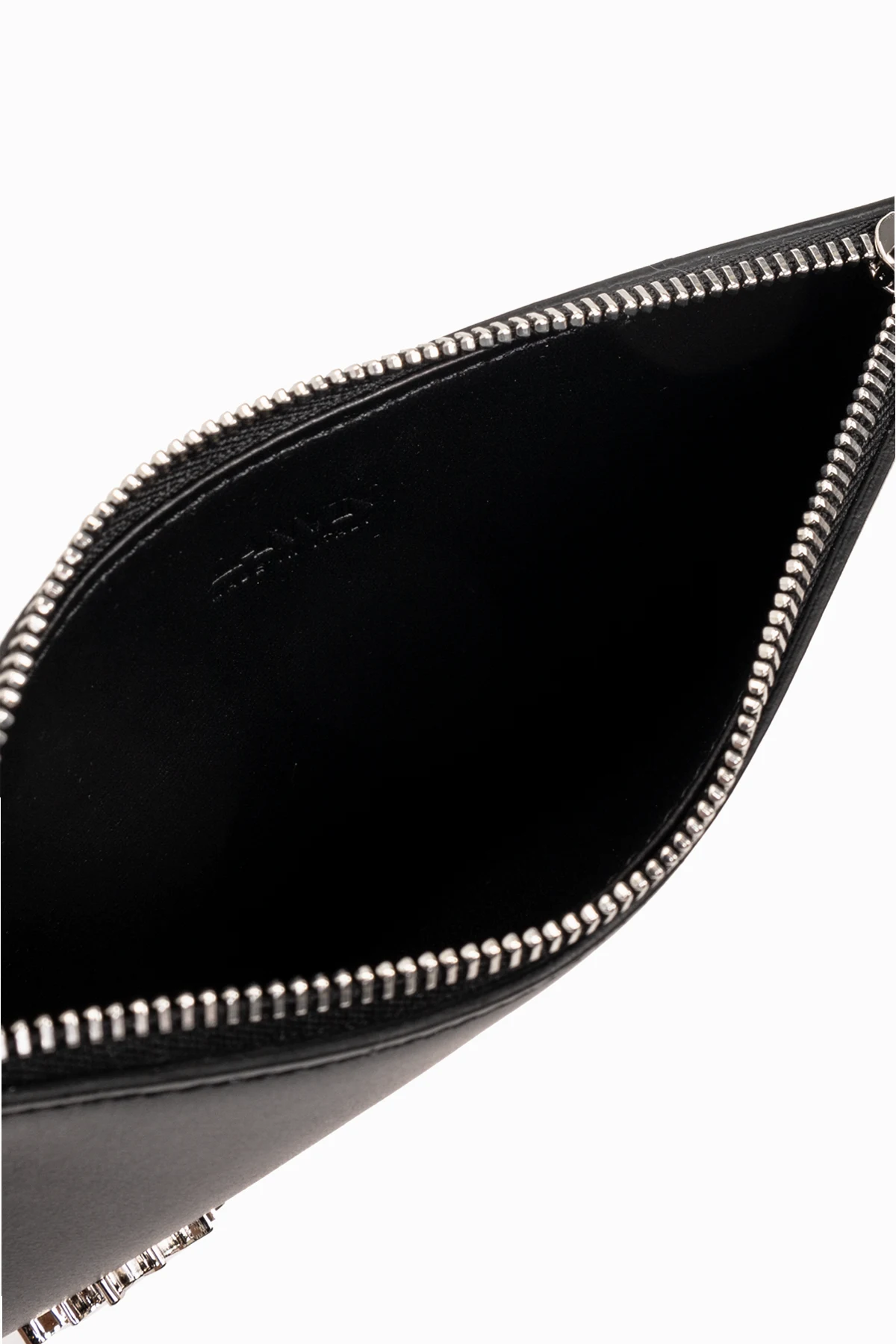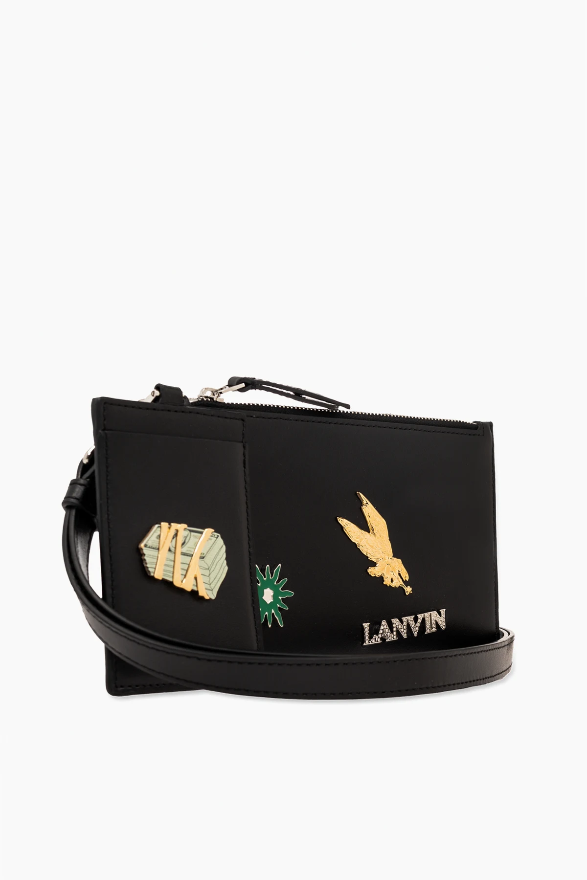 Das subtil auf der Vorderseite angebrachte LANVIN -Logo in Gold zieht den Blick auf sich und fügt der gesamten Komposition Prestige hinzu. Ein robuster, metallischer Reißverschluss garantiert die Sicherheit der aufbewahrten Gegenstände, während das innere Fach zusammen mit dem beiliegenden Kartenetui für Ordnung und leichten Zugang zu den wichtigsten Kleinigkeiten sorgt.