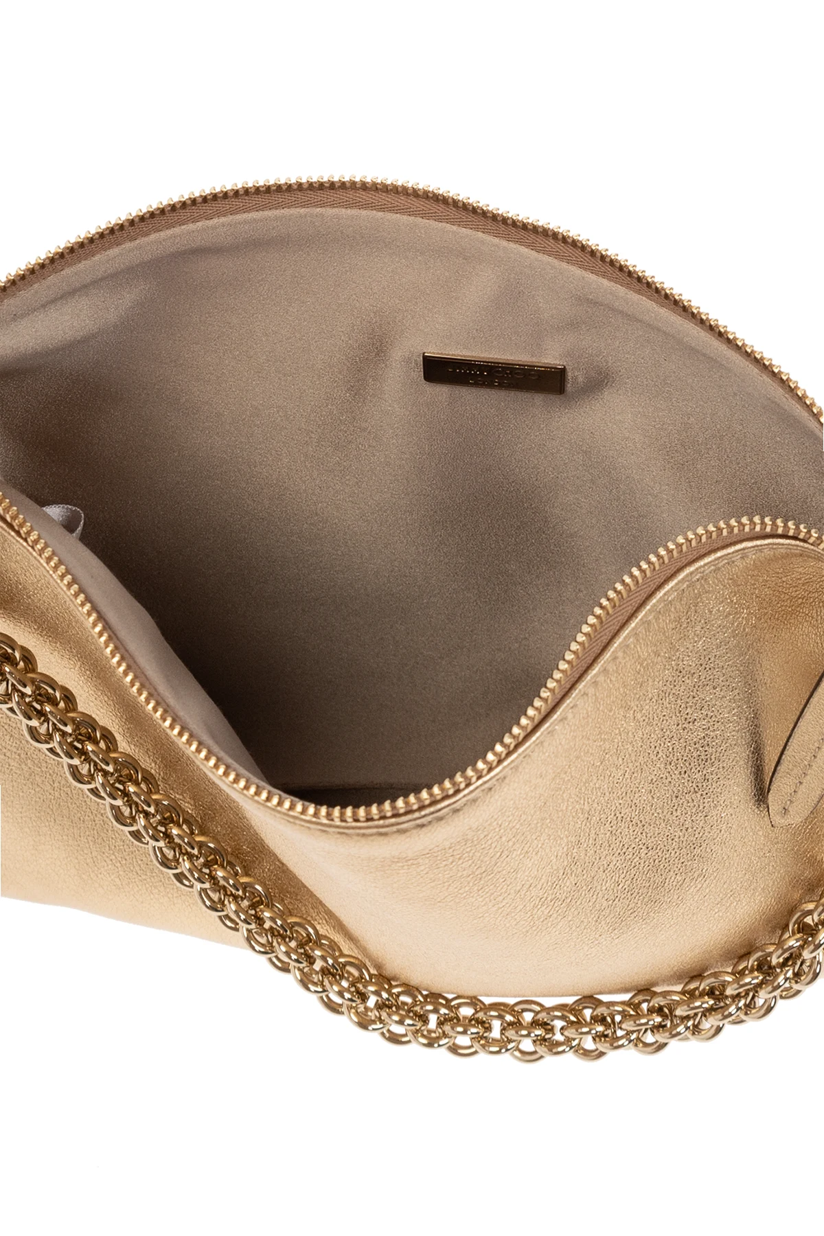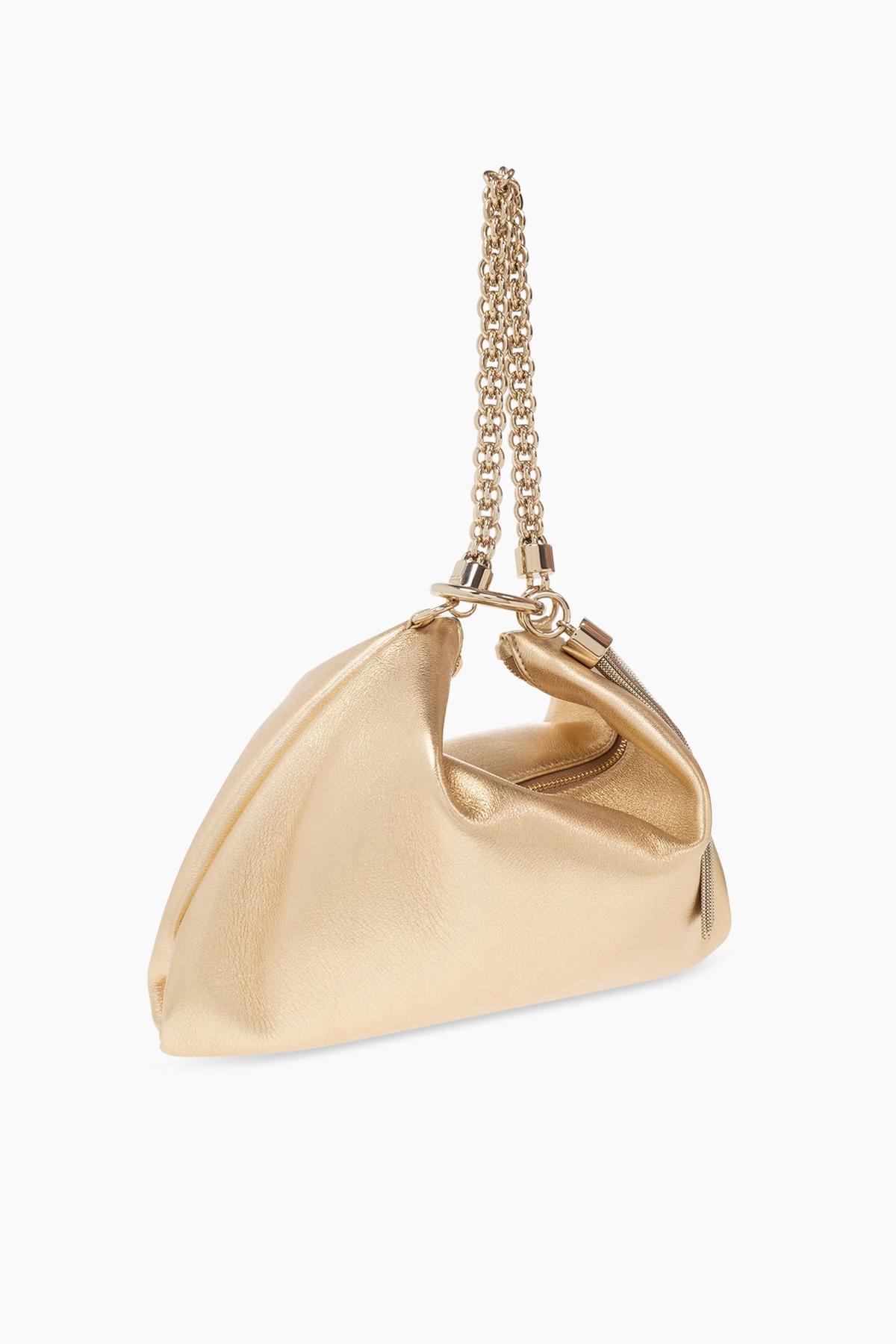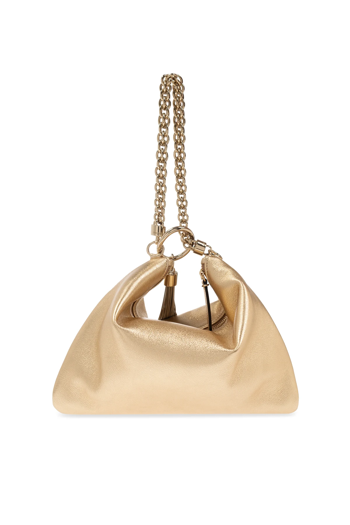 Gold-tone ‘Callie’ handbag from Jimmy Choo.Crafted from leather with a metallic finish, this design secures with a zipper and features a chain strap with a tassel, gold-tone metal hardware and one internal compartment.