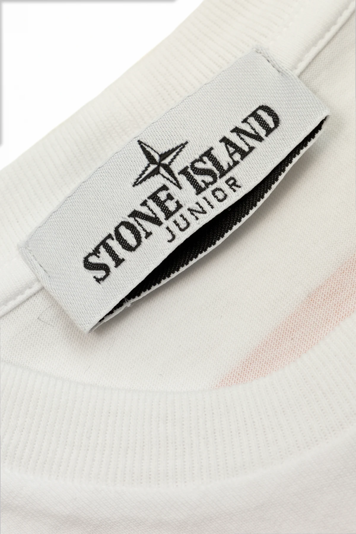 Wir präsentieren das T-Shirt mit Logo von der renommierten Marke Stone Island Junior , das Eleganz harmonisch mit kindlicher Freude verbindet. Hergestellt aus hochwertigster Baumwolle, bietet es einen makellosen Tragekomfort.