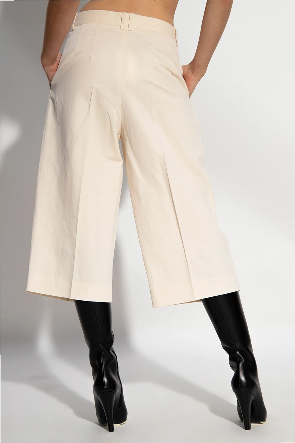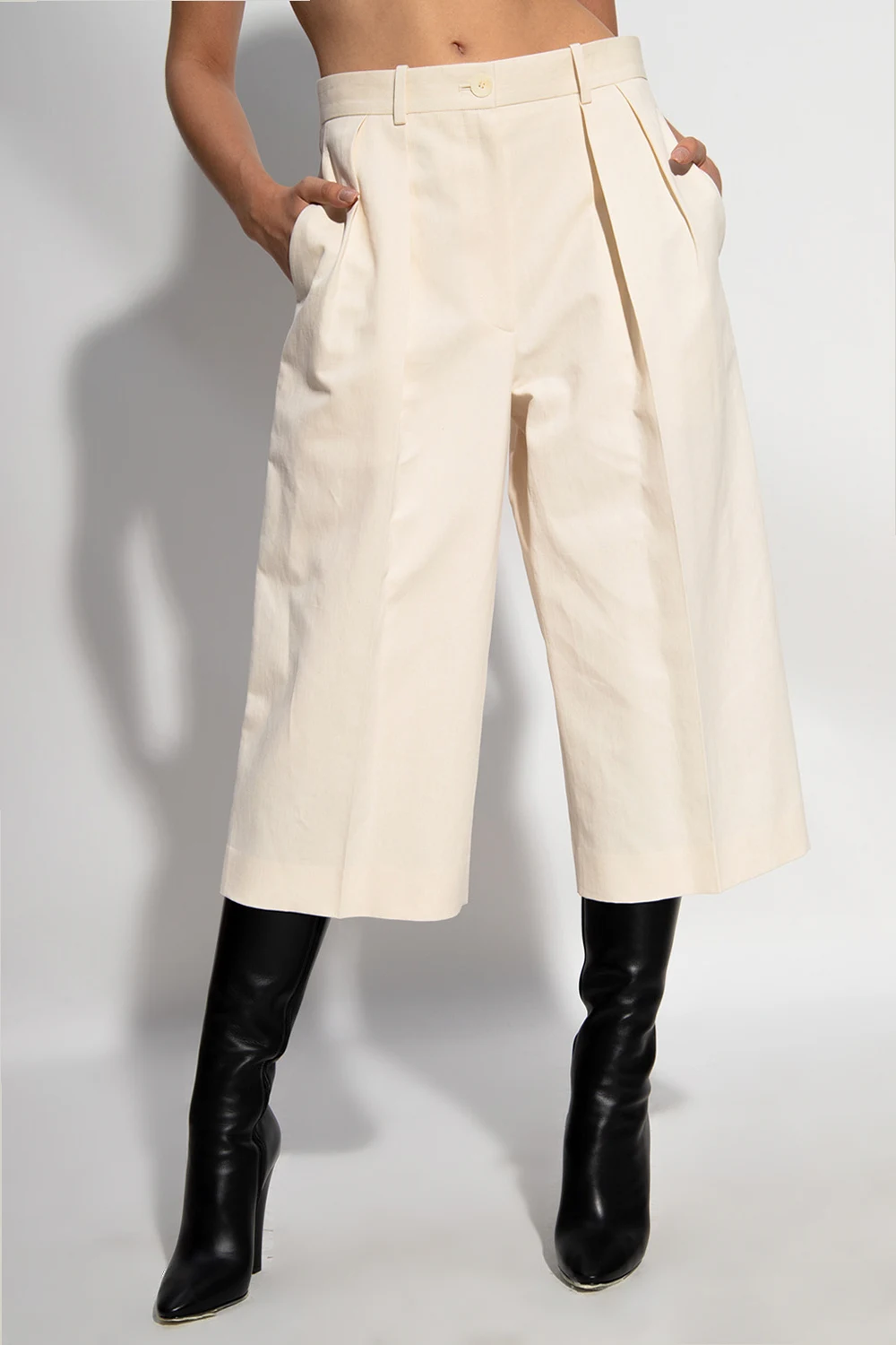 Cream ‘Lisa’ pleat-front shorts from The Row. Fastened with a zip and button, this pair is made from a cotton and linen blend.
