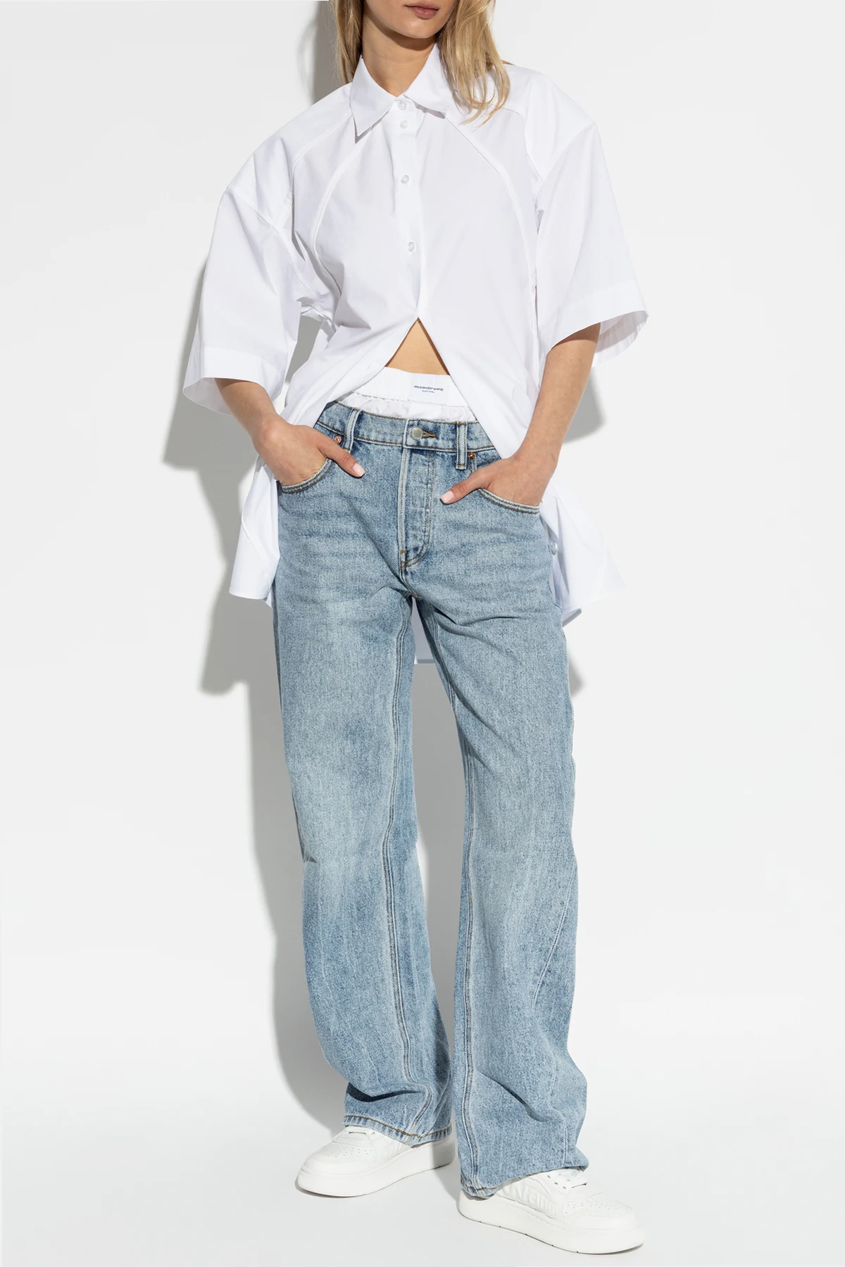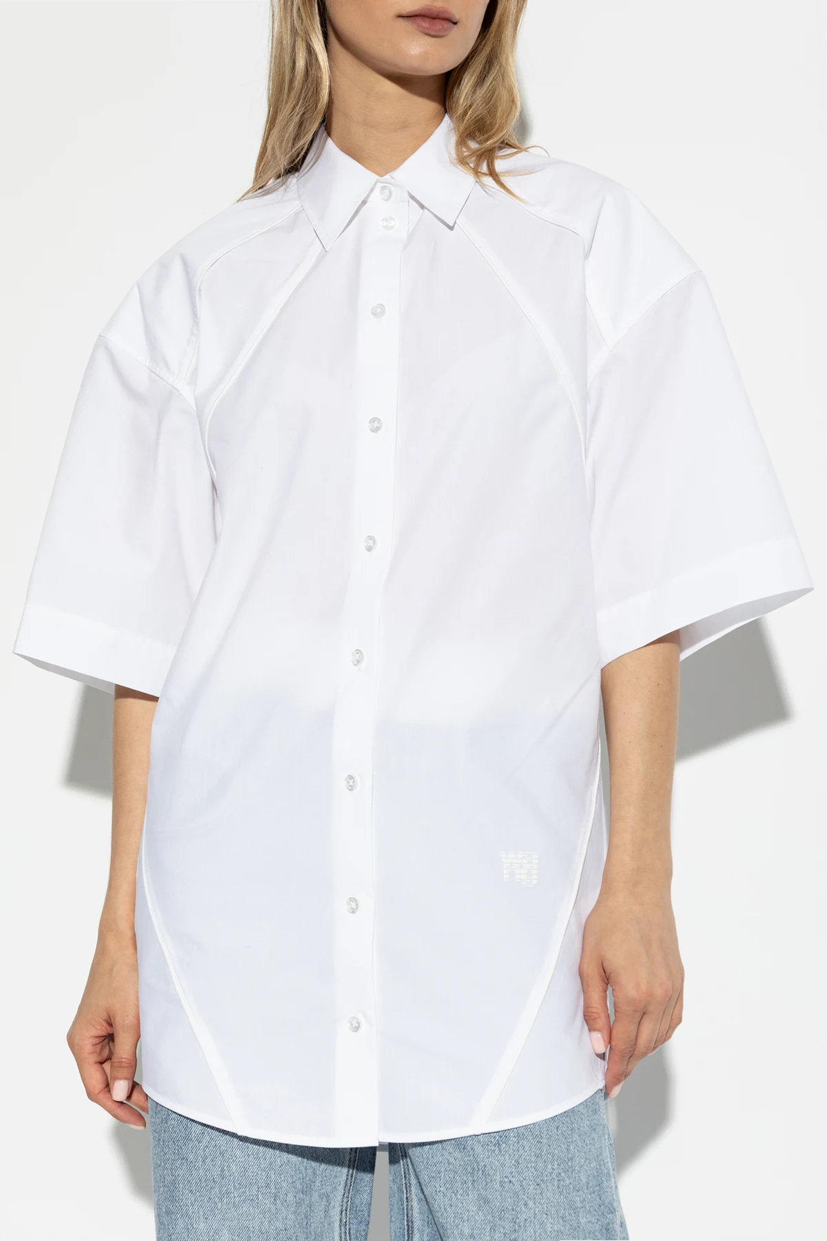 Wir präsentieren Ihnen ein außergewöhnliches Kleidungsstück von T by Alexander Wang – ein Hemdkleid, das die Einfachheit seiner Form mit der Eleganz des Materials vereint. Gefertigt aus hochwertigster Baumwolle, garantiert es nicht nur Tragekomfort, sondern auch Langlebigkeit und Pflegeleichtigkeit. Die weiße Farbe des Kleides unterstreicht seine reine, frische Ästhetik, während das diskret platzierte Logo des Designers Prestige und Wiedererkennungswert hinzufügt.