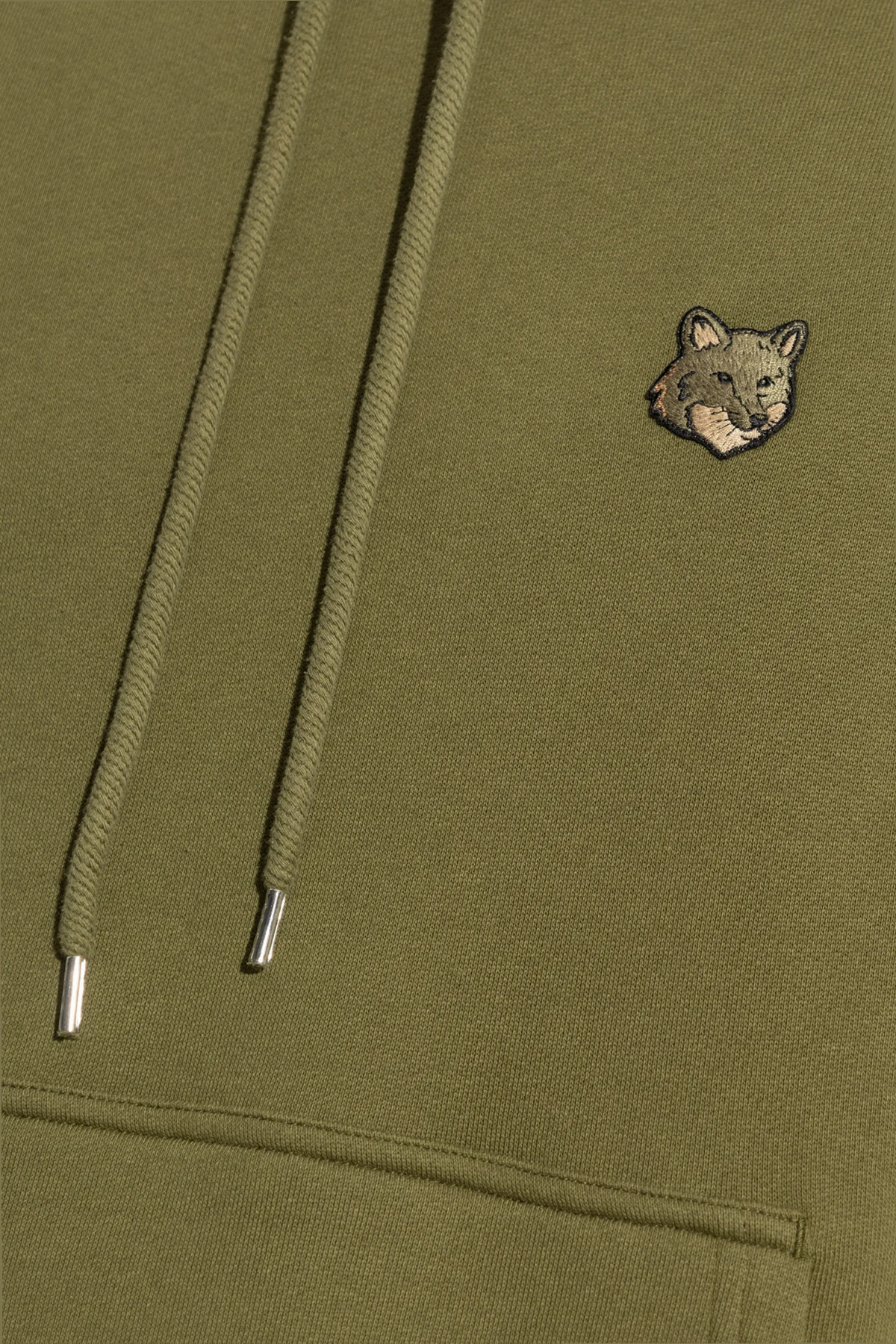 Gefertigt aus hochwertigem Material, das eine Mischung aus Baumwolle und Polyester ist, bietet das Sweatshirt unvergleichlichen Tragekomfort und Langlebigkeit. Die einheitliche Farbe Khaki verleiht ihm Eleganz, und das dezente, gestickte Logo in Form eines Fuchskopfes auf der linken Brust unterstreicht den Prestige der Marke.
