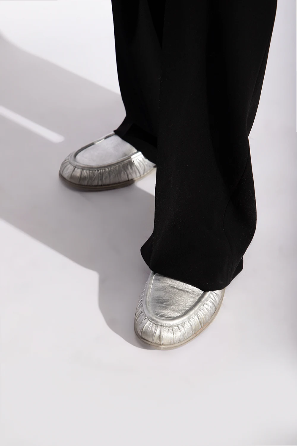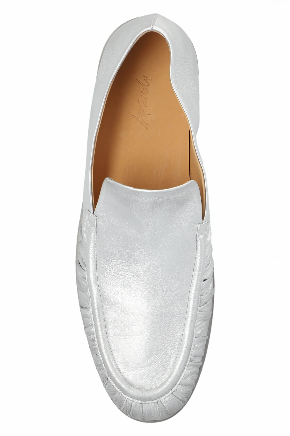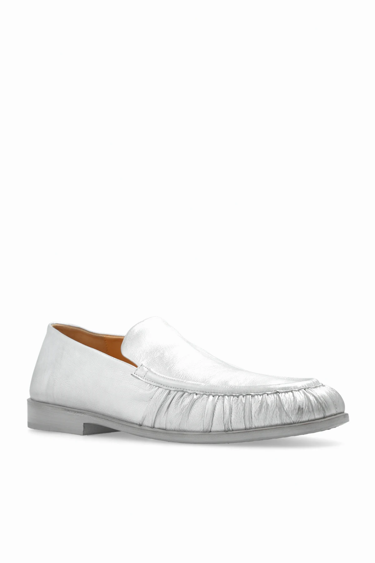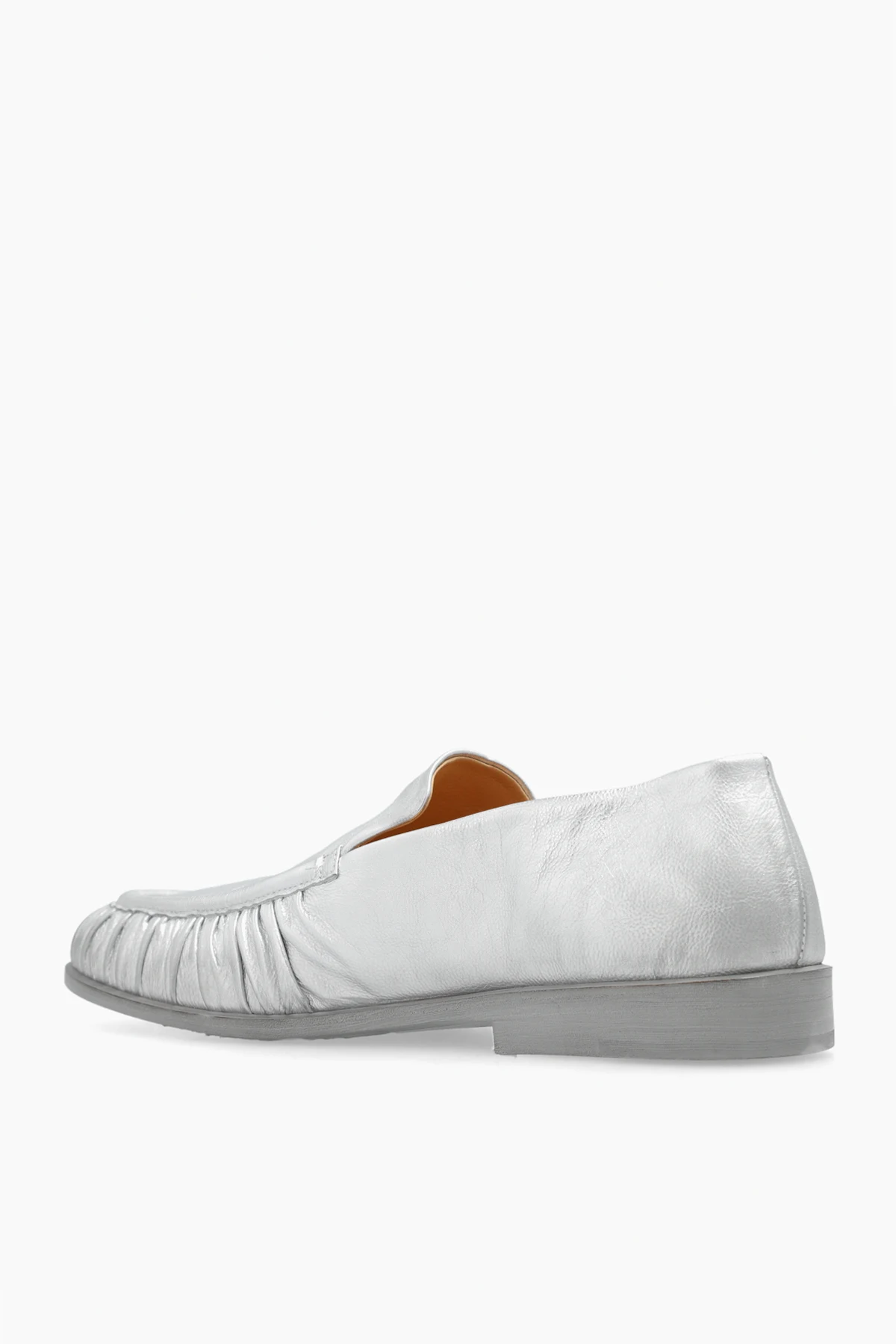 Silver-tone ‘Mocassino’ loafers from Marsell. Made from leather, this model sits on a grey and beige leather sole and features gathered detailing.