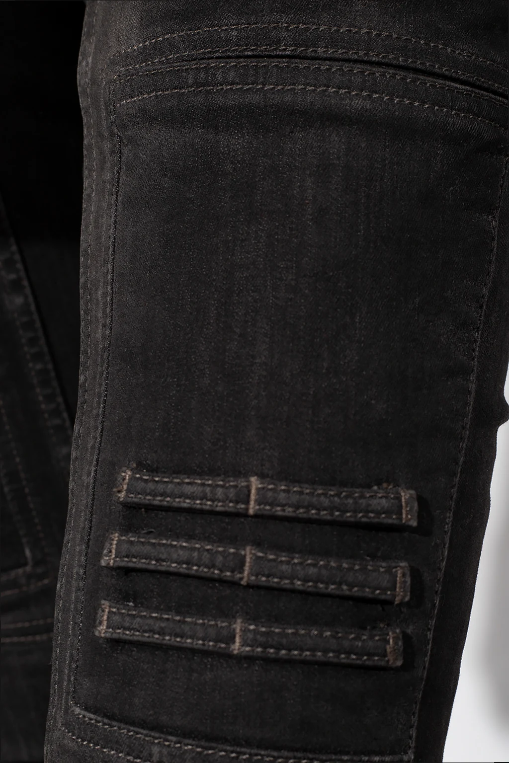 Grey and black jeans from Rick Owens DRKSHDW. Made of cotton with a vintage effect, this pair falls with tapered legs and features an elasticated waistband and four slip pockets.