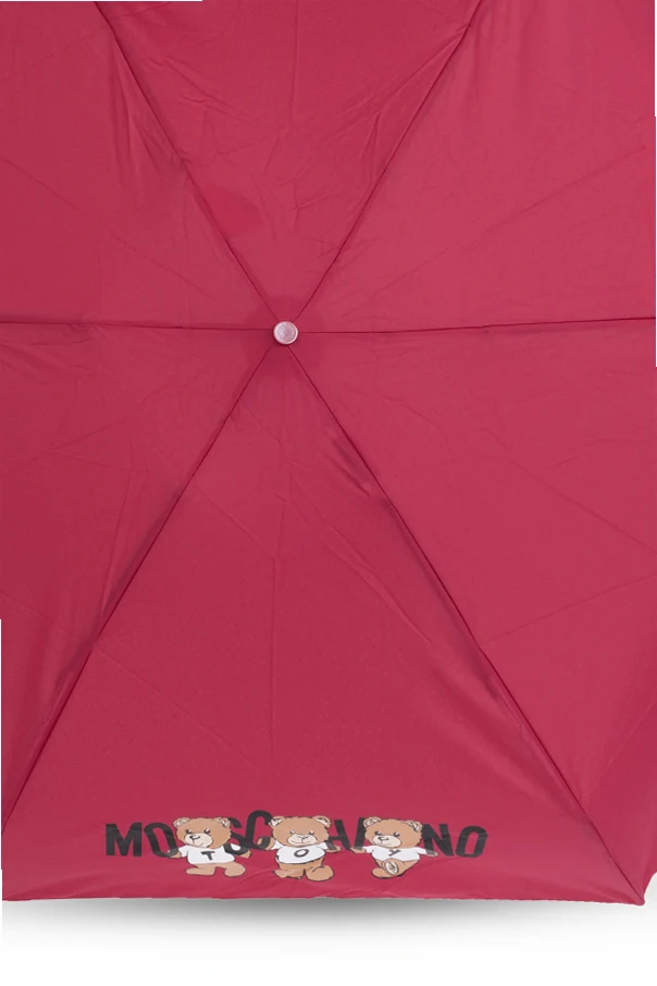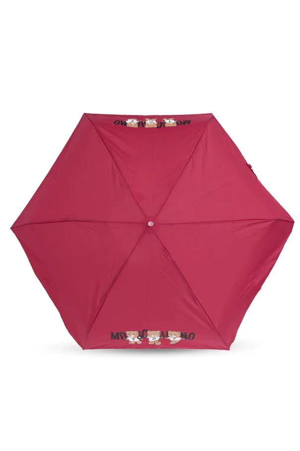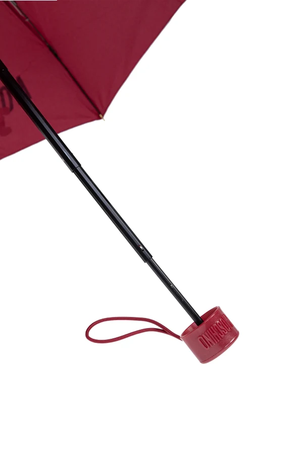 Einzigartiges Design: Die burgunderrote Farbe und das charakteristische Moschino-Logo machen den Schirm zu einem eleganten Accessoire.