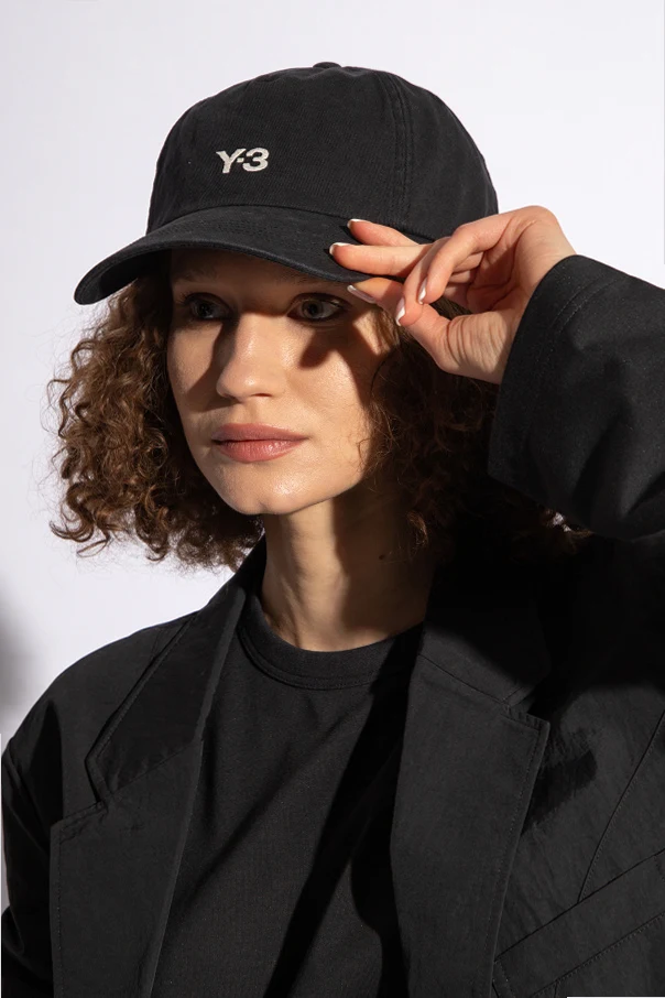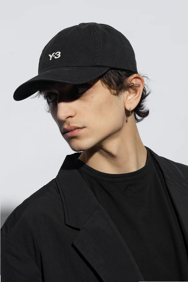 Black baseball cap from Y-3 Yohji Yamamoto. Made from cotton, this item adjusts on the back and showcases an embroidered white logo.