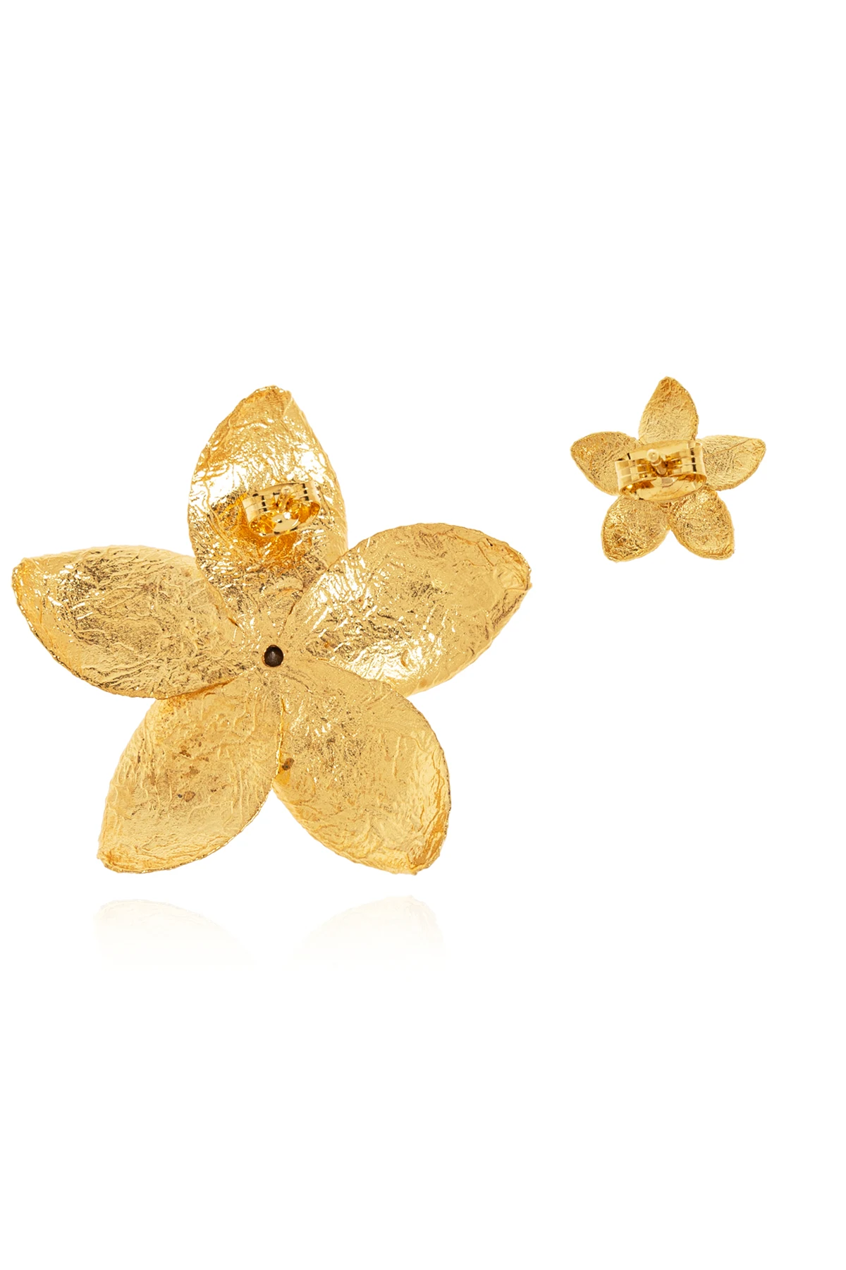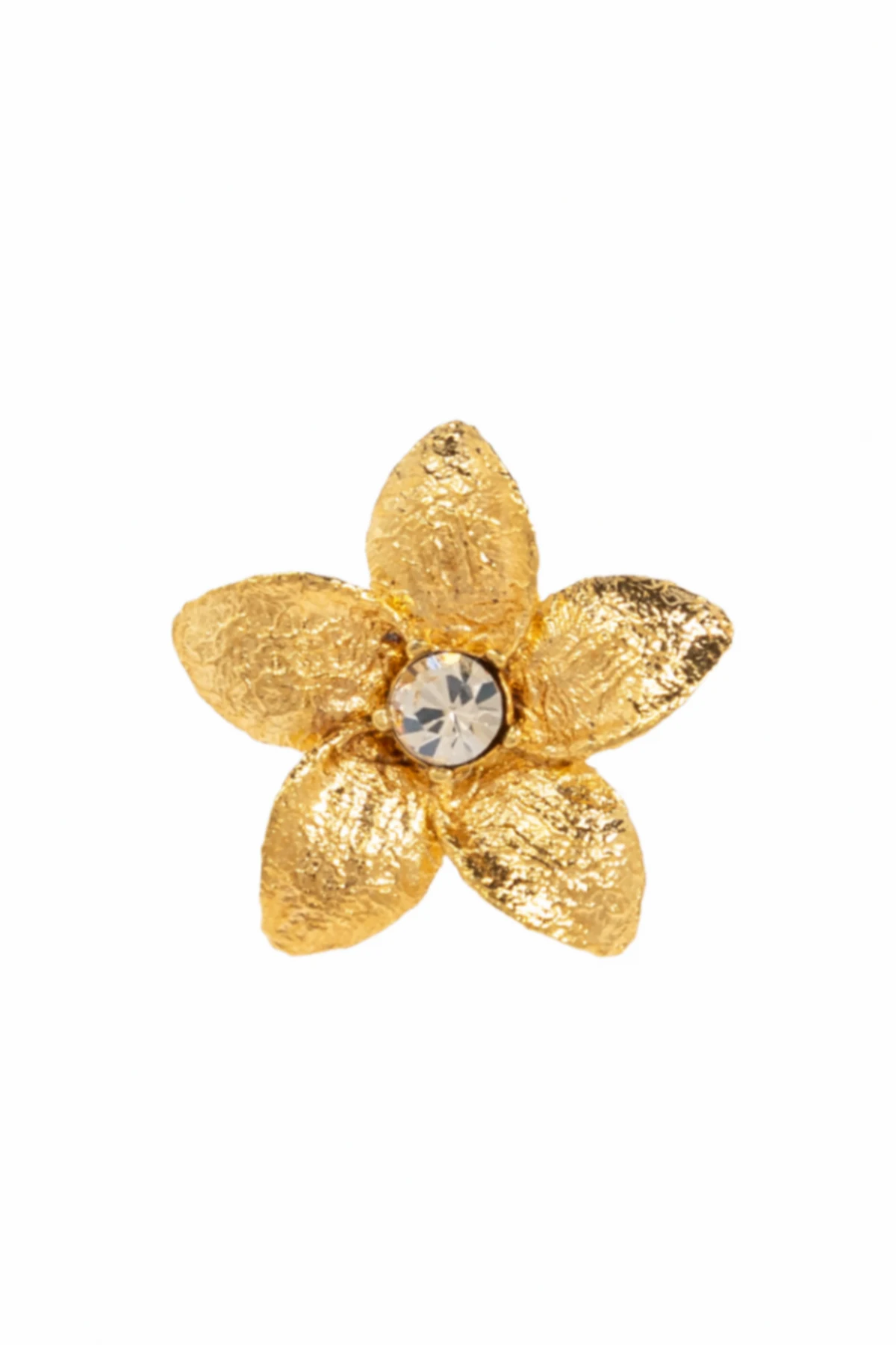 Wir präsentieren Ihnen exklusive Ohrringe in Blumenform von der renommierten Marke forte_forte . Diese außergewöhnlichen Accessoires, aus Messing gefertigt und mit 18-karätigem Gold überzogen, verkörpern die Quintessenz von Luxus und raffiniertem Stil. Jeder der fünf Blütenblätter verfügt über eine strukturierte Oberfläche, die den Ohrringen ein elegantes und subtil raffiniertes Aussehen verleiht.