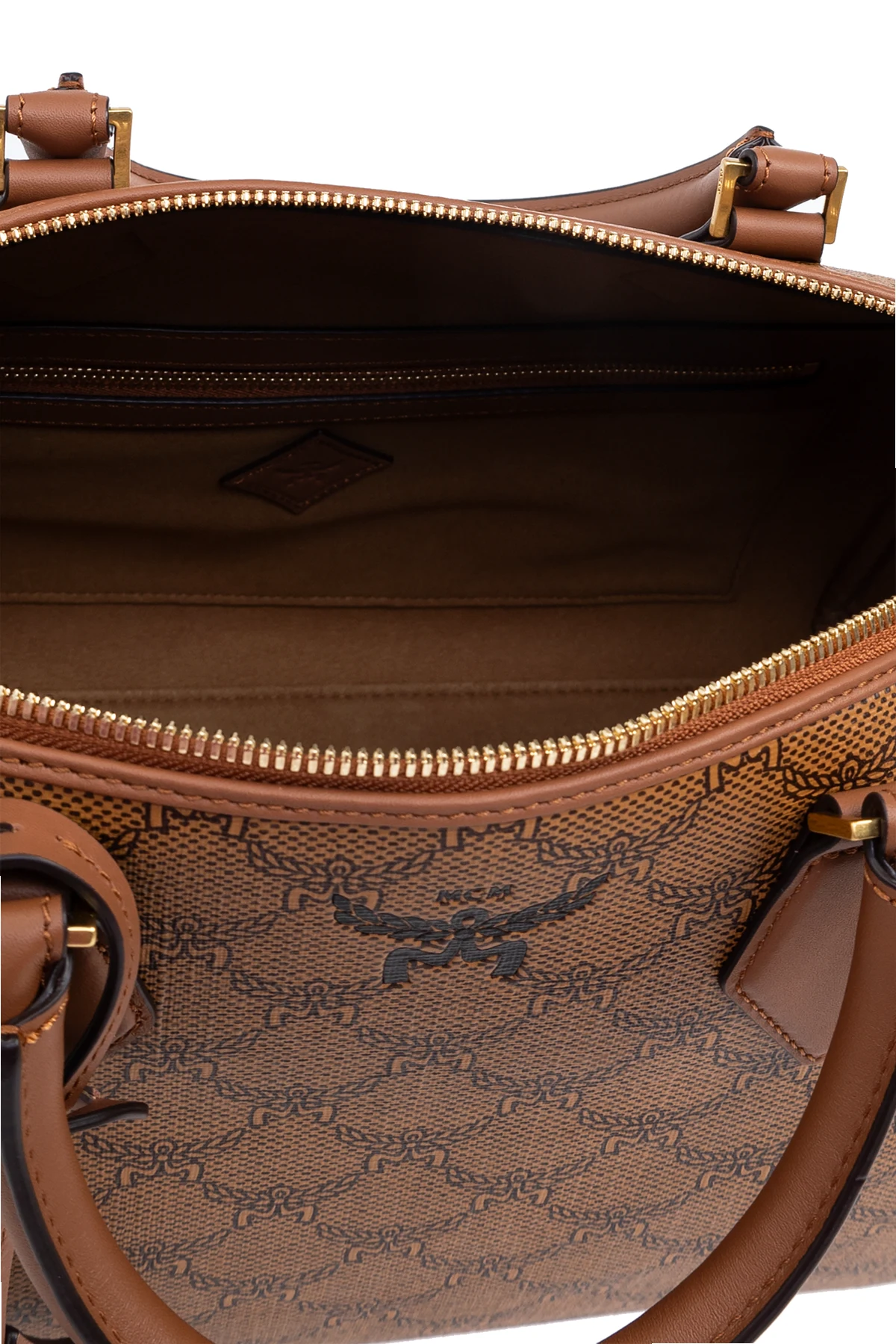 Entdecken Sie exquisiten Luxus und Funktionalität, eingefangen in einer braunen Schultertasche mit `Visetos` -Aufdruck vom renommierten Designer MCM. Dieses raffinierte Accessoire, gefertigt aus hochwertigstem Canvas, wird Sie mit seiner klassischen Form und dem einzigartigen Design verzaubern, bei dem das Markenlogo eine harmonische Komposition über die gesamte Oberfläche bildet. Kontrastierende Brauntöne und goldene Details wie Schnallen und ein eleganter Reißverschluss verleihen dem Ganzen einen luxuriösen Charakter.