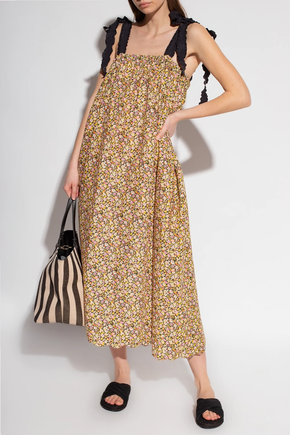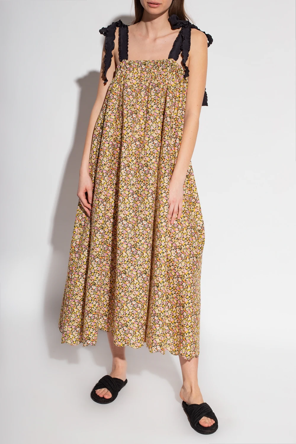 Multicoloured ‘North’ beach, slip dress from Marysia. Made of cotton, this style features adjustable shoulder straps, side pockets, a floral theme and the brand's signature raw edge, hand cut scallops.