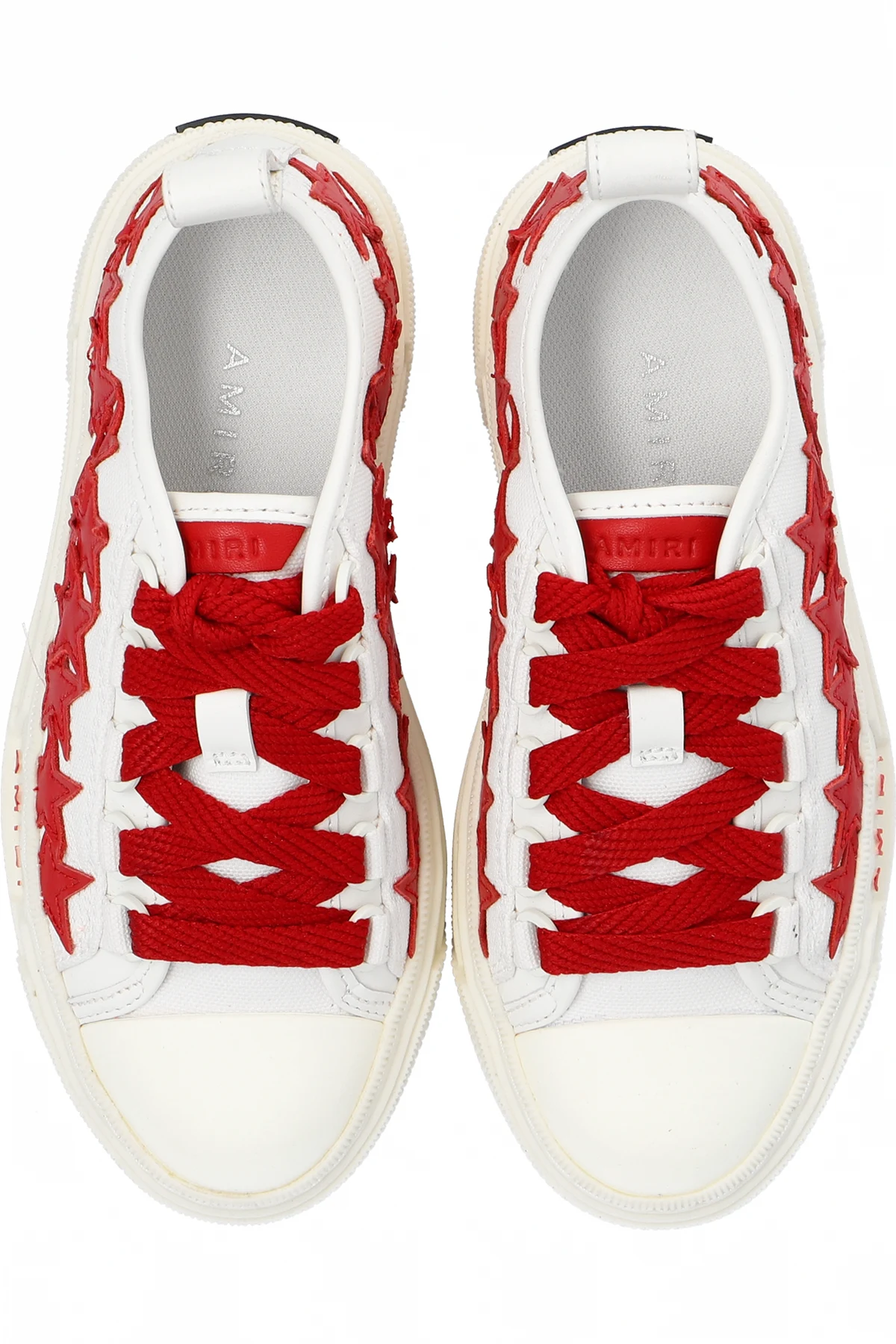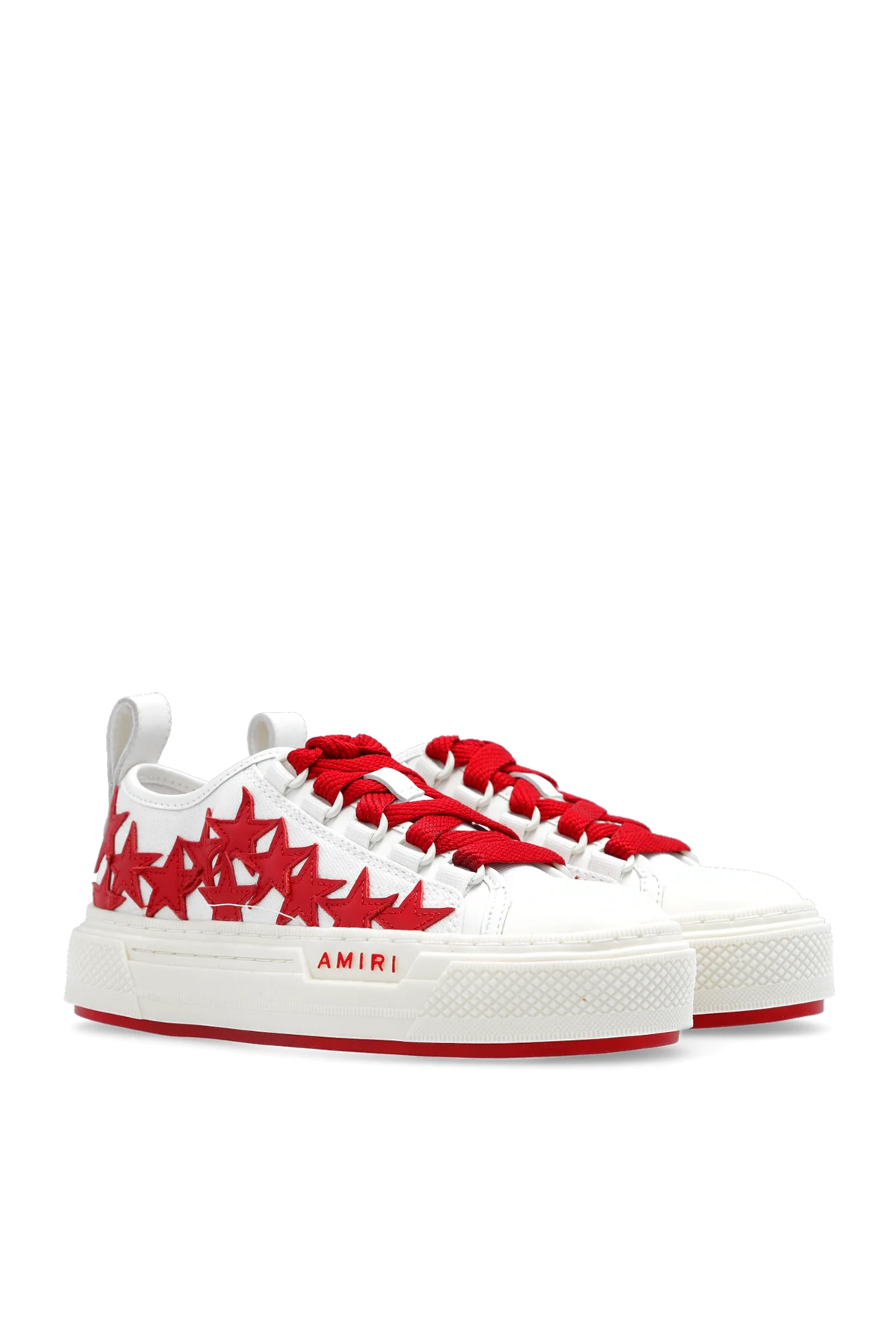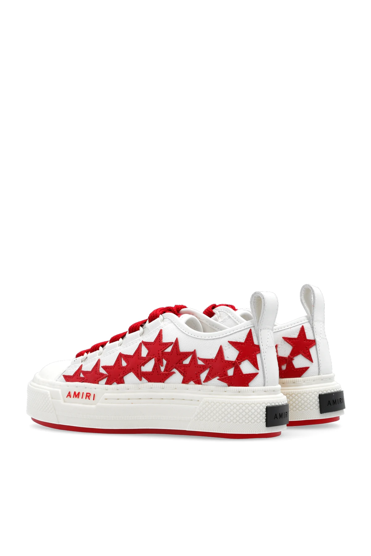 White, cream and red ‘Stars Court Low’ sneakers from Amiri Kids. Crafted from fabric and trimmed with leather, this lace-up model sits on a red and cream rubber sole and showcases patches featuring the brand's logo and stars.