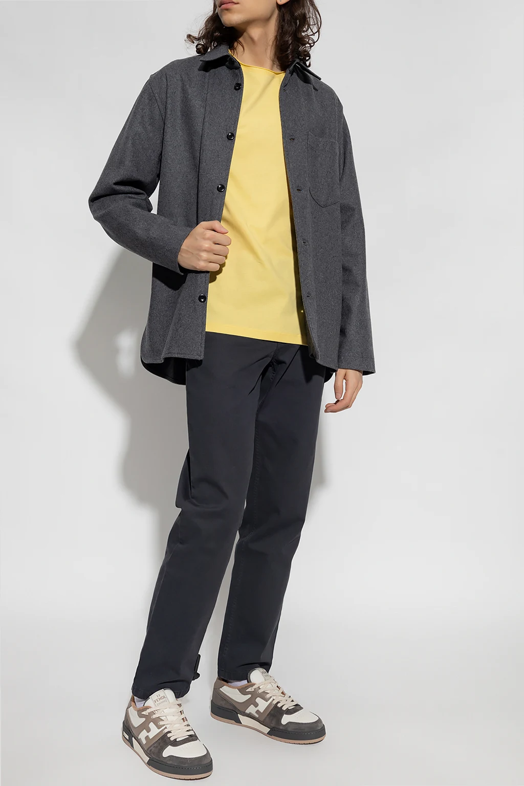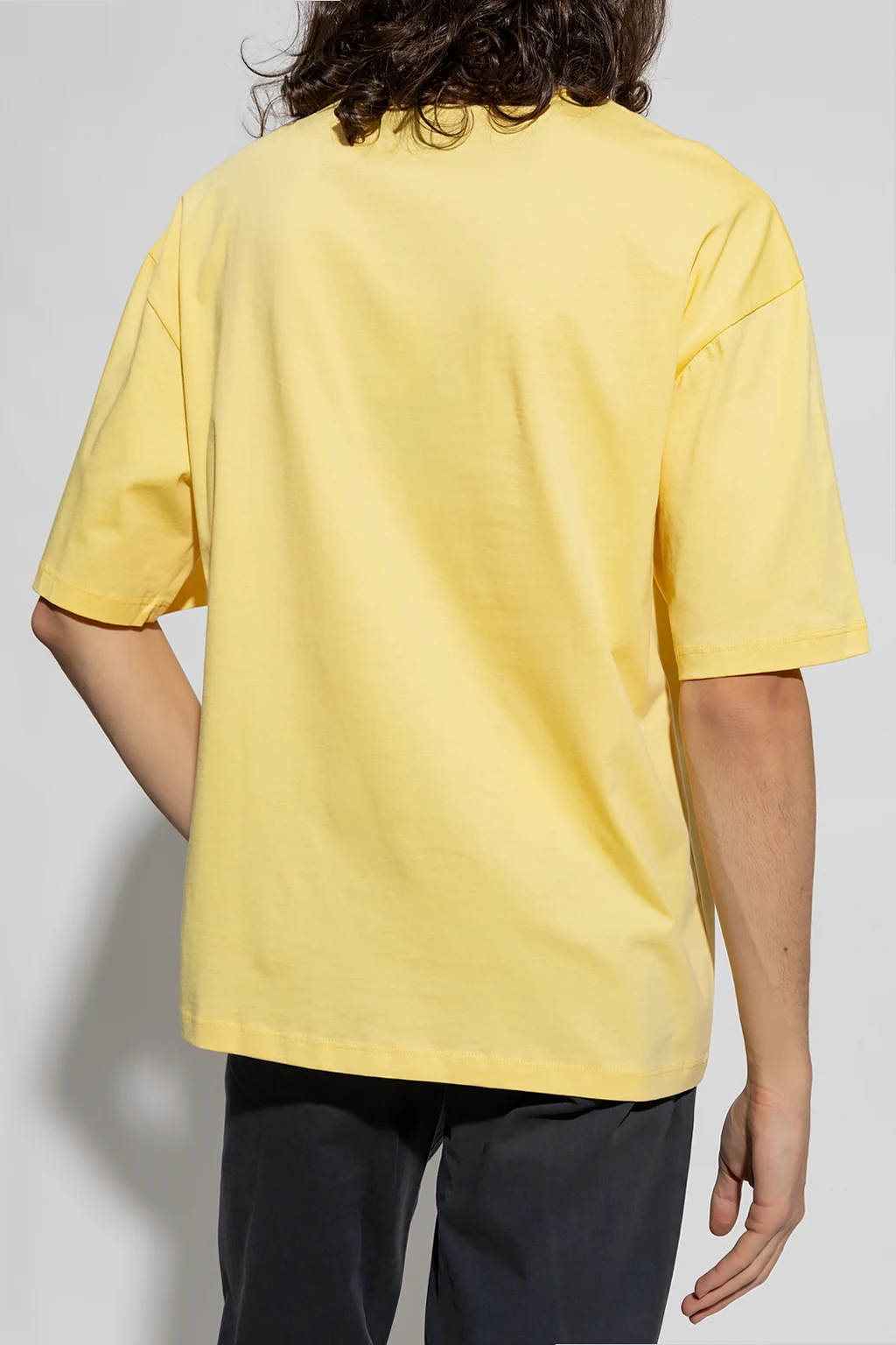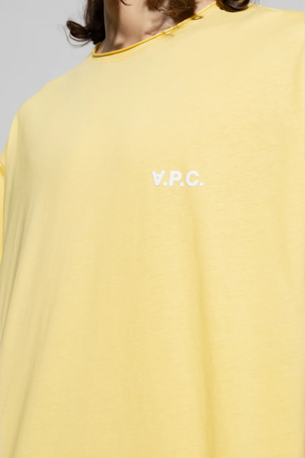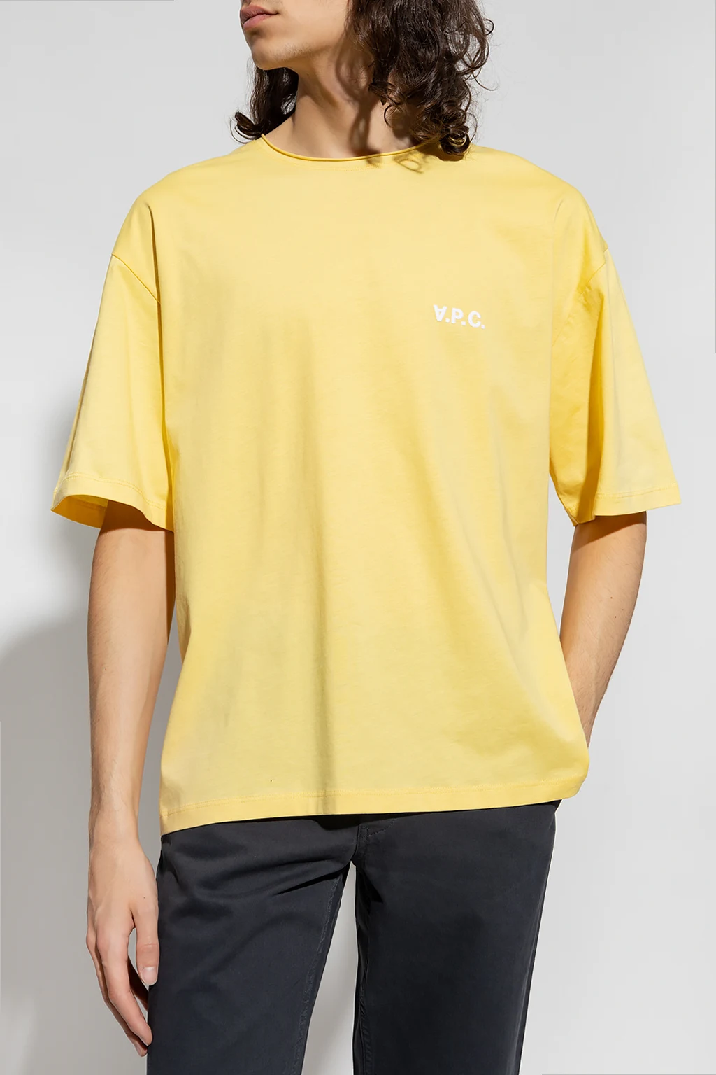 Yellow ‘Jeremy’ T-shirt from A.P.C. Crafted from organic cotton, this design features a white logo and short sleeves.