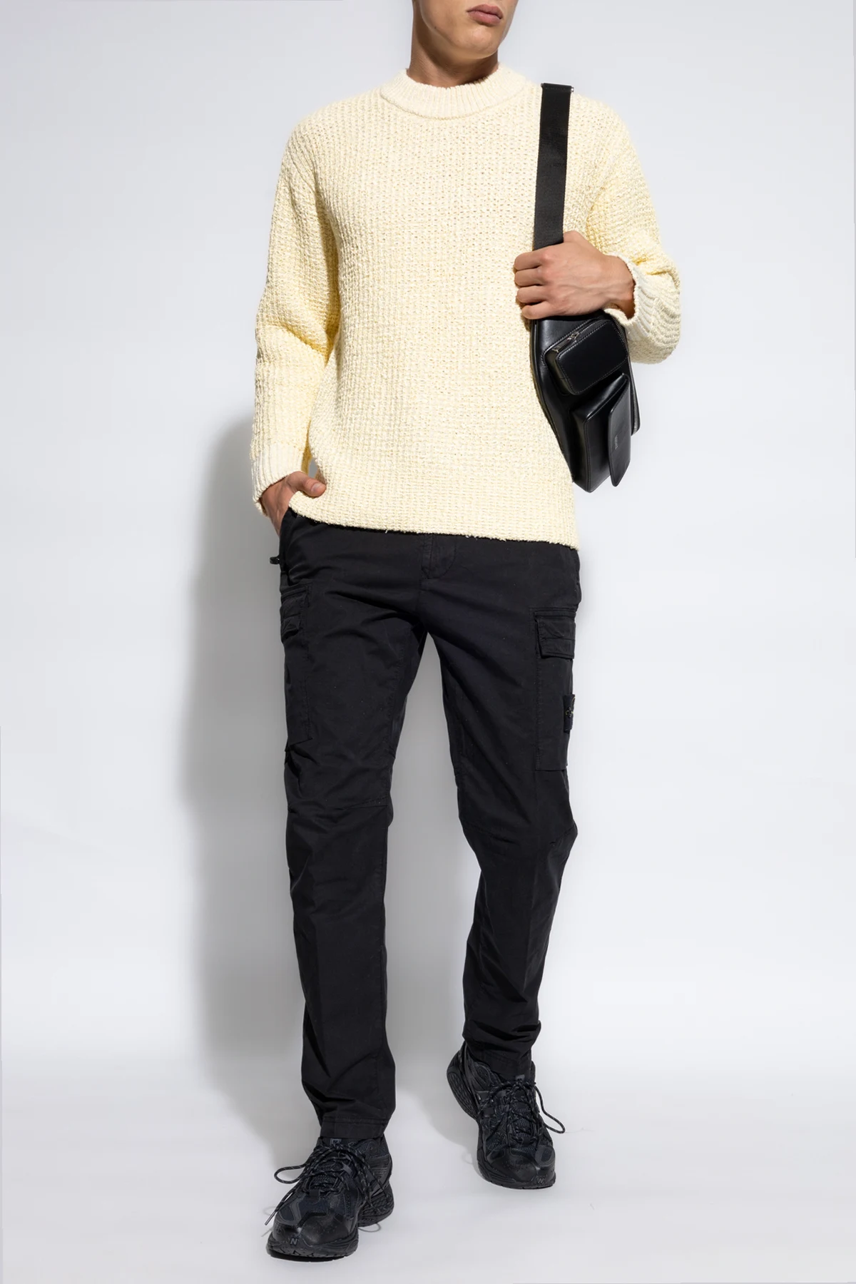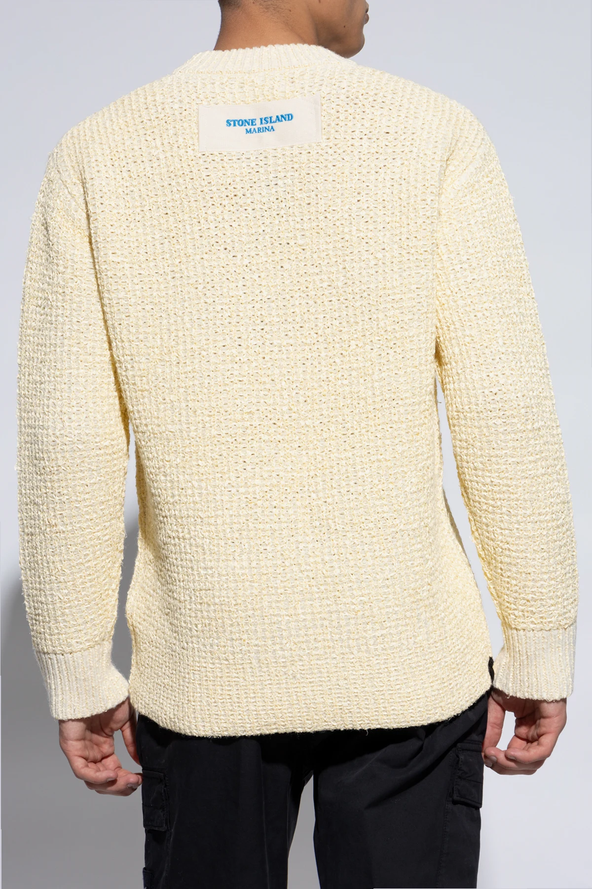 Der Pullover aus der exklusiven Kollektion der Marke Stone Island ist die Quintessenz von Eleganz und Luxus. Das Modell 'Marina' besticht durch einen klassischen, geraden Schnitt, der bis zur Hüfte reicht, lange Ärmel und einen Rundhalsausschnitt aufweist. Hergestellt aus dickem Material mit dichter Webart, zeichnet es sich durch ein einheitliches Strickmuster aus, was ihm einen minimalistischen und raffinierten Charakter verleiht.
