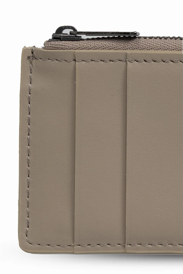 Das Etui zeichnet sich durch seine rechteckige Form mit abgerundeten Kanten aus, und seine Vorderseite ist mit Kartenfächern geschmückt. Ein geprägtes Designer-Logo verleiht ihm eine raffinierte Eleganz, und der Reißverschluss an der Oberseite bietet zusätzlichen Platz für kleine Gegenstände. Das Produkt verfügt über zwei Kartenfächer und zwei Reißverschlusstaschen, was es äußerst praktisch macht.