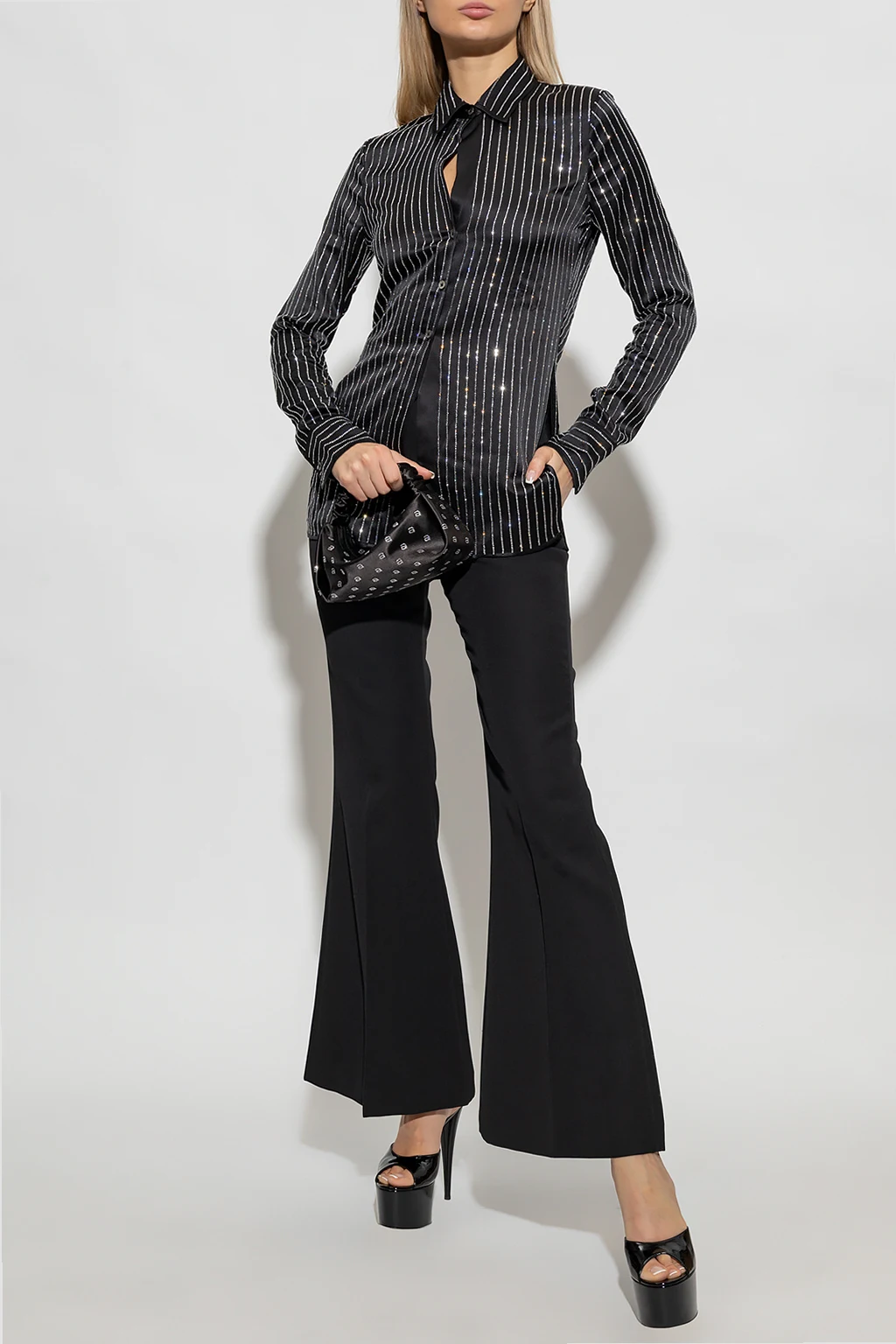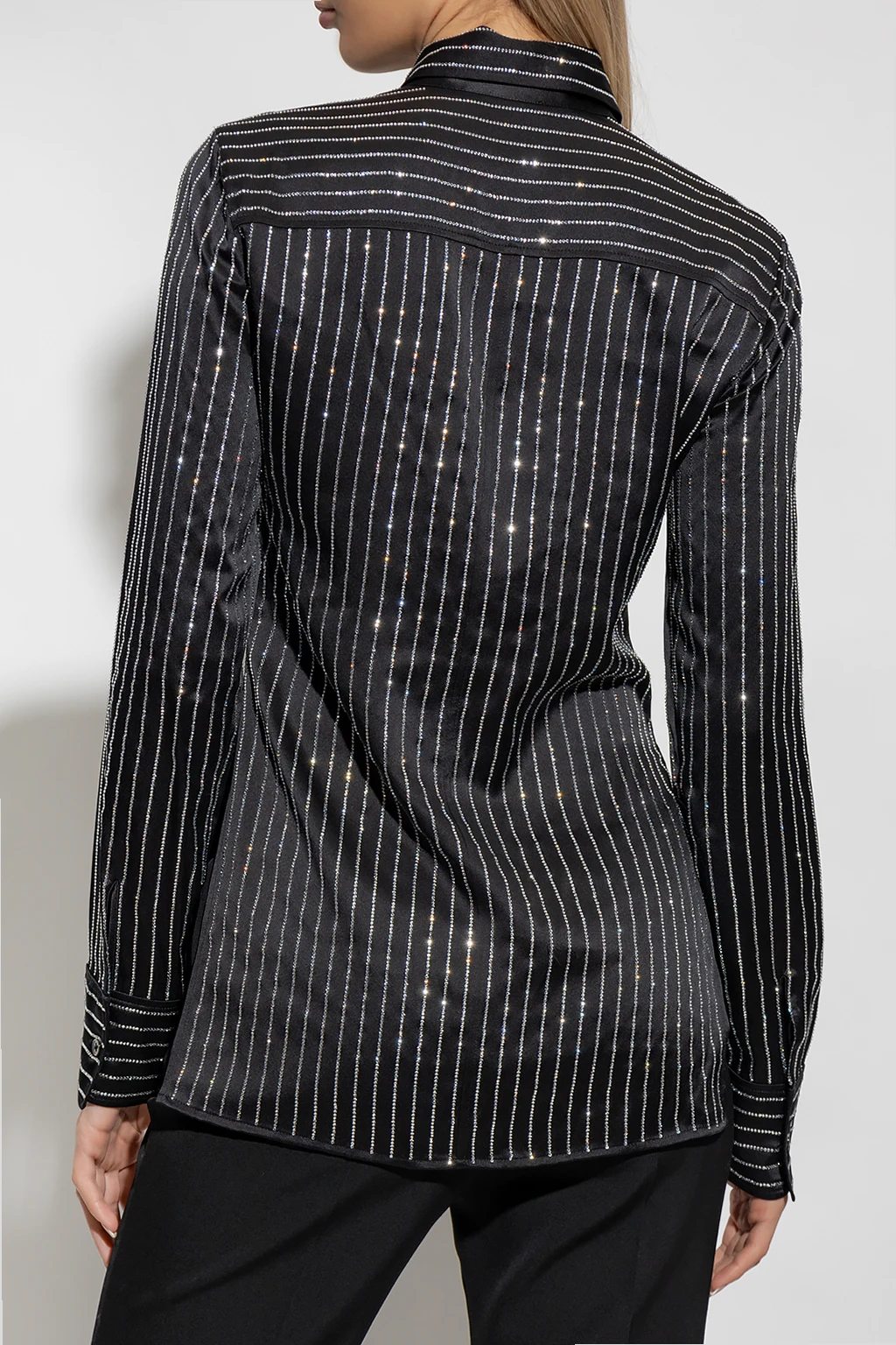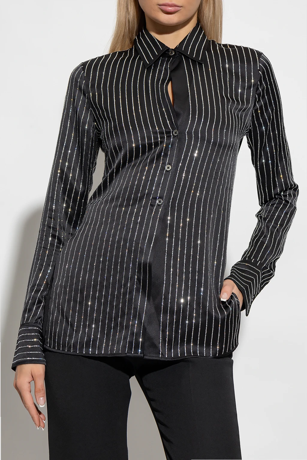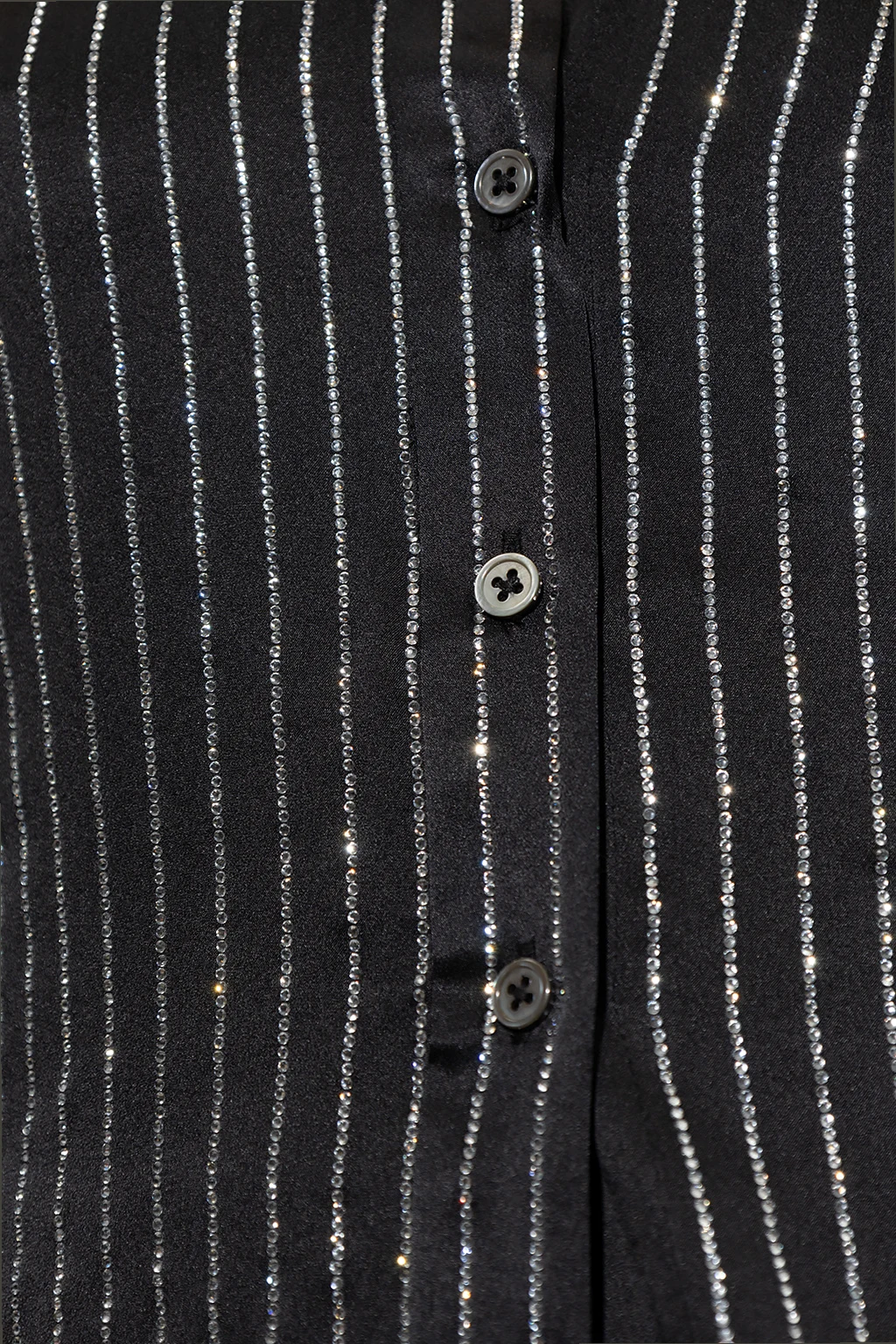 Black shirt from Alexander Wang. Made of silk, this garment features button fastenings, ribbed pinstripe pattern embellished with crystals, side vents and long sleeves with buttoned cuffs.