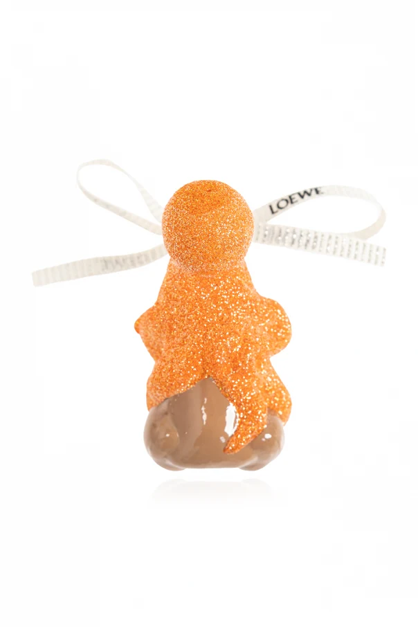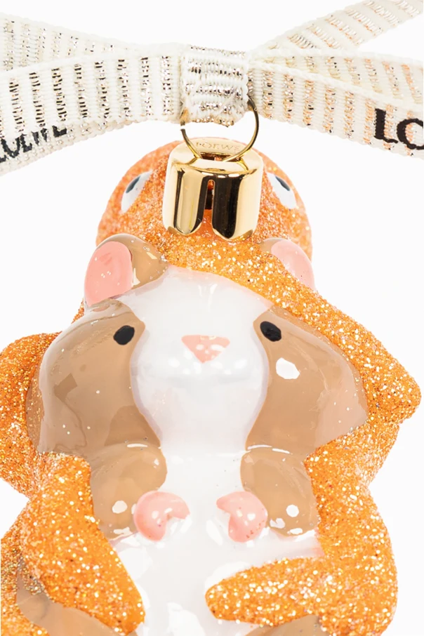 Entdecken Sie den einzigartigen Loewe x Suna Fajita Schmuck , der die Quintessenz von Luxus und Raffinesse darstellt. Diese besondere Kugel, inspiriert von der Form eines kleinen Nagetiers, ist mit schillerndem orangefarbenem Glitzer überzogen, der die Blicke auf sich zieht und ihr Glanz verleiht. Details in Form von weißen und braunen Elementen am Körper des Tieres sowie subtile rosa Akzente an Pfoten und Ohren verleihen ihr besonderen Charme. Ein goldener Griff mit einem mit dem Loewe-Logo verzierten Band unterstreicht ihre Exklusivität.