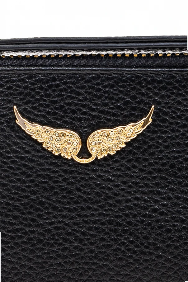 Auf der Vorderseite dieses schwarzen Portemonnaies befindet sich ein goldener Emblem in Form von Flügeln, der nicht nur schmückt, sondern auch den einzigartigen Charakter des Produkts definiert. Der goldene Reißverschluss sorgt für die Sicherheit des Inhalts, während zusätzliche Fächer auf der Rückseite seine Funktionalität erhöhen.