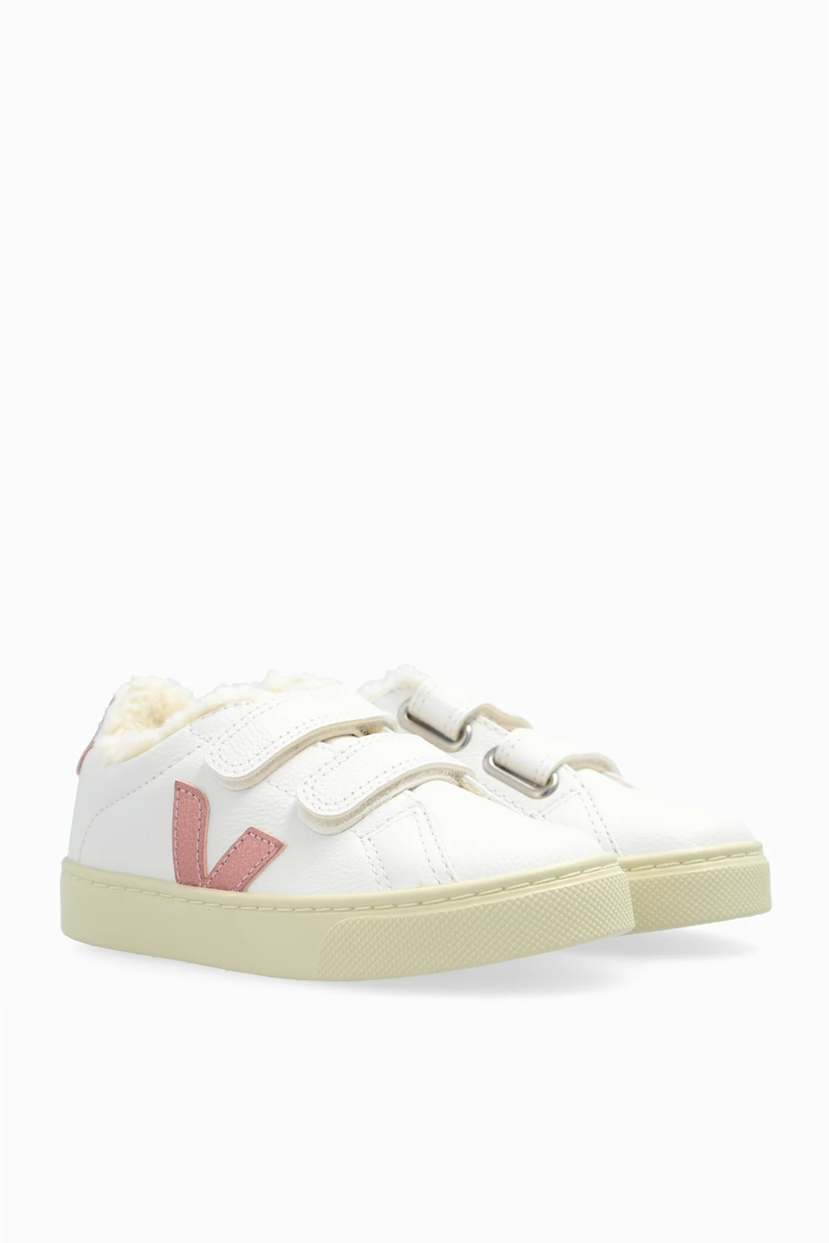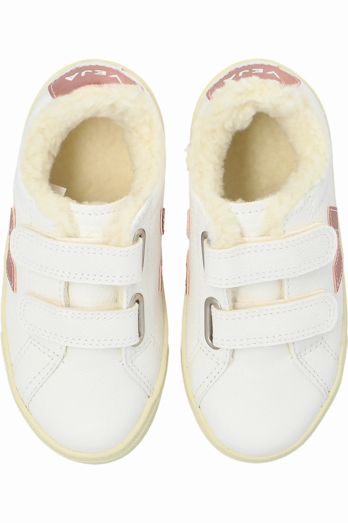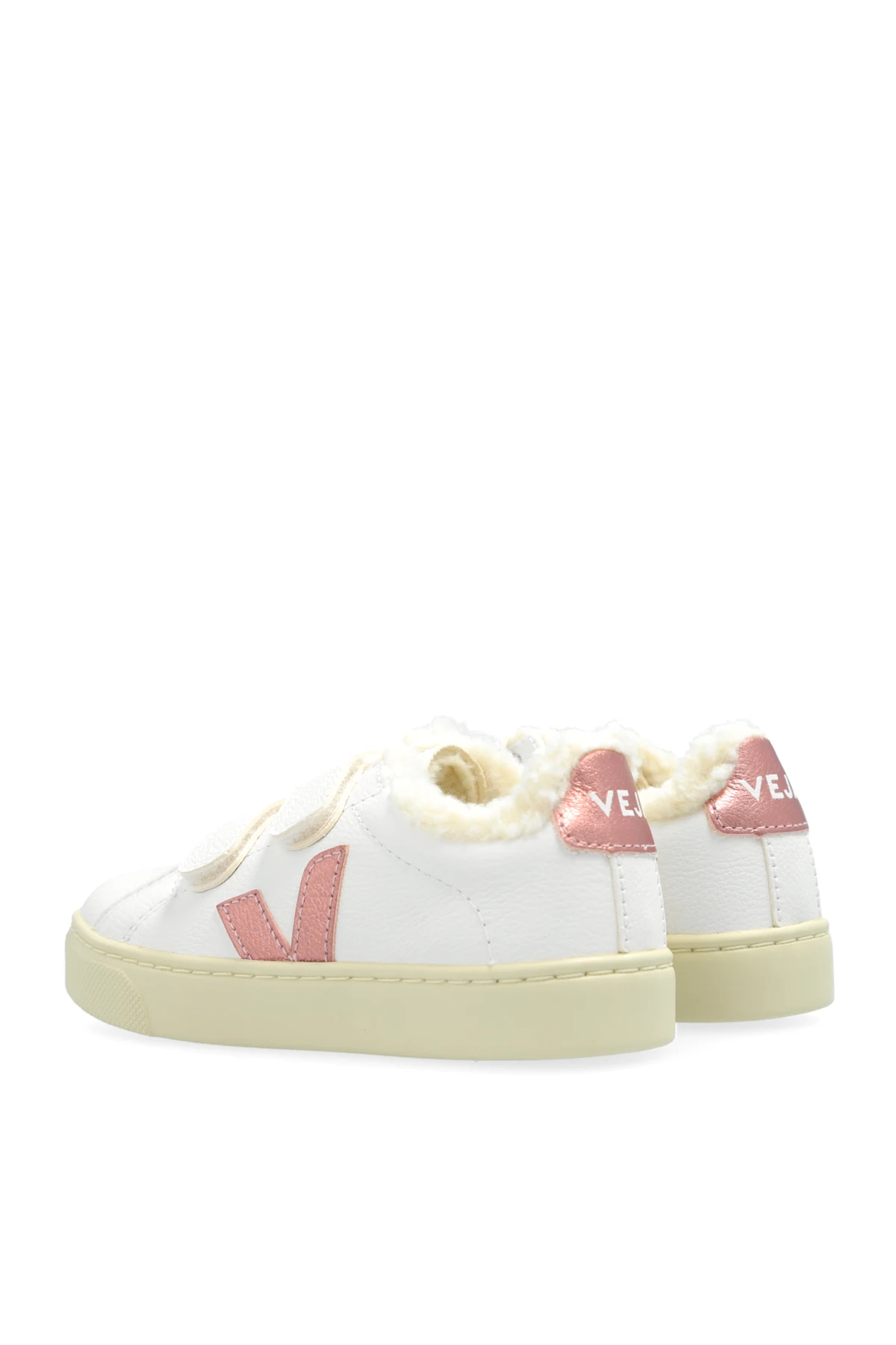 Hergestellt aus weißem, chromfreiem Leder, sind sie umweltfreundlich und unterstreichen das Engagement der Marke VEJA für den Schutz unseres Planeten. Das Innere der Schuhe ist mit weichem, cremefarbenem Kunstfell ausgekleidet, was Komfort und Wärme bietet, ideal für kühlere Tage.