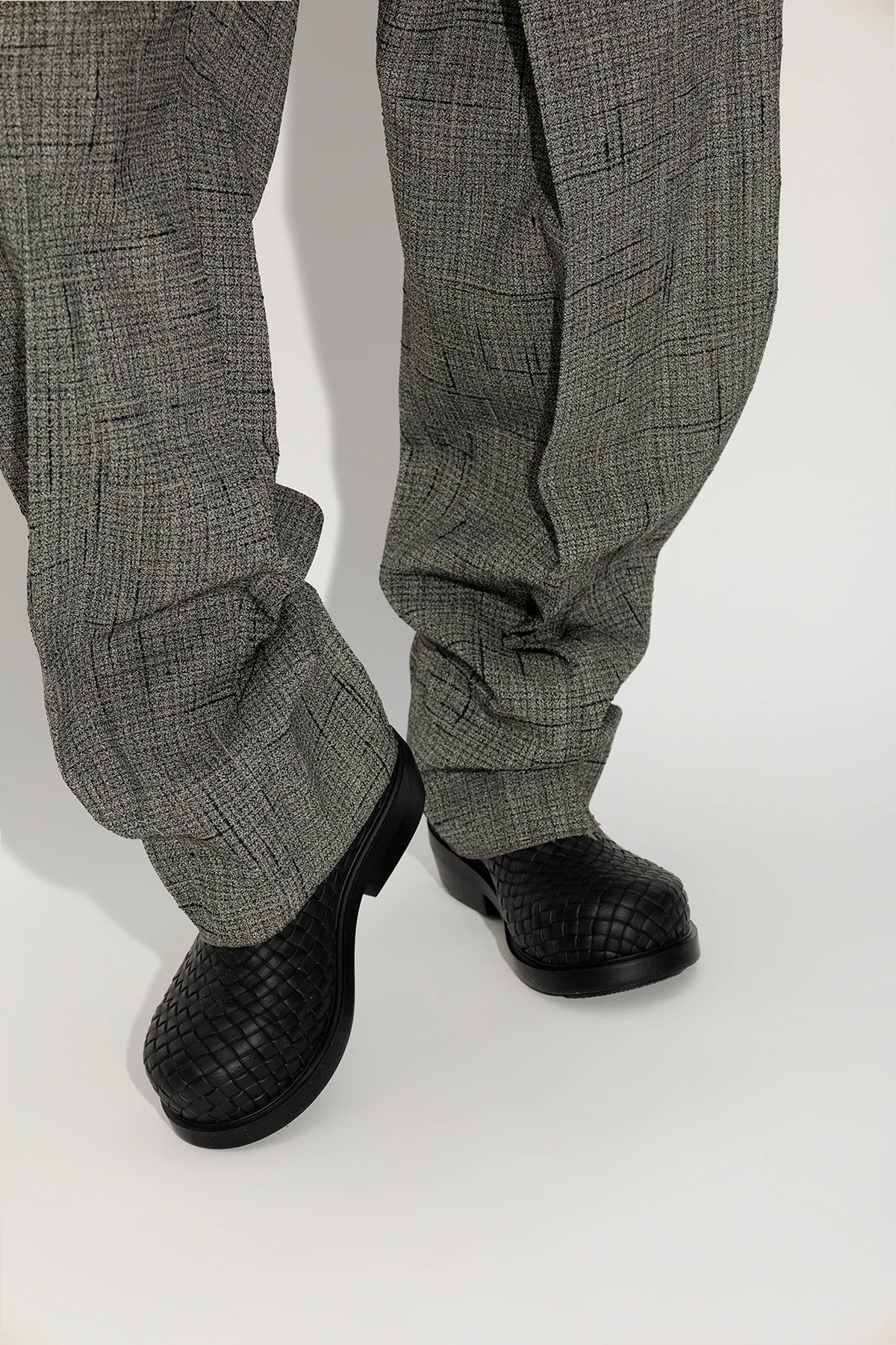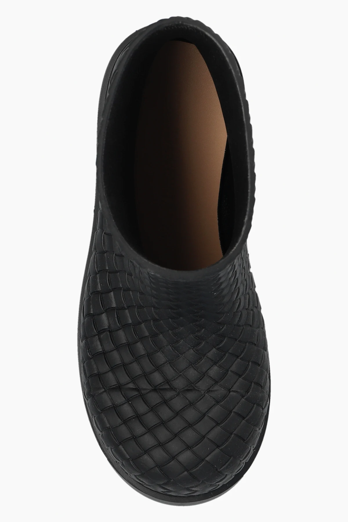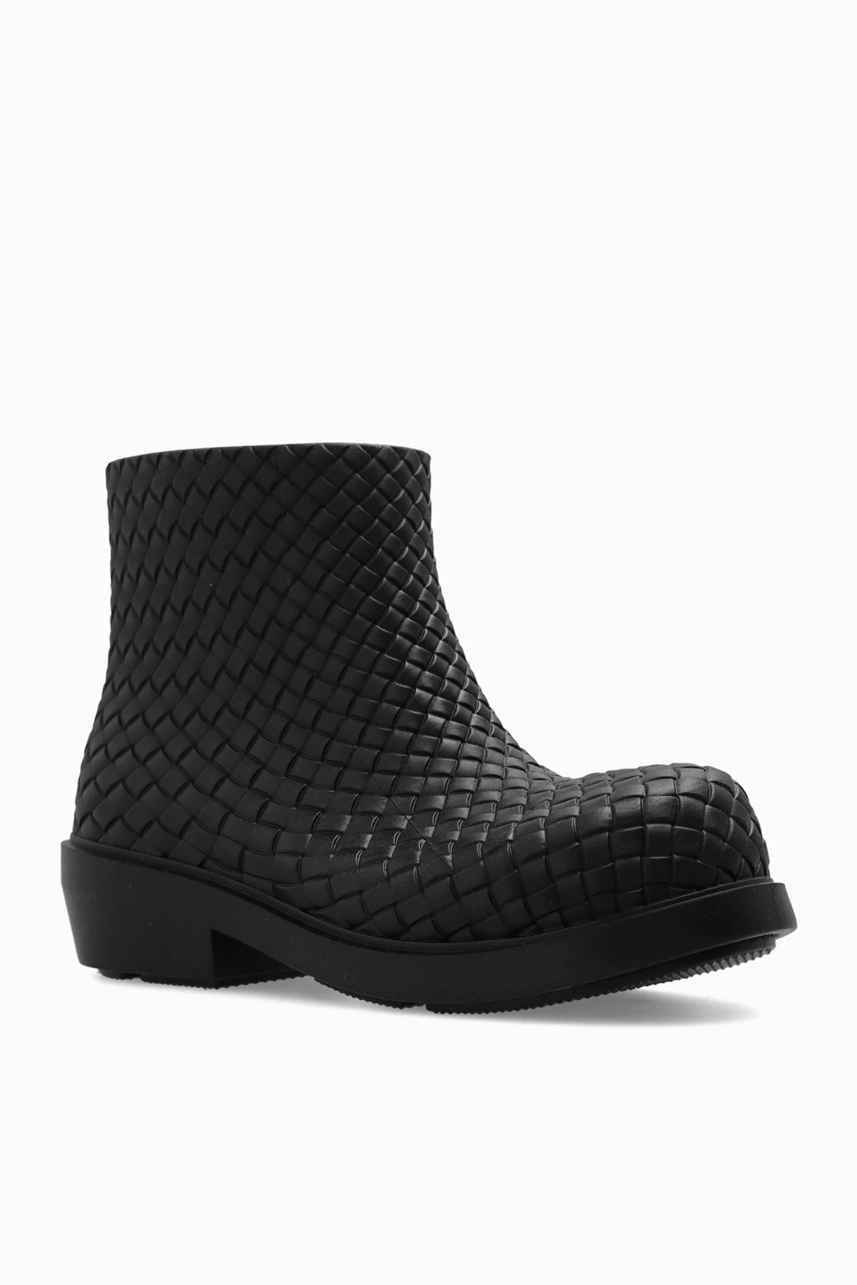 Black rain boots from Bottega Veneta. From Bottega Veneta. Made of rubber, this model showcases the brand's signature ’Intrecciato’ weave.