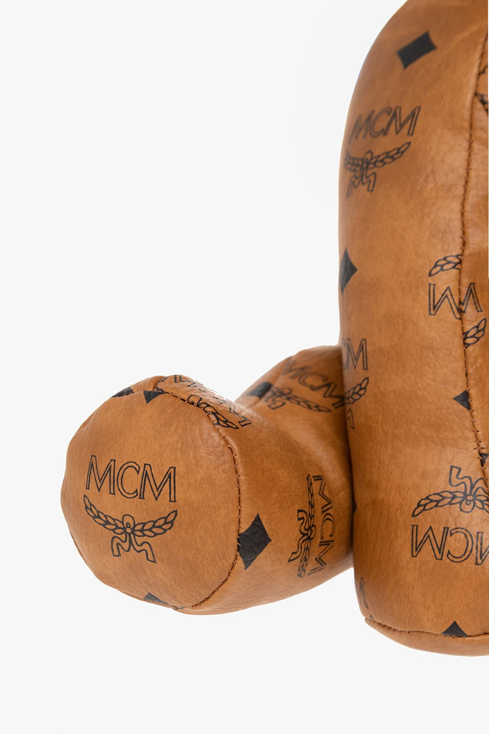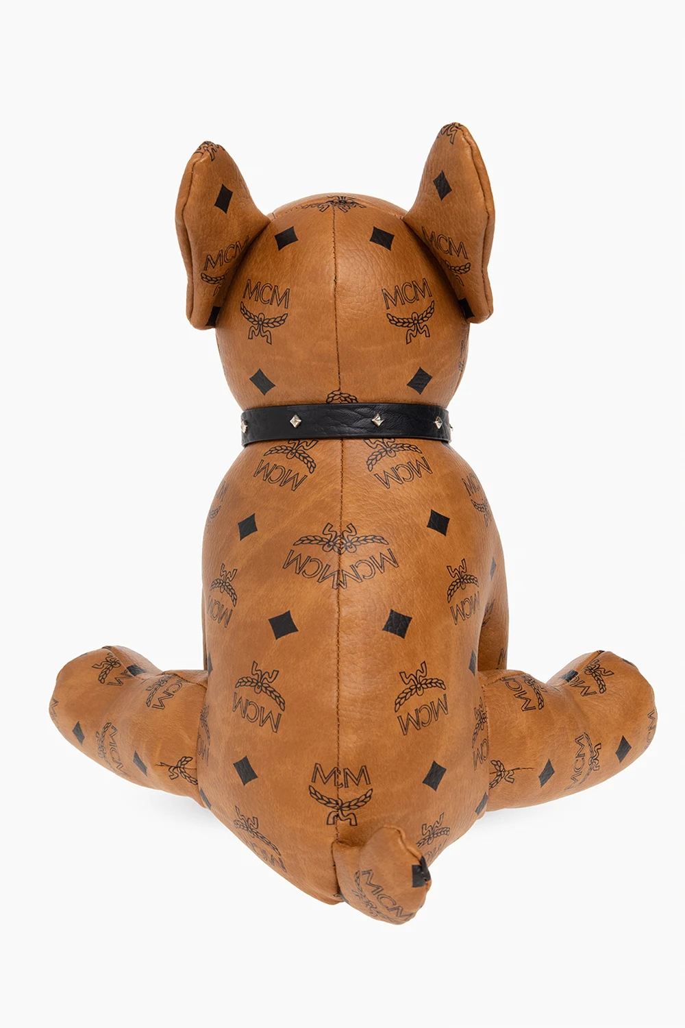 Brown and black 'M Pup' French Bulldog doll from MCM. Crafted from faux-leather with the brand's signature 'Visetos' pattern, this item comes with a detachable black collar punctuated with studs.