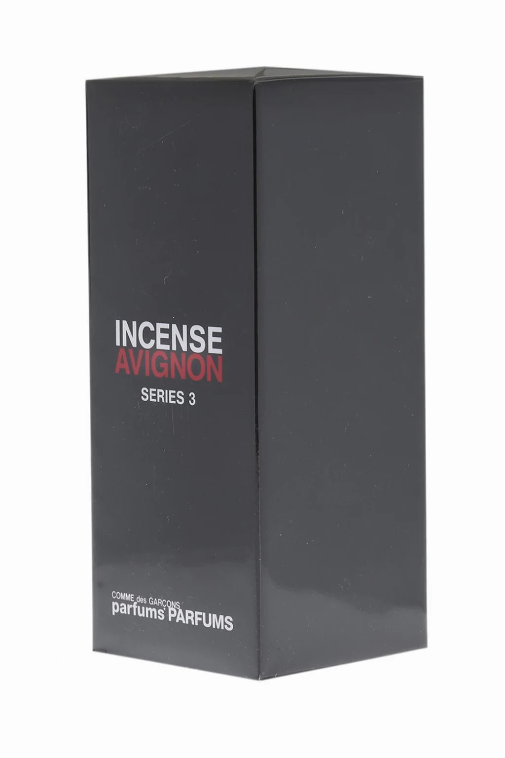 Comme des Garçons 'Avignon' eau de parfum. Incense fragrance for women and men that inspires spiritual voyages beyond time and space frames. Fragrance includes: roman camomile, cistus oil, elemi, incense, vanilla, patchouli, palisander.