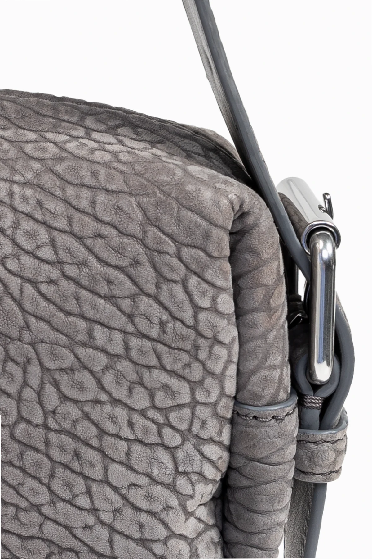 Gefertigt aus hochwertigem Lammleder , zieht die Tasche mit ihrer grauen Farbe alle Blicke auf sich und bietet Vielseitigkeit und Stil. Ihre rechteckige Form mit abgerundeten Kanten sowie der robuste Griff, der sich in der Länge anpassen lässt, bieten unvergleichliche Funktionalität.