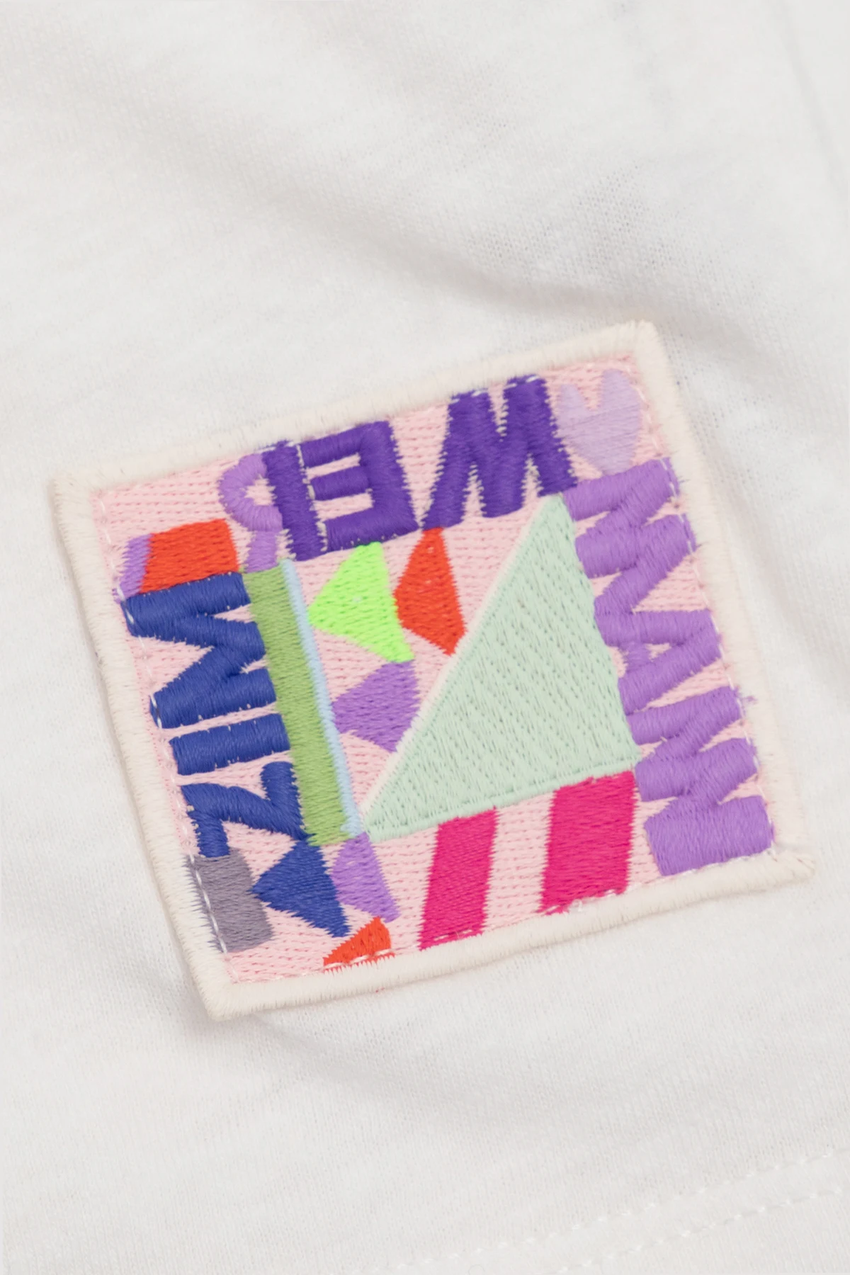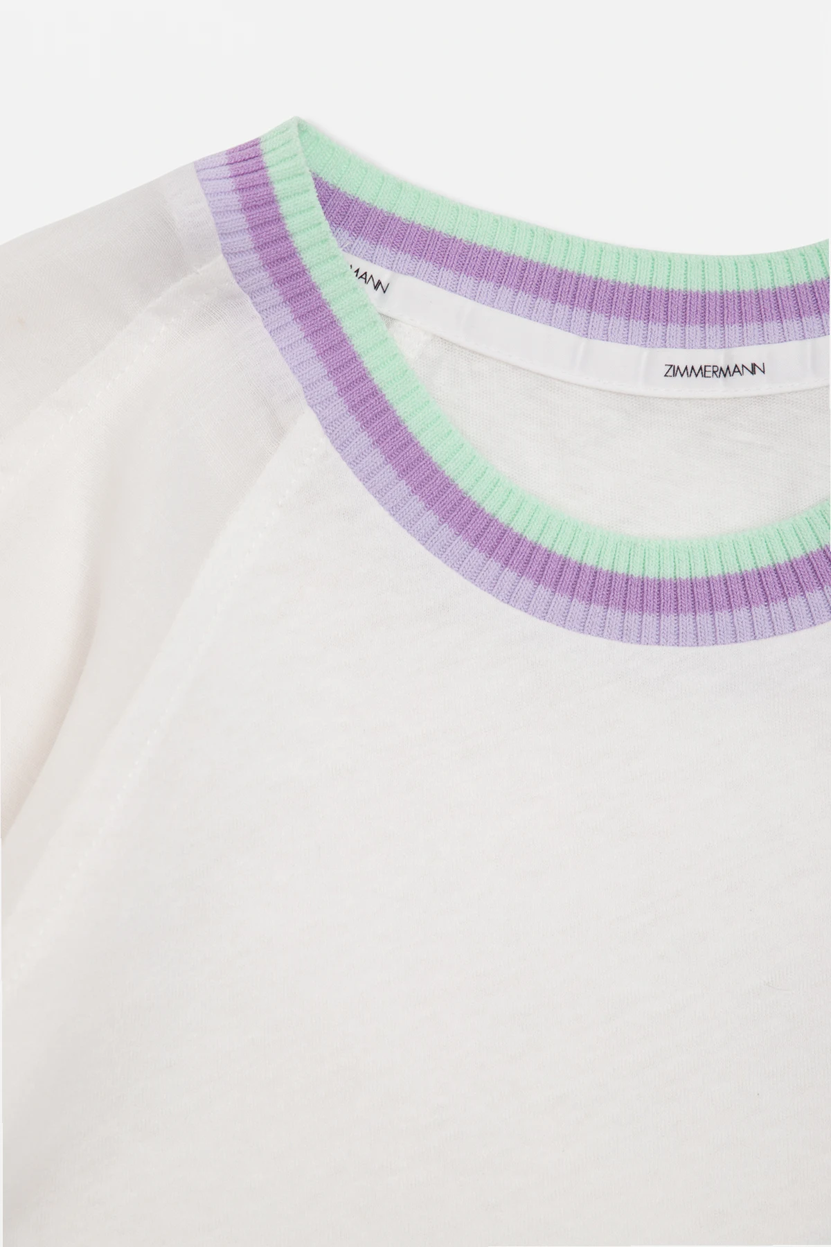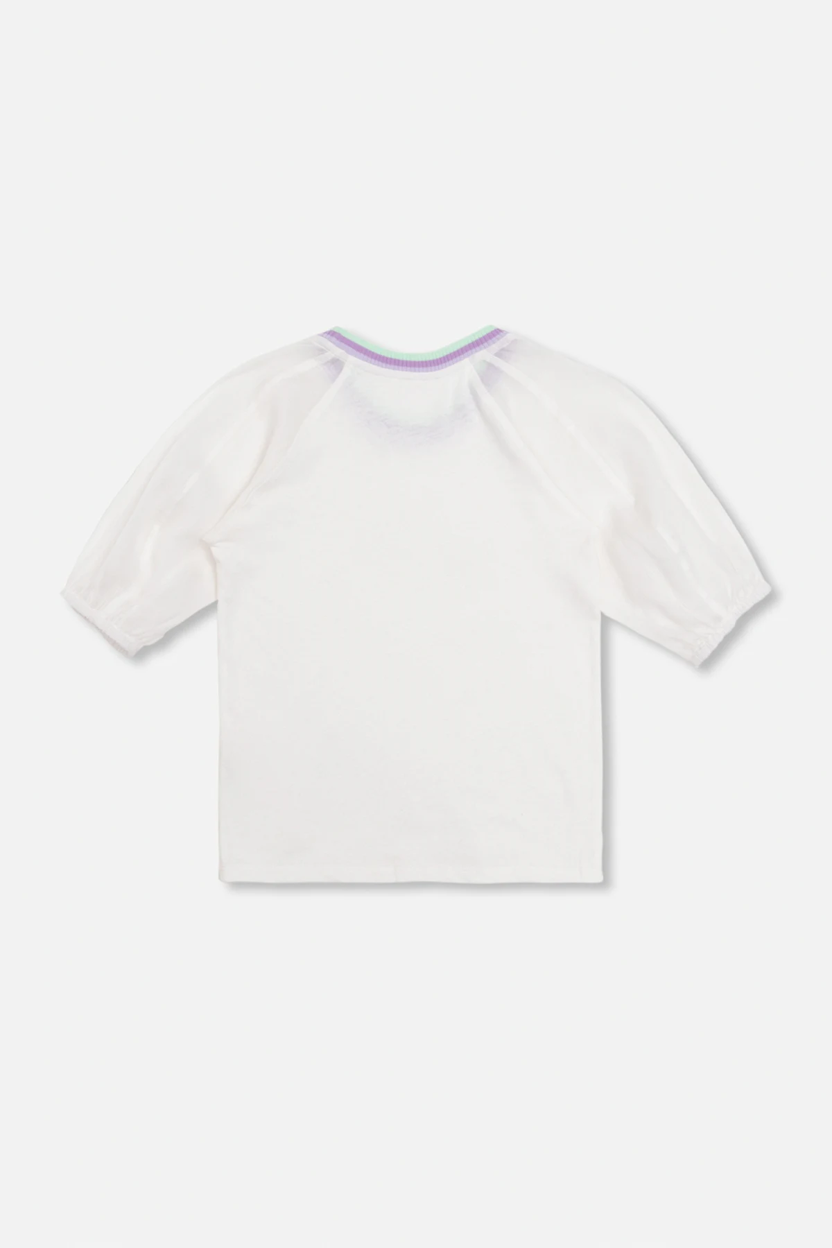 White T-shirt from Zimmermann Kids. Crafted from a linen and cotton blend, this garment features a multicolored logo patch, puff sleeves and ribbed round neck in purple and green.