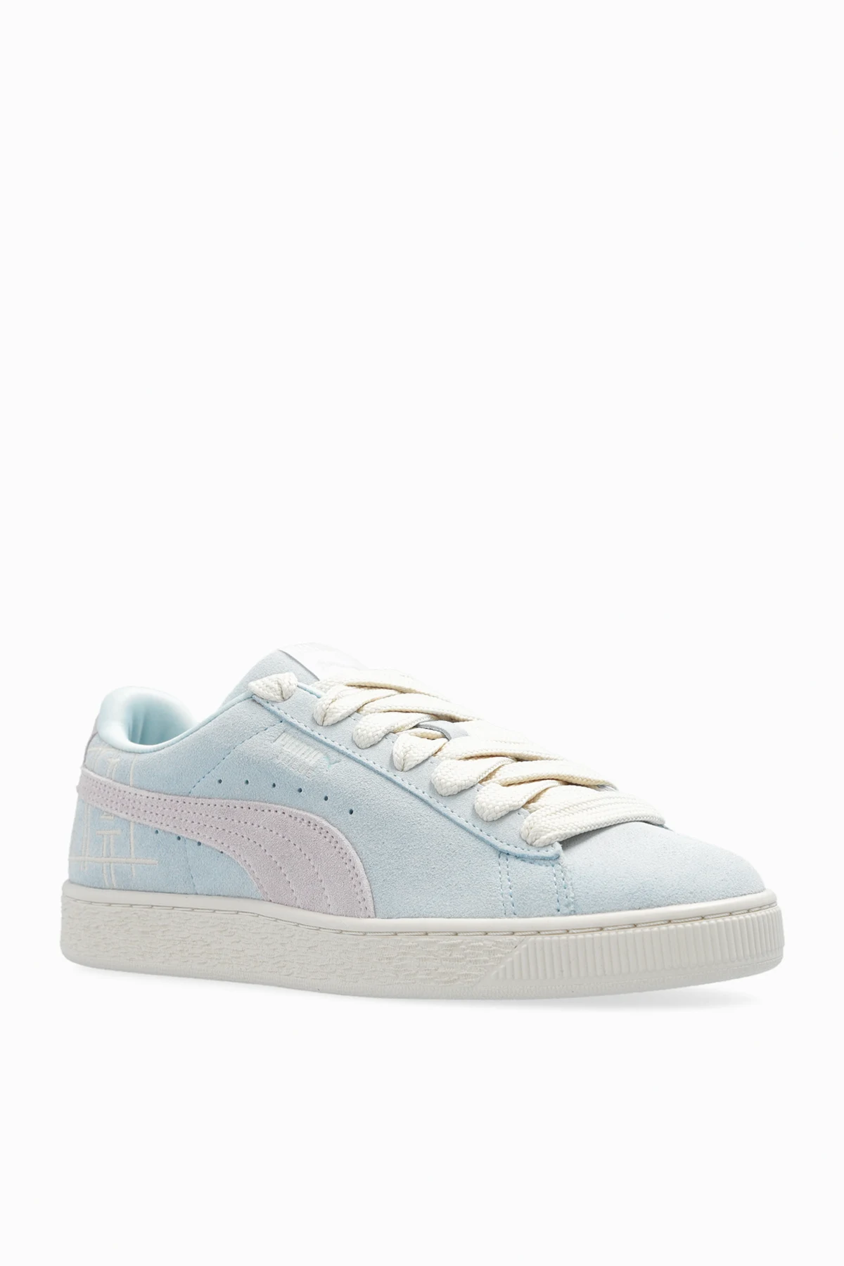 Blue, purple and cream ‘Brand Love II’ sneakers from Puma. Made from suede, this lace-up model sits on a cream rubber sole and showcases the brand's logo and an embroidered check pattern.
