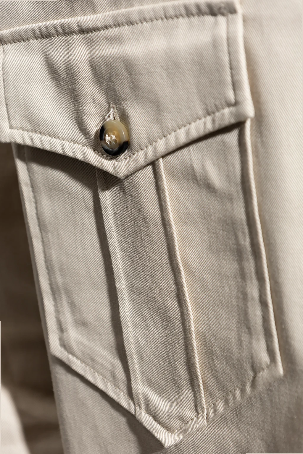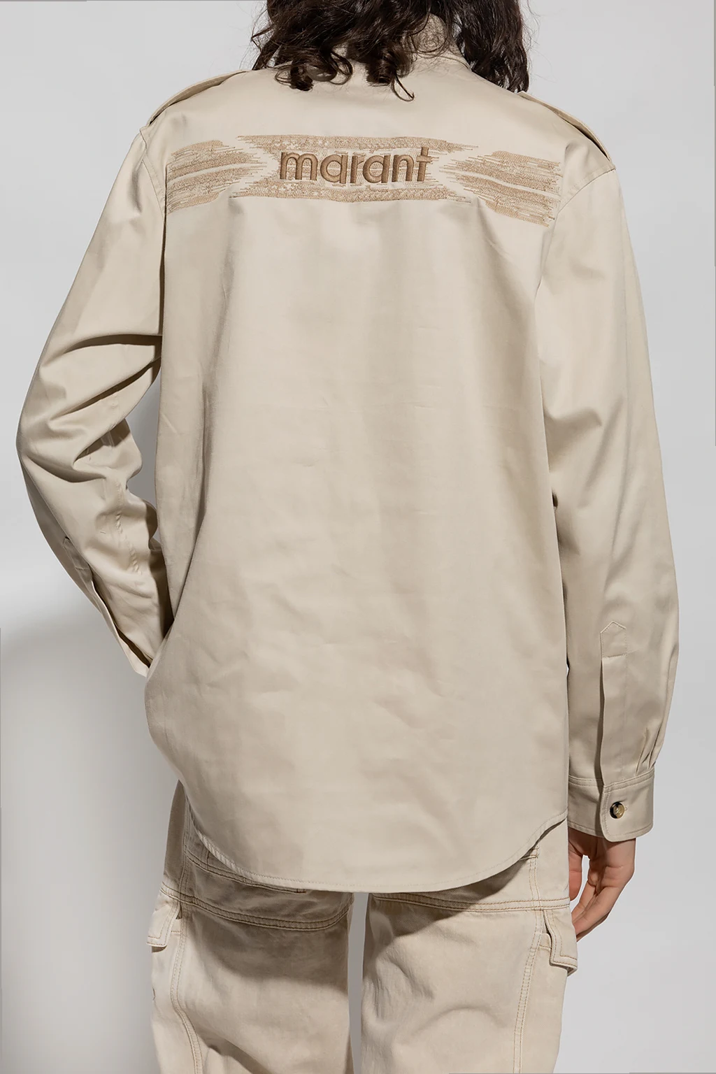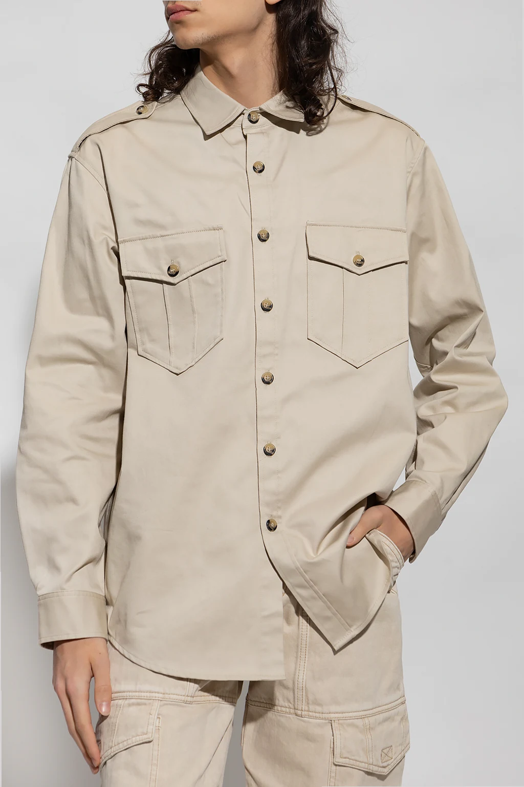 Light beige ‘Pomili’ shirt from MARANT. Made of cotton, this garment features two flap pockets, epaulettes and long sleeves with buttoned cuffs.