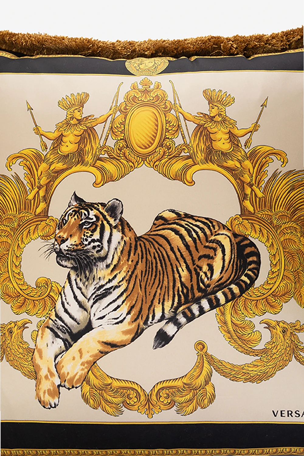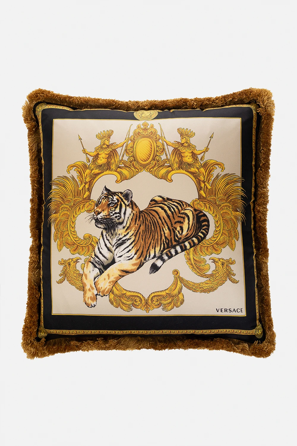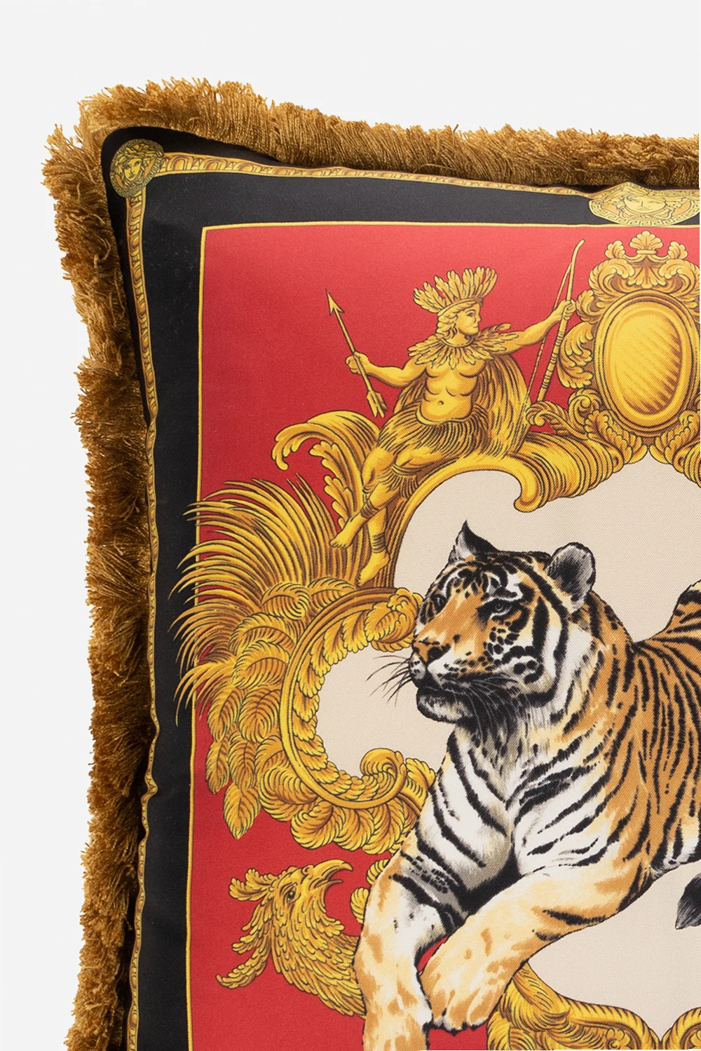 Multicolored double-face cushion from Versace Home. Made from silk, this design features a zip fastening, Vasmara print, fringes, cotton lining and polyester stuffing.