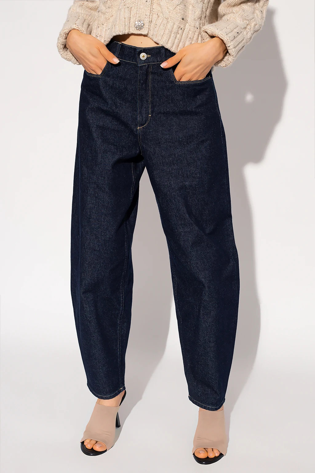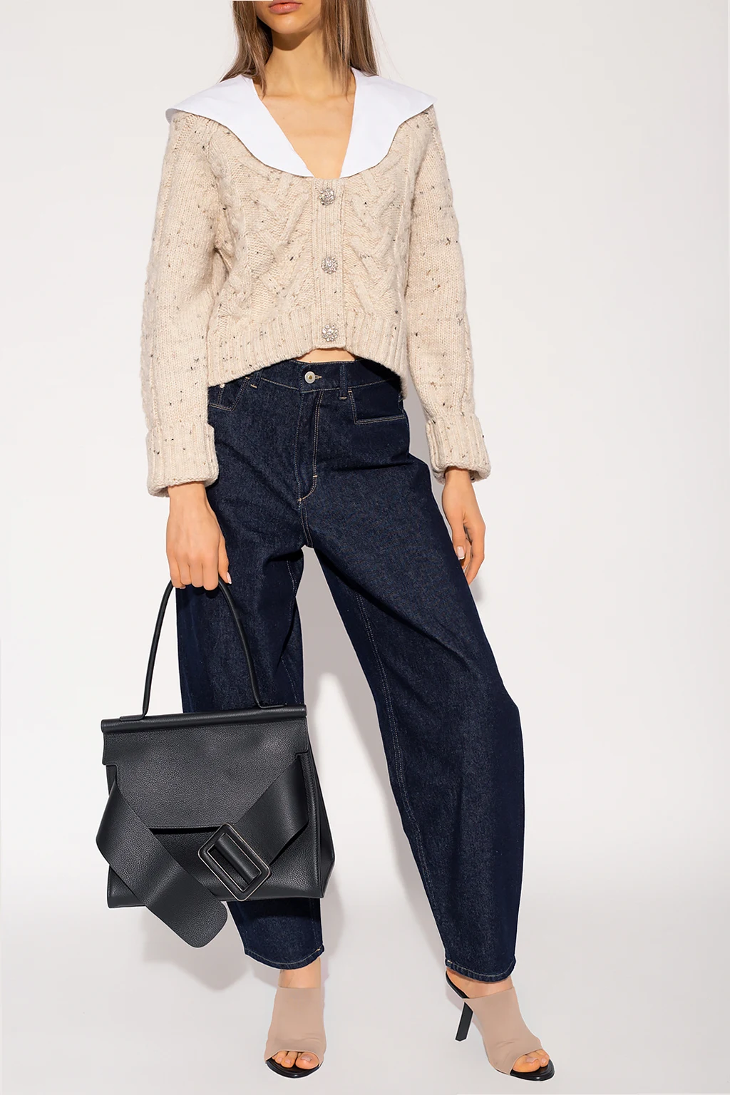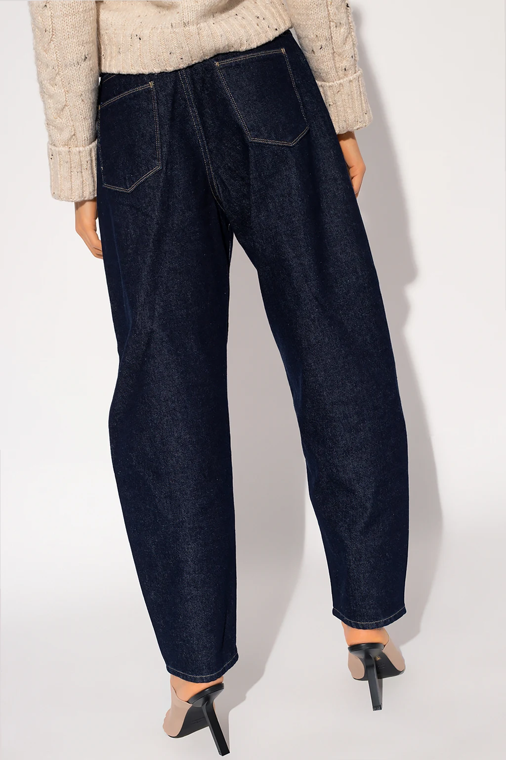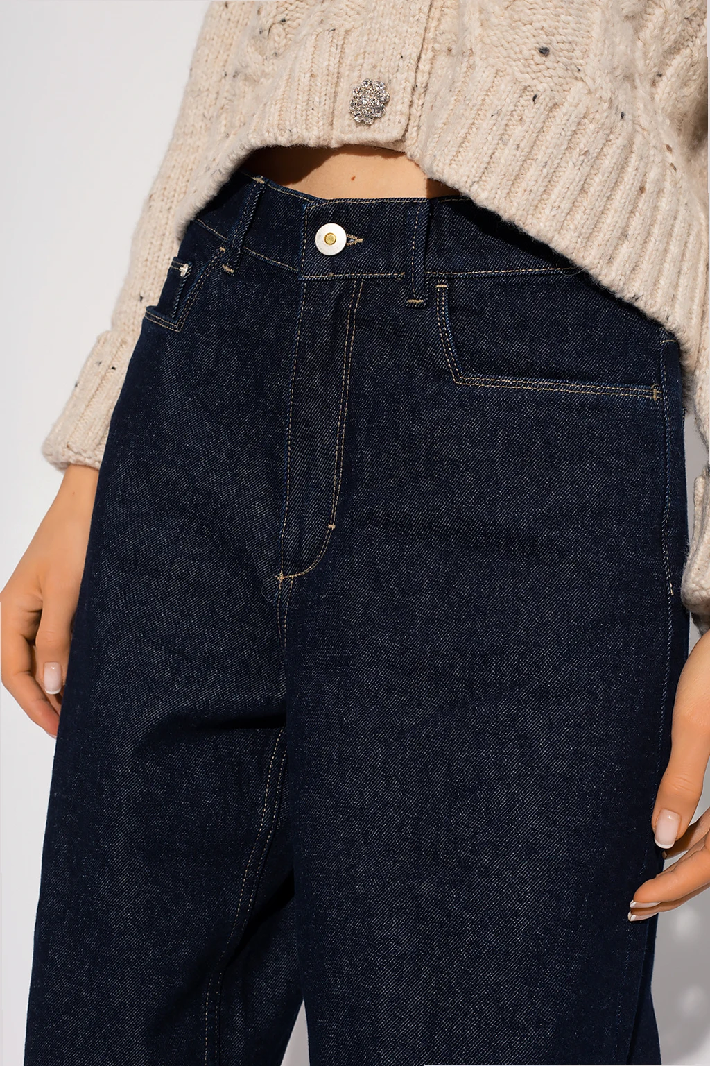 Navy ‘Chamomile’ jeans from Wandler. Made of organic cotton, this high-waisted pair features a button and zip closure, three front pockets, two back pockets and tapered legs.