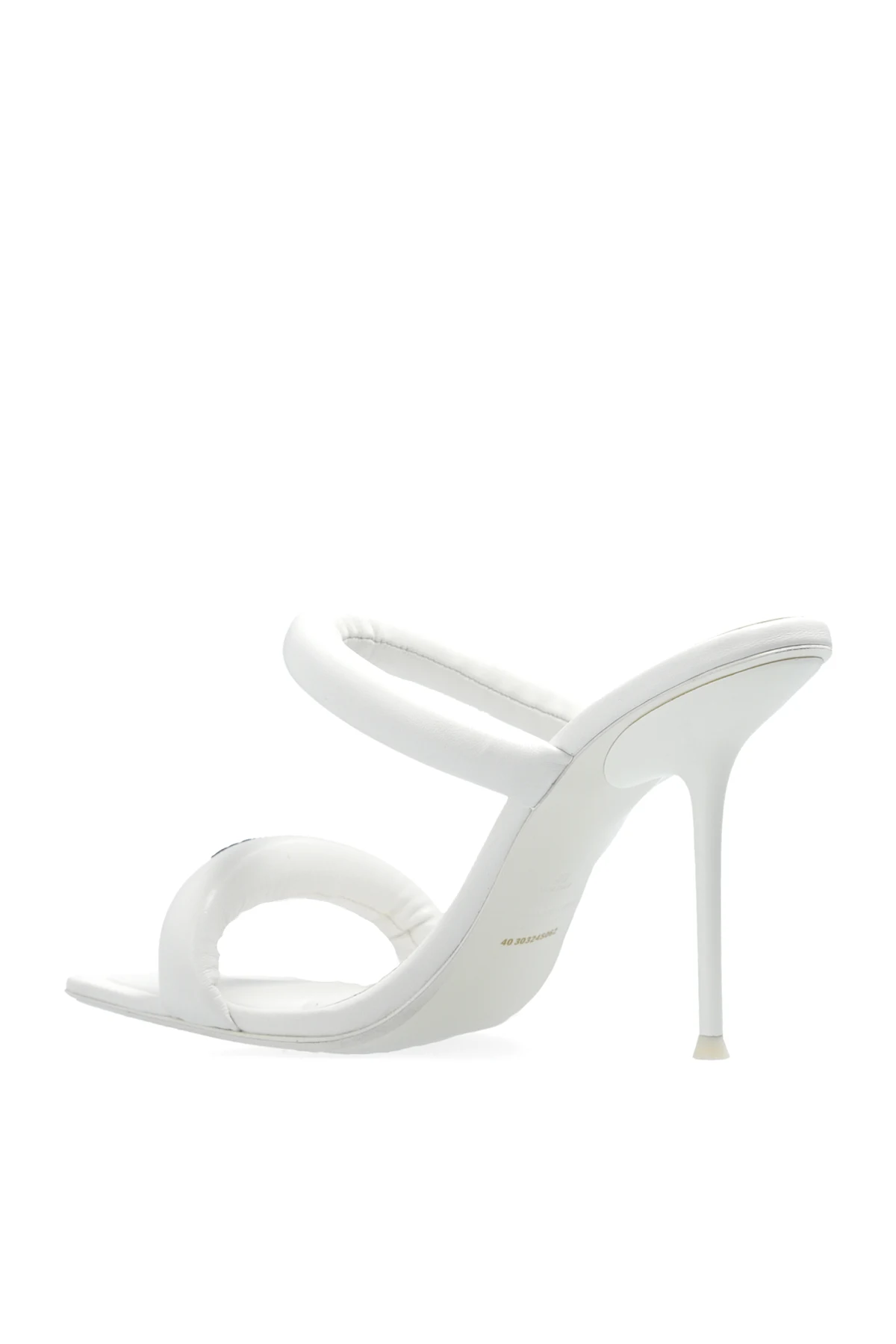 Auf dem unteren Riemen und auf der Innensohle ist das charakteristische Designer-Logo zu sehen, was einen subtilen, jedoch raffinierten Akzent darstellt. Die dominierende weiße Farbe rundet das Ganze ab und verleiht den Sandalen Klasse und Eleganz.