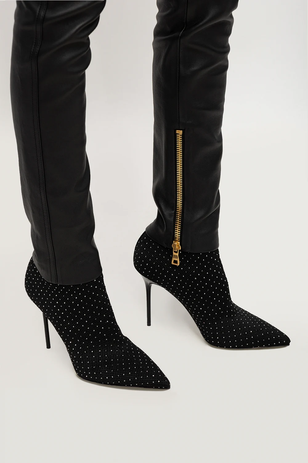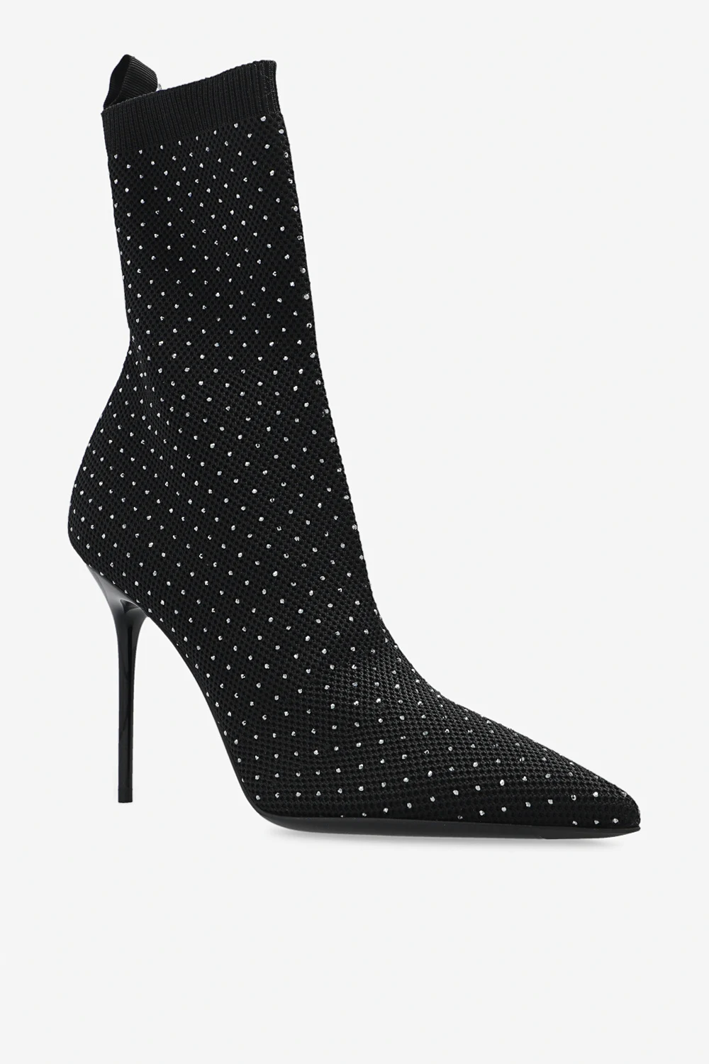 Black ‘Skye’ sock ankle boots from Balmain. Crafted from fabric, this pair is embellished with crystals and complete with a pointed toe and black leather sole.