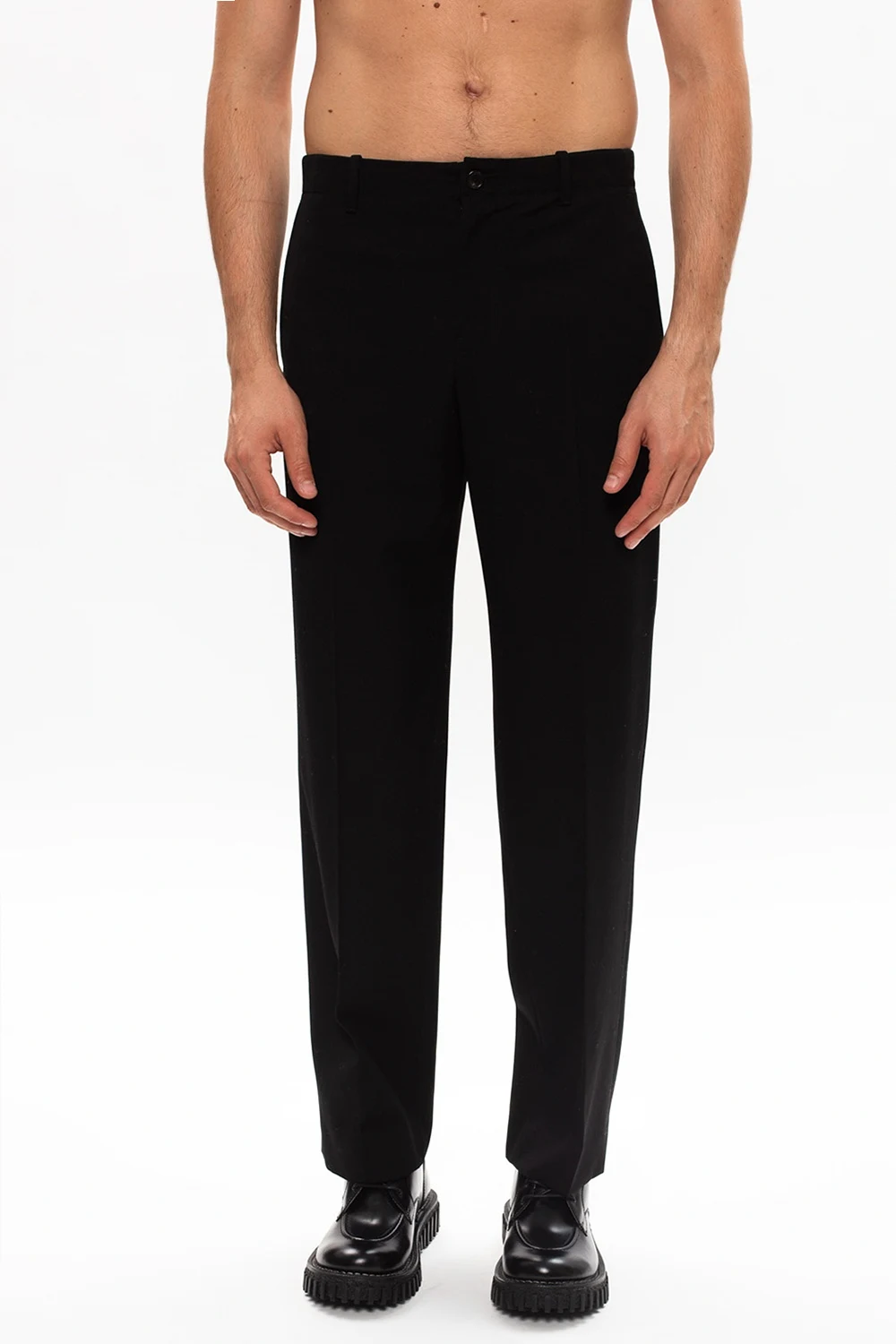 Wool pleat-front trousers