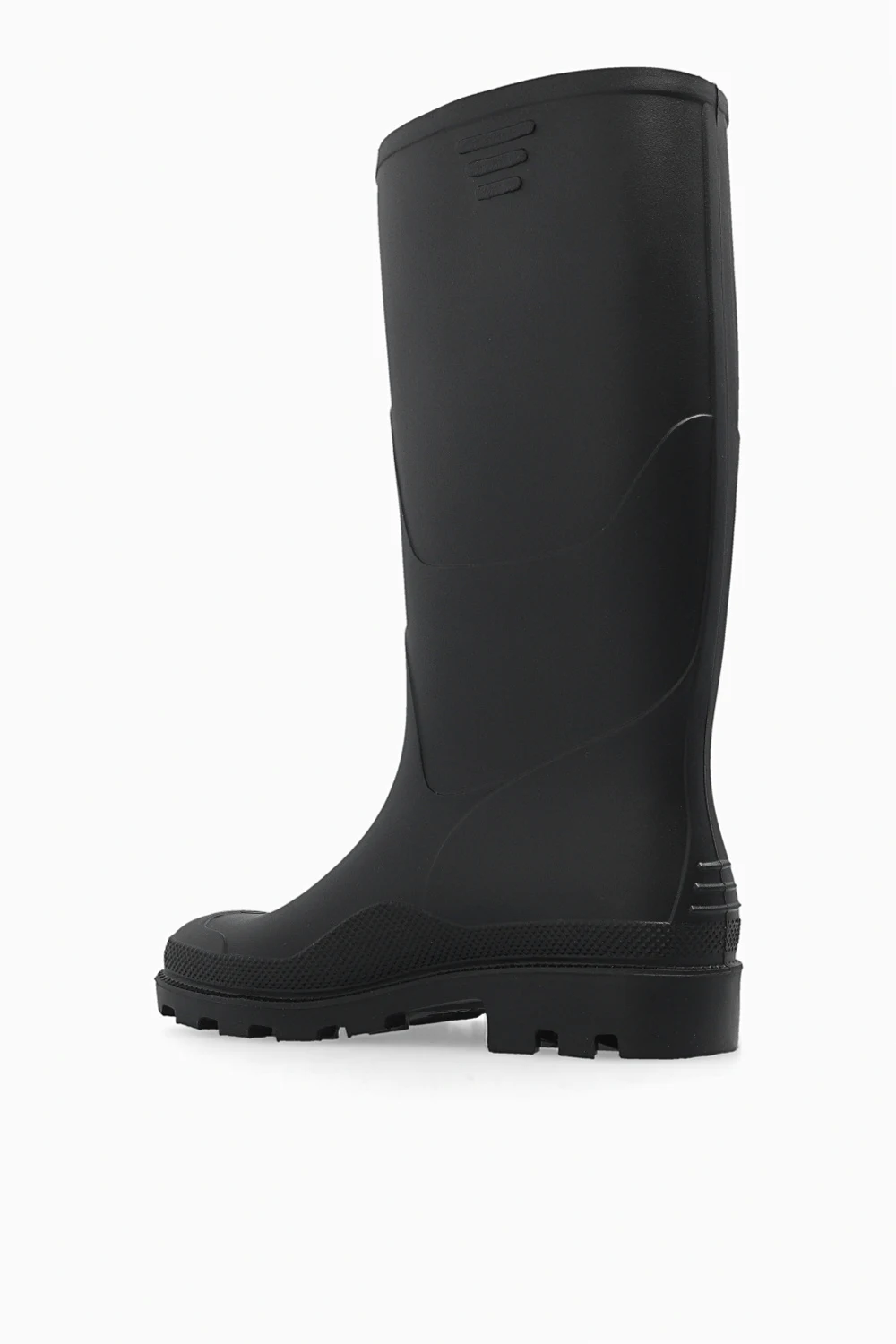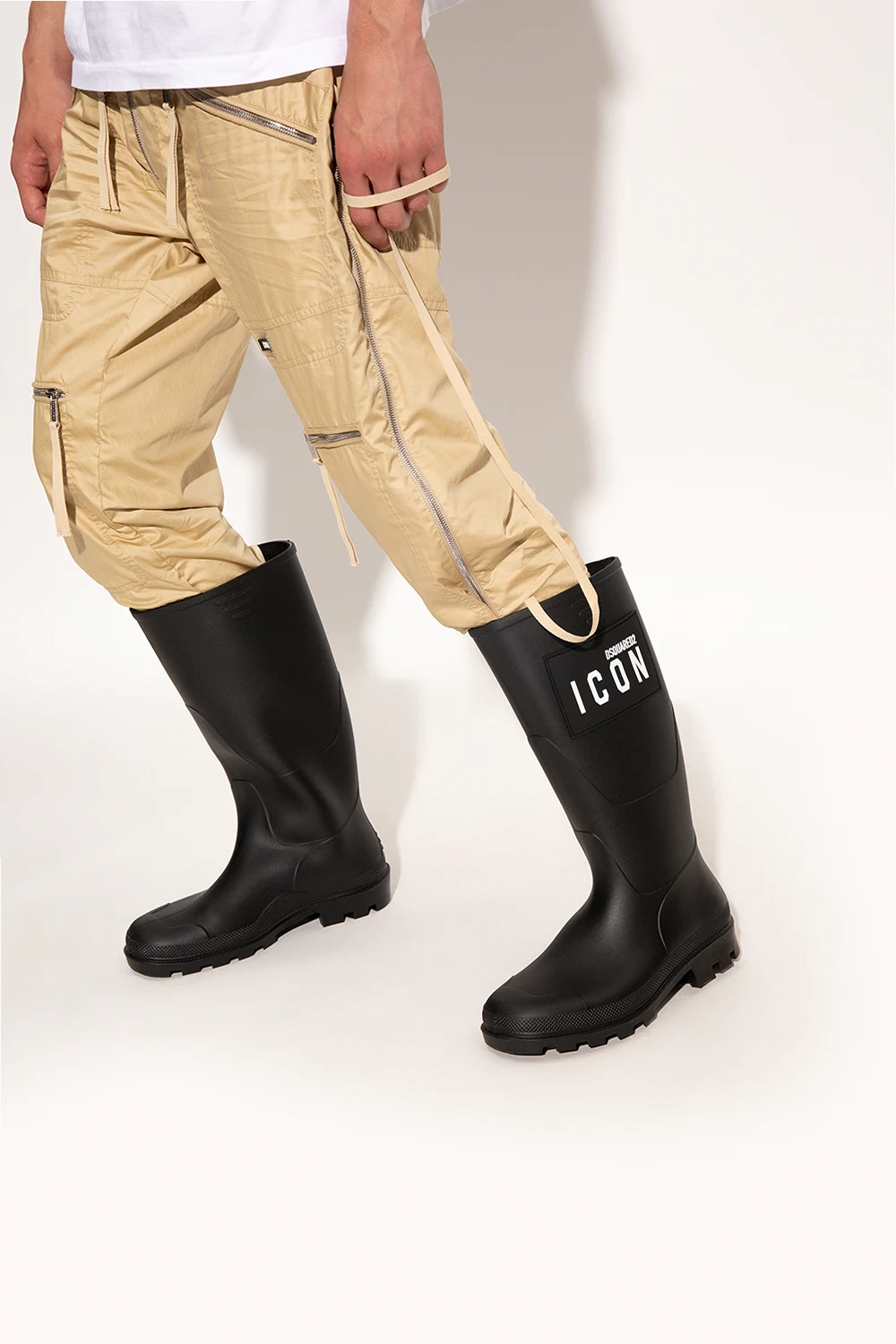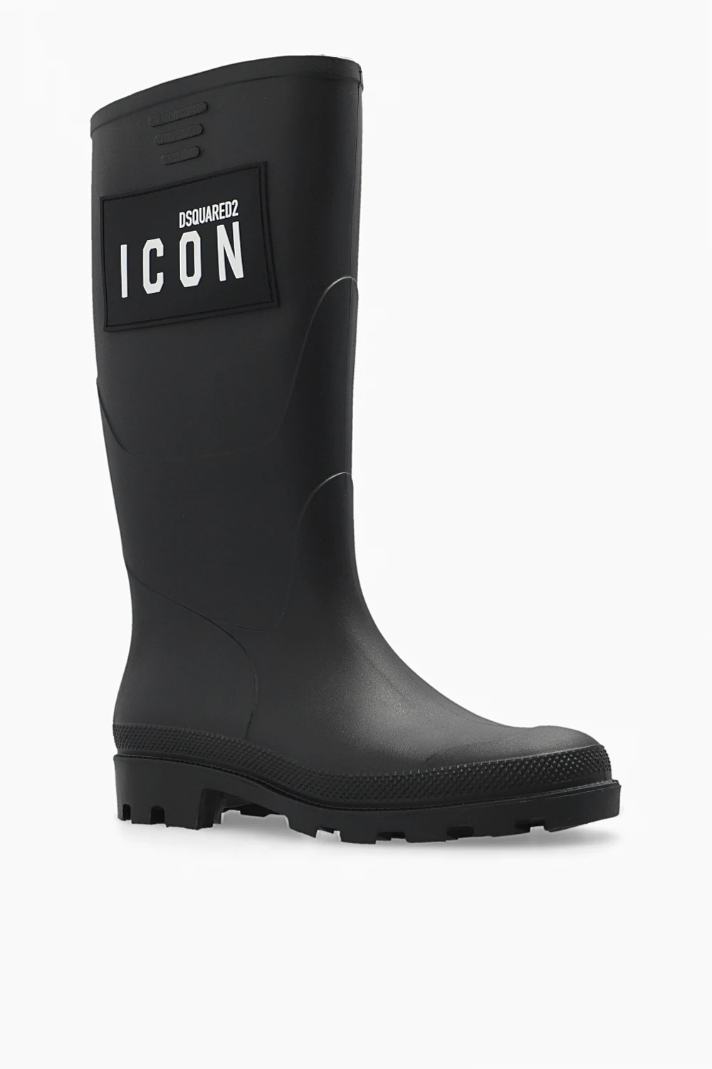 Black rain boots from Dsquared2. Sitting on a black rubber sole, this model showcases a three-dimensional Icon logo in white.