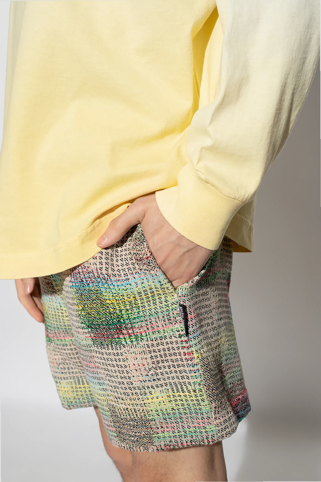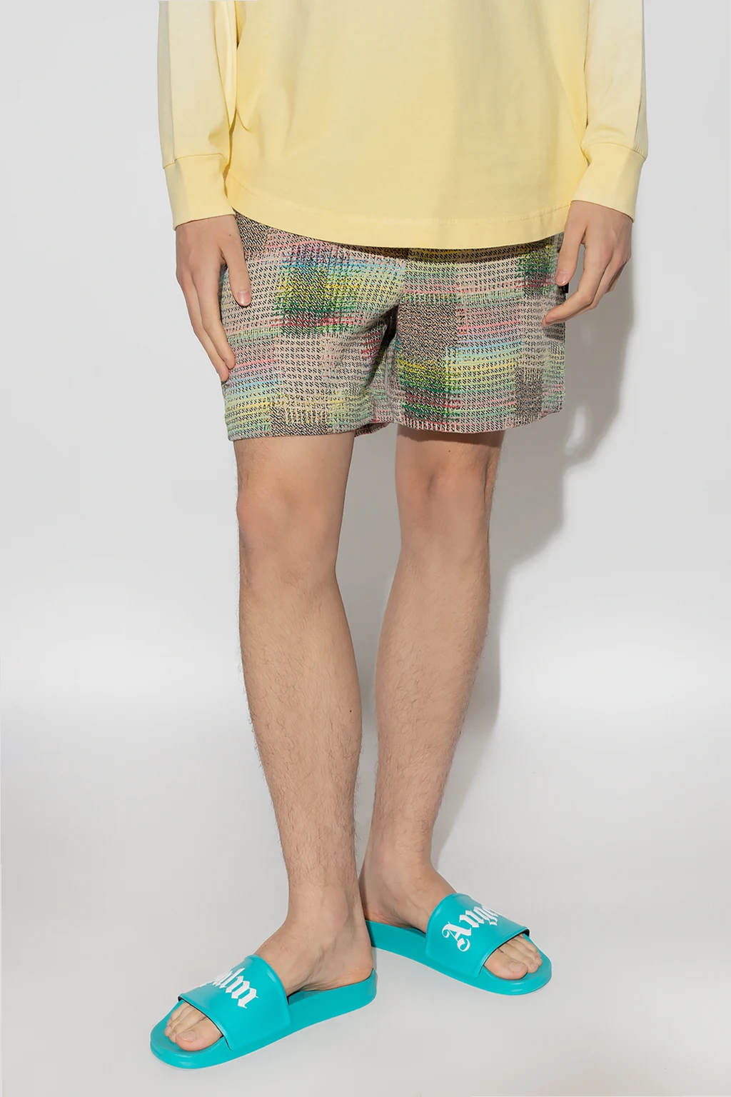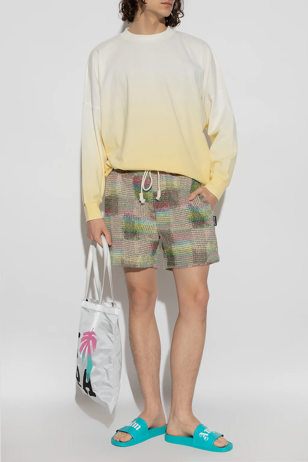 Multicolored shorts from Palm Angels. Made from a cotton blend, this pair features an elastic drawstring waistband, two front pockets and one buttoned back pocket.