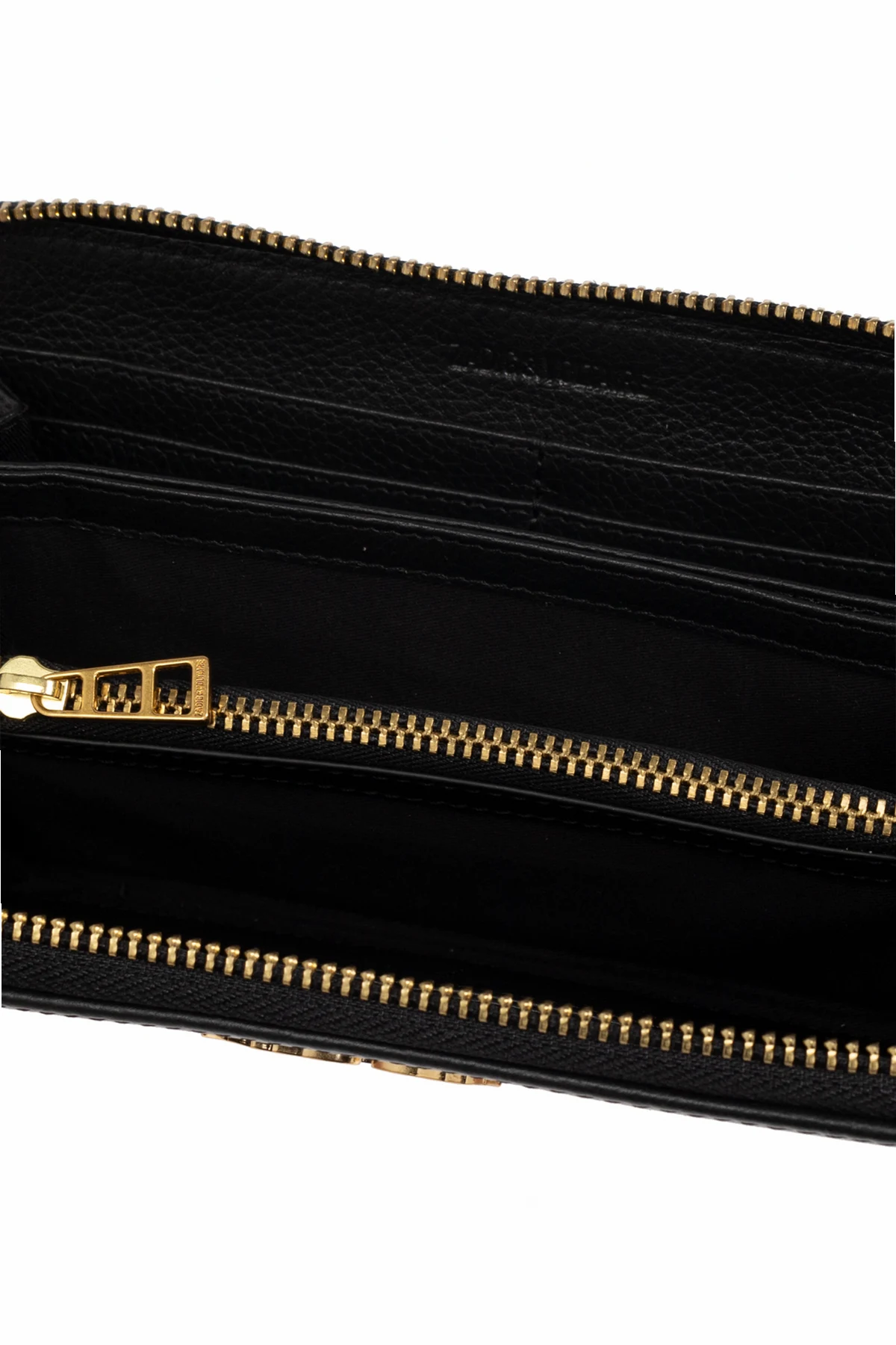 Die Brieftasche ‘Compagnon’ verfügt zudem über einen Handgelenksriemen, der ein bequemes Tragen ermöglicht. Die gesamte Verarbeitung ist sorgfältig ausgeführt, was die höchste Qualität der Herstellung bezeugt. Die dominante schwarze Farbe mit goldenen Akzenten passt perfekt zu jedem Outfit.