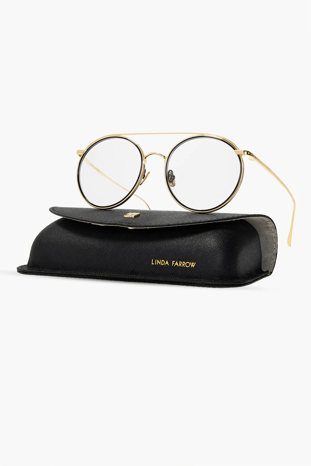 Gold-tone and black optical glasses from Linda Farrow. Designed in acetate and metal with a double bridge, this pair comes with a protective case which fastens via magnetic snap-buttons.