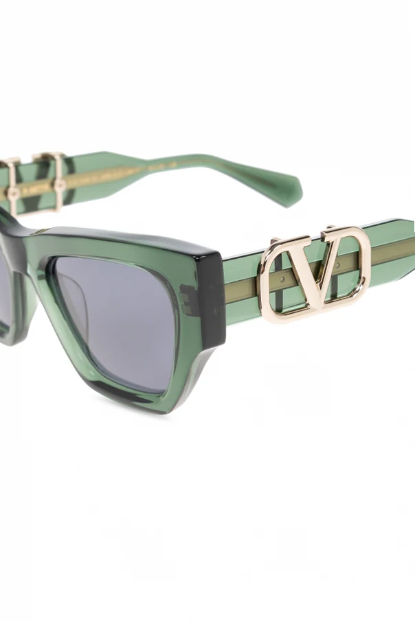 Wir präsentieren die Sonnenbrille V-SETTE aus der exklusiven Kollektion von Valentino Eyewear , die unverwechselbaren Stil und Luxus ausstrahlt. Diese ikonischen Brillen, hergestellt im Herzen Italiens aus hochwertigstem Acetat, zeichnen sich durch eine geometrische, kantige Form und dicke Rahmen in stilvollem Grün aus, die das moderne Aussehen perfekt betonen.