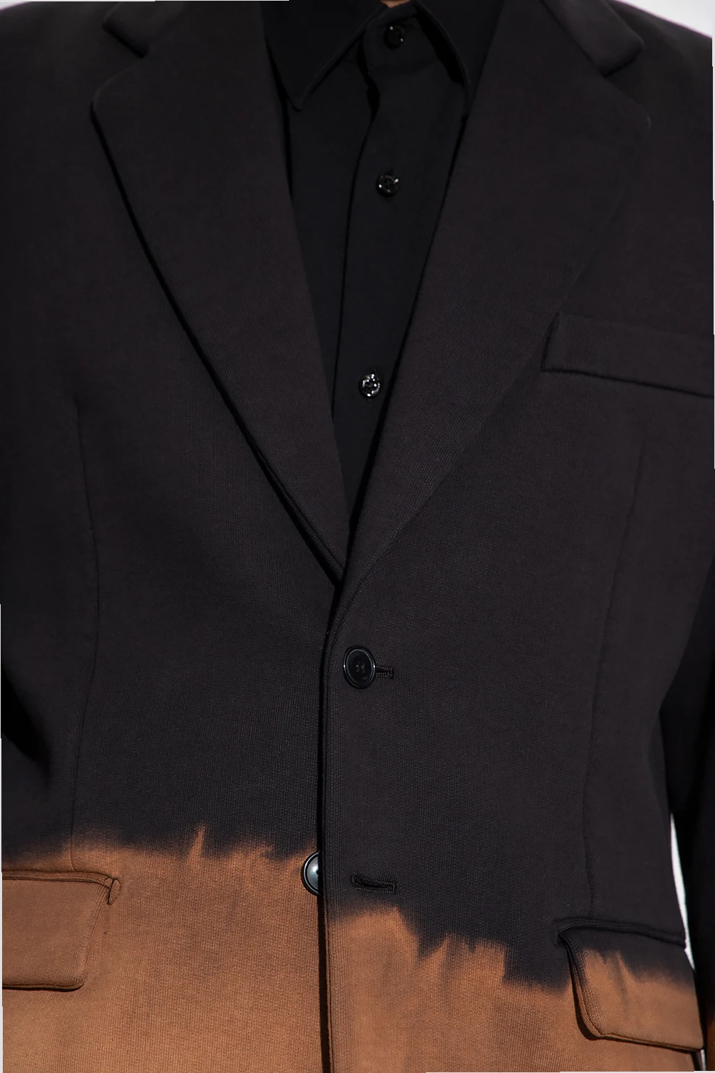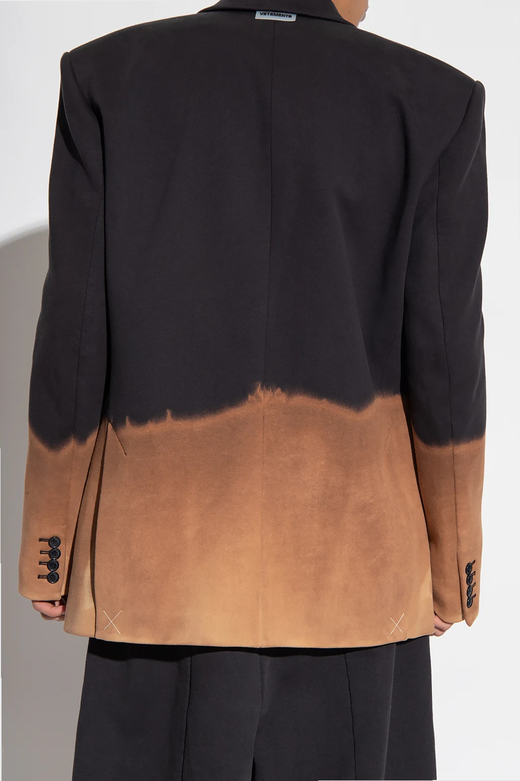 Black and brown blazer from VTMNTS. Crafted from cotton, this garment features button fastenings, notch lapels, two decorative flaps, rubber logo appliqué in black and white and long sleeves with buttoned cuffs.
