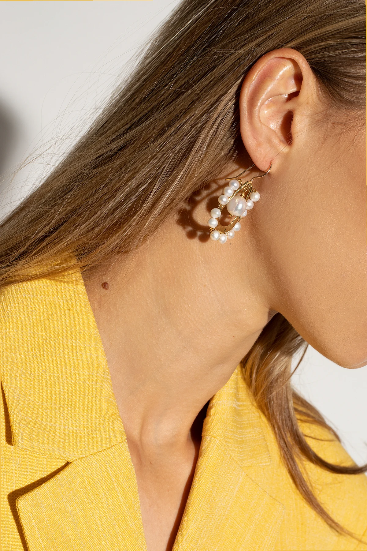 Gold-tone earrings from Ulla Johnson. Handcrafted by artisans in Kenya from recycled brass, they are adorned with white freshwater pearls.