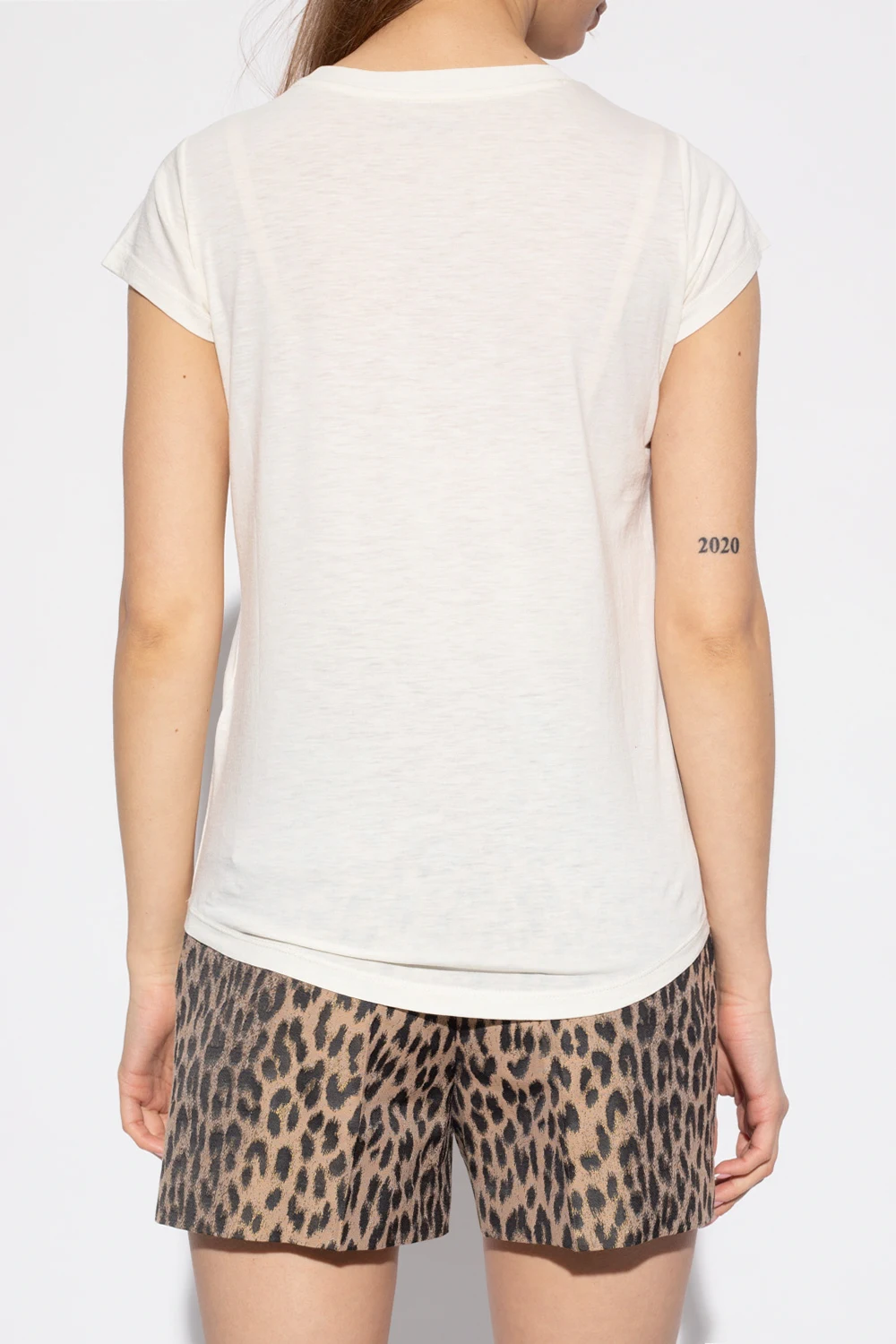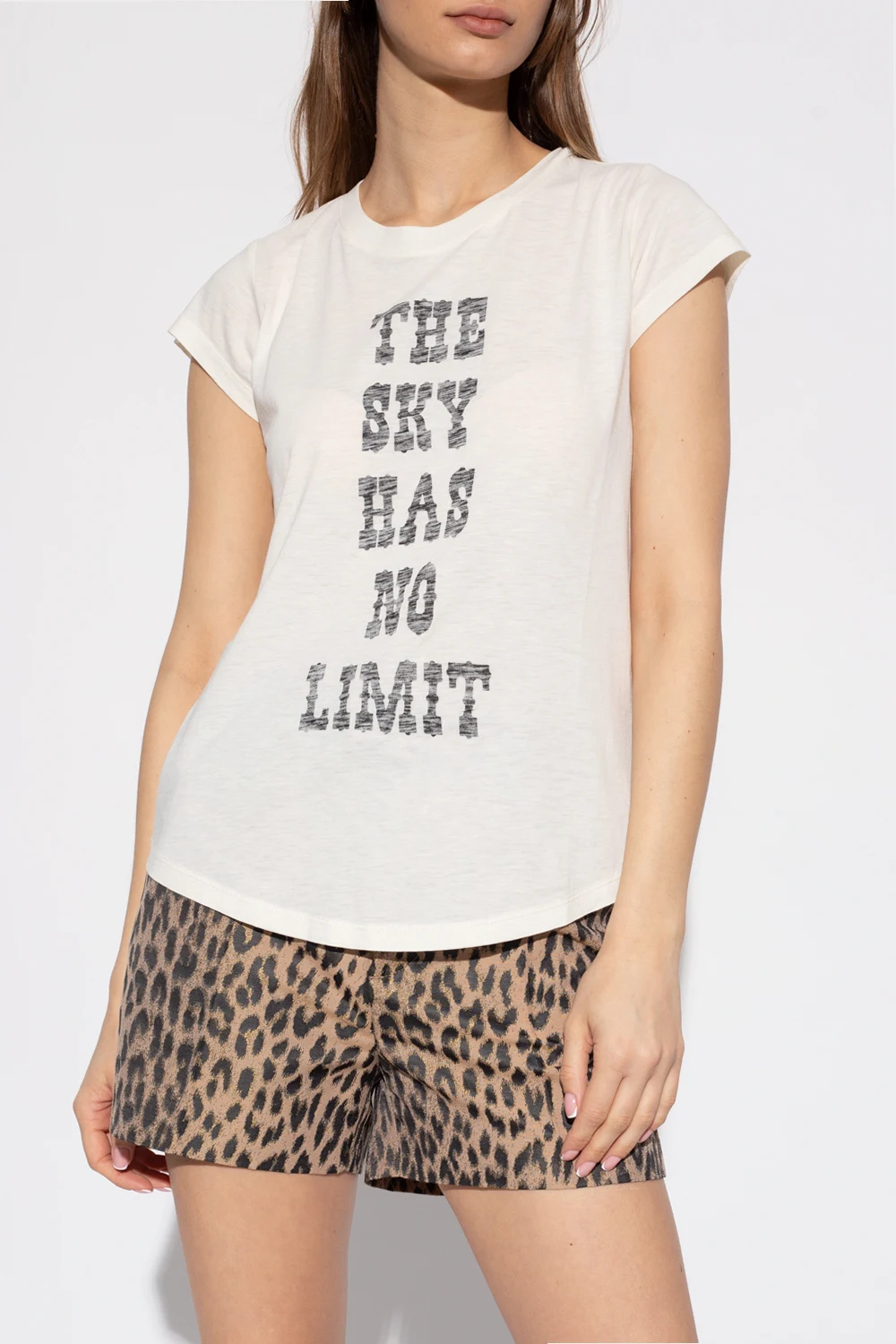 Cream ‘Woop’ crewneck T-shirt from Zadig & Voltaire. Made of cotton, this style features short sleeves and a black graphic print on the front.